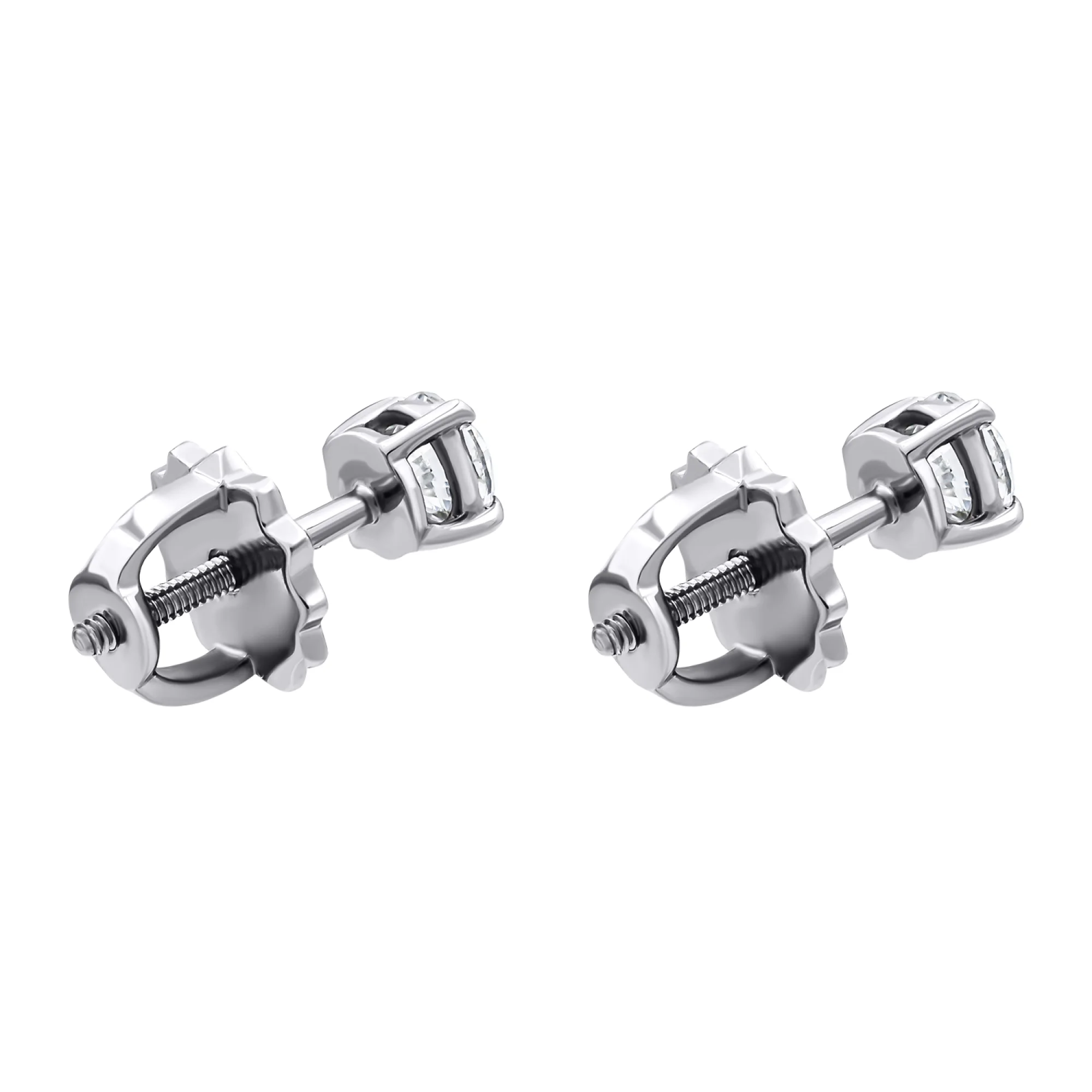 Сережки-гвоздики у білому золоті з діамантом у стилі мінімалізм - 1818610