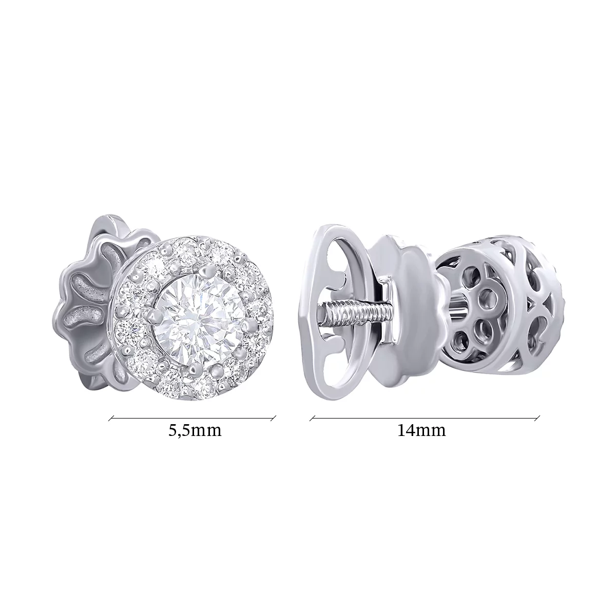 Екстравагантні сережки у формі квадрата з білого золота з діамантами - 1876575