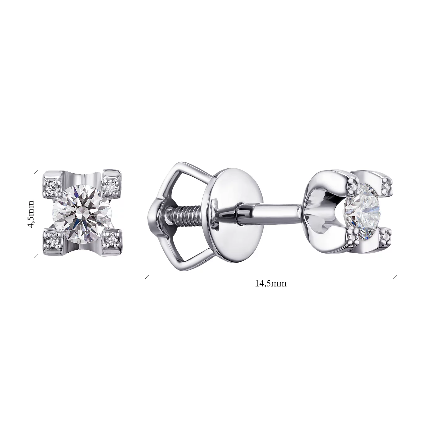 Сережки-гвоздики "Квадрат" у мінімалістичному стилі з білого золота з діамантами - 1876382