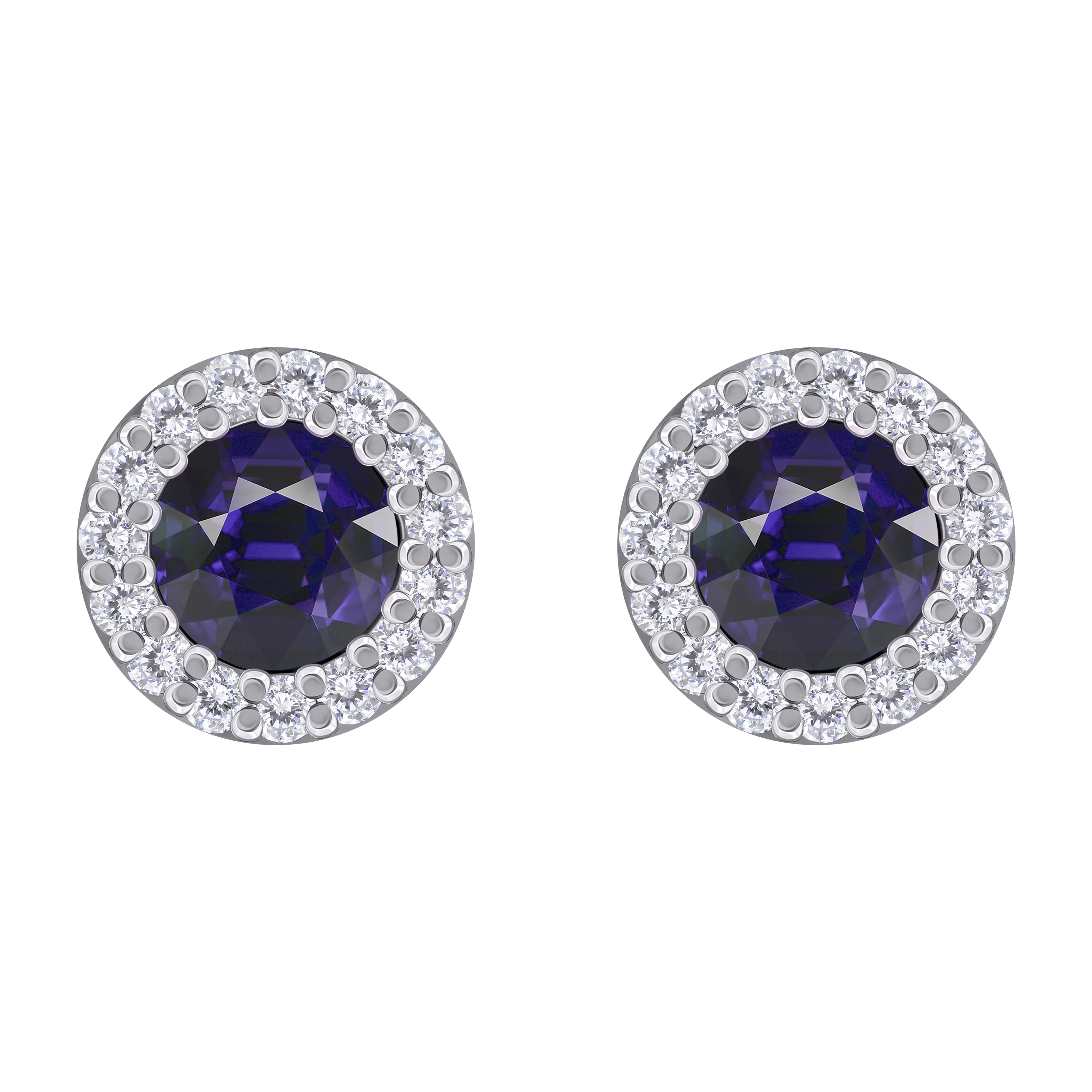Сережки-гвоздики з білого золота з білими і чорними діамантами - 879814