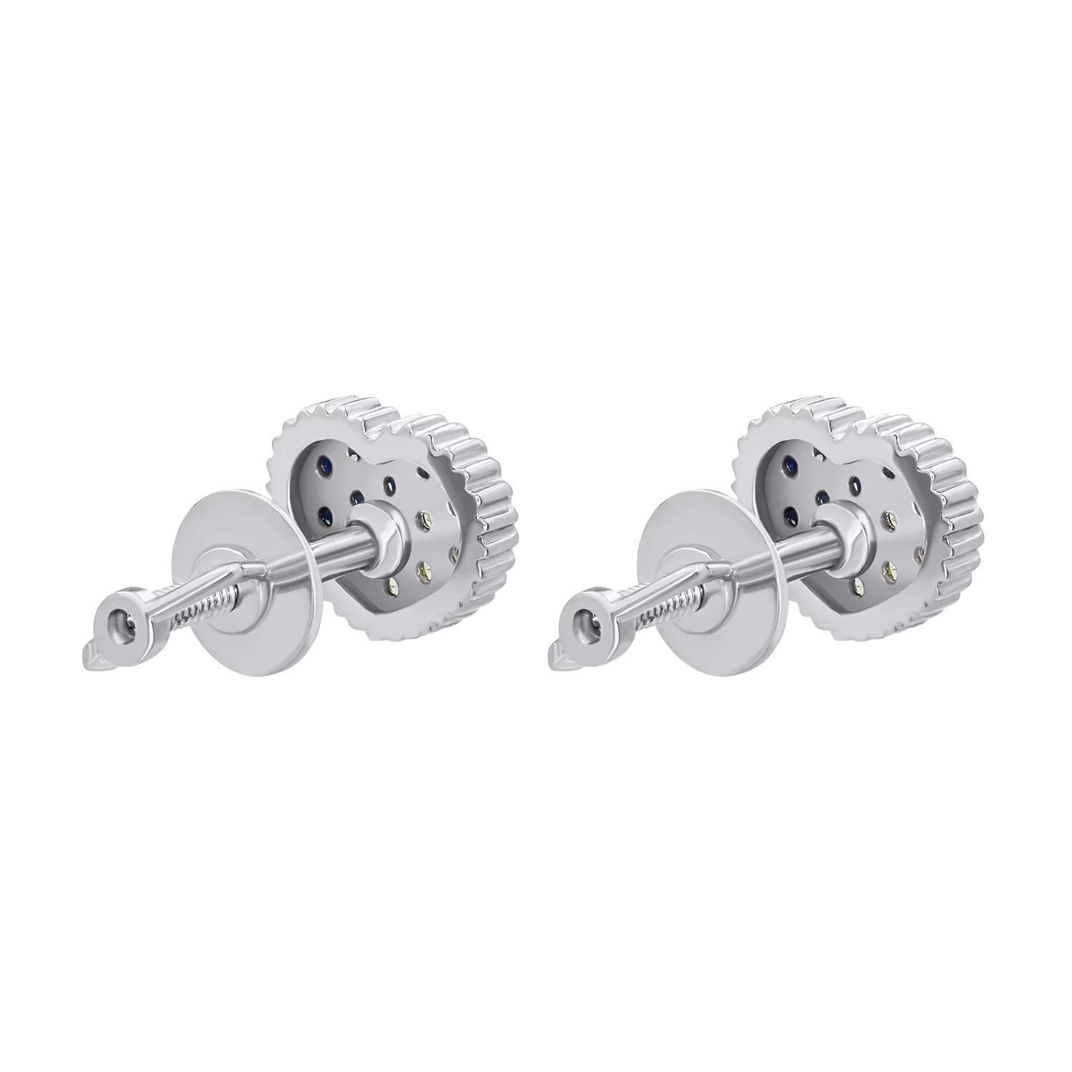 Сережки-гвоздики з червоного золота з фіанітом у вигляді квіточки - 1445201