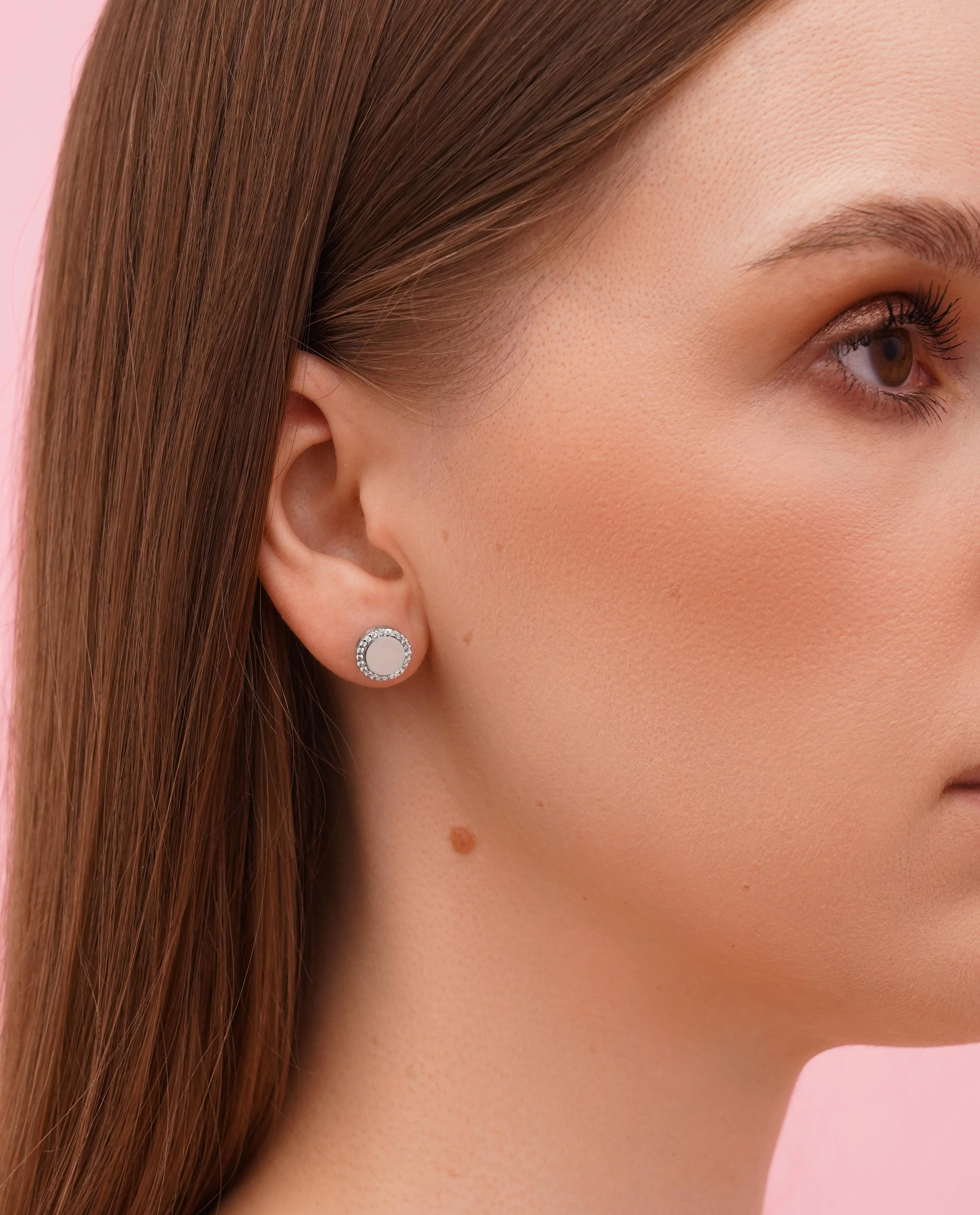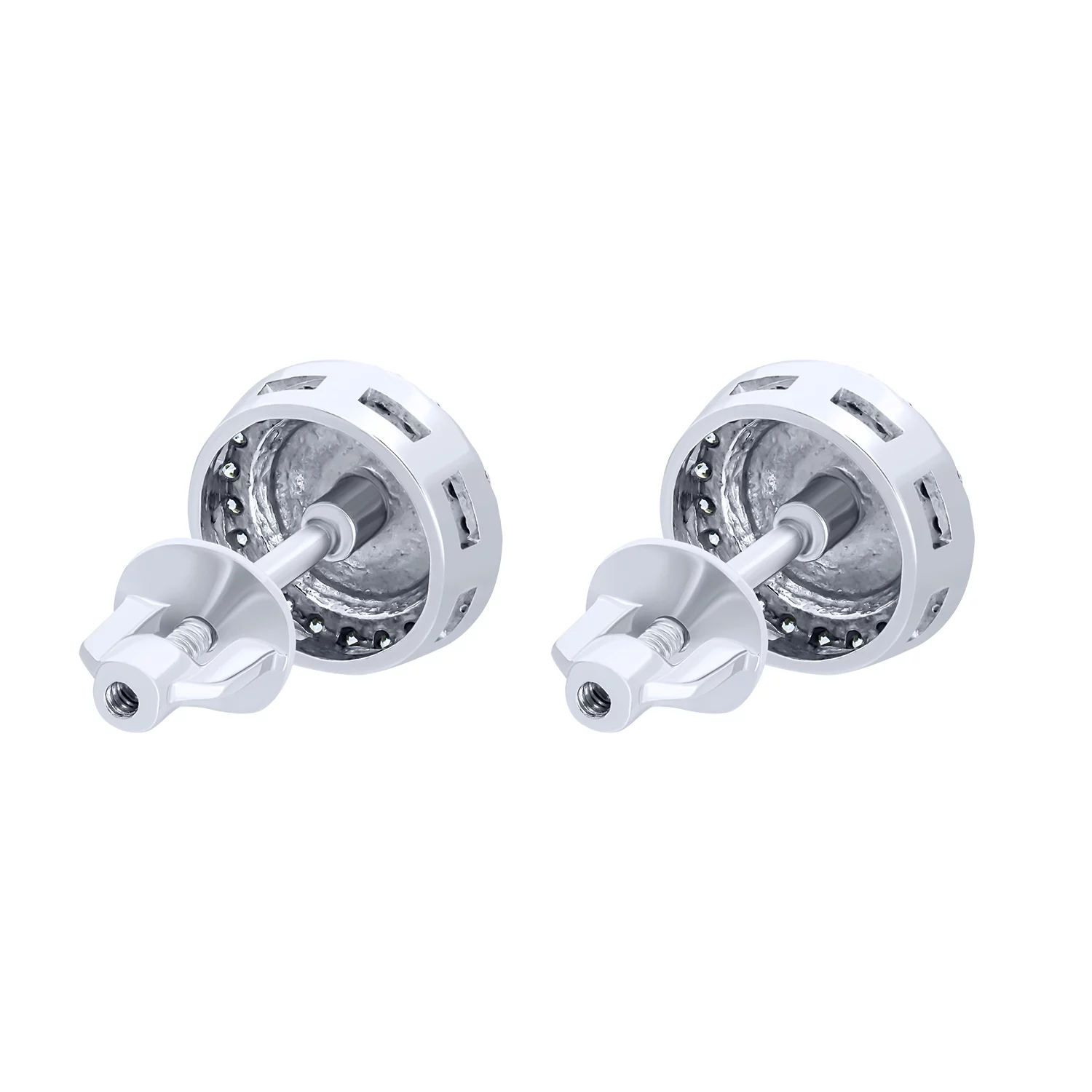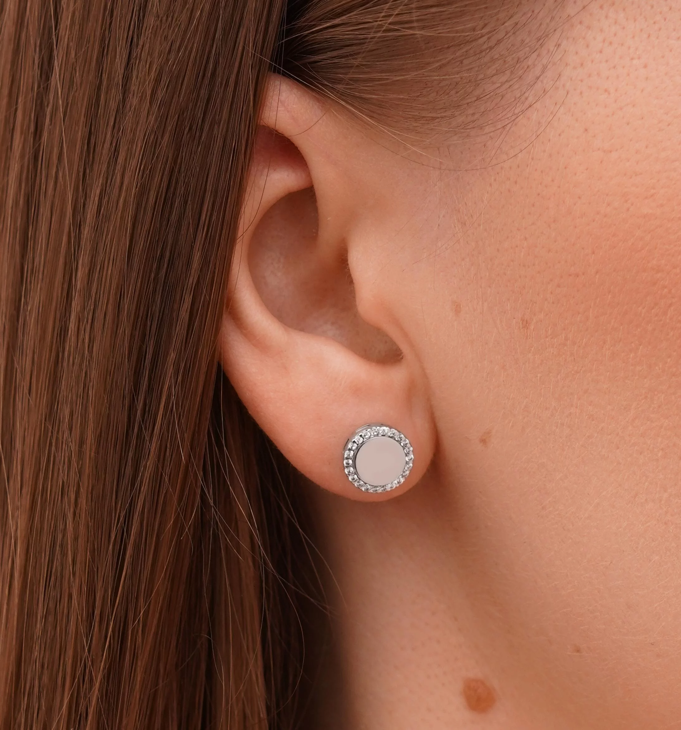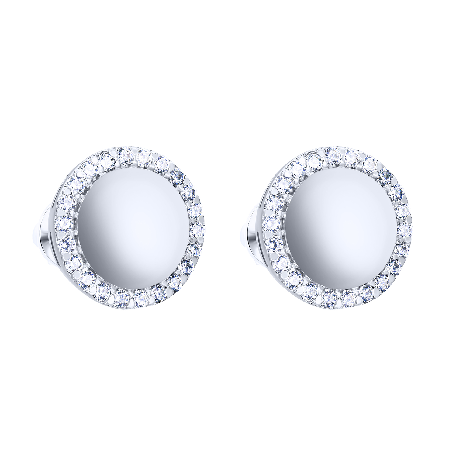 Сережки-гвоздики з білого золота у формі кола з фіанітами - 1583055