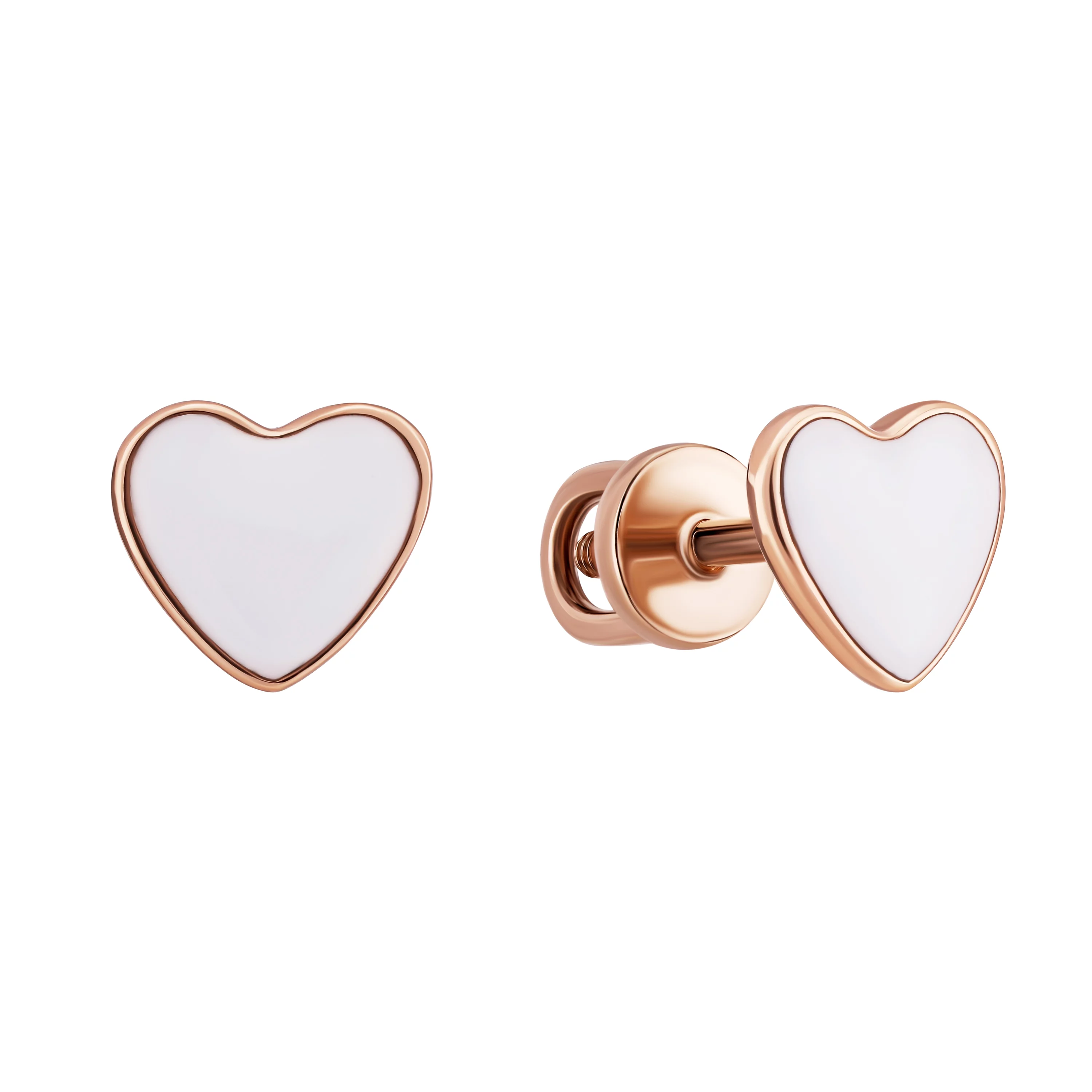 Елегантні сережки-гвоздики "Кулі" у червоному золоті з емаллю - 1926551