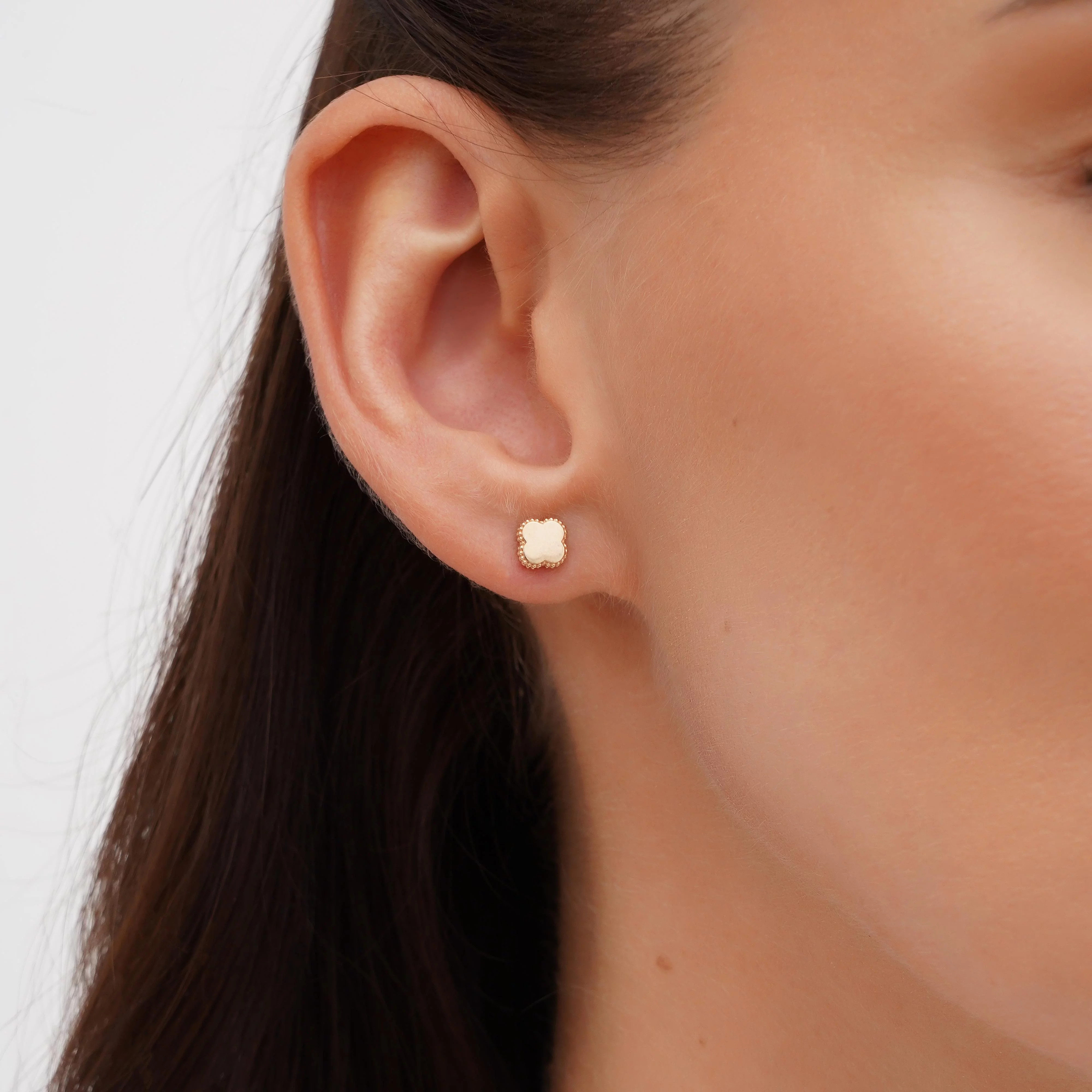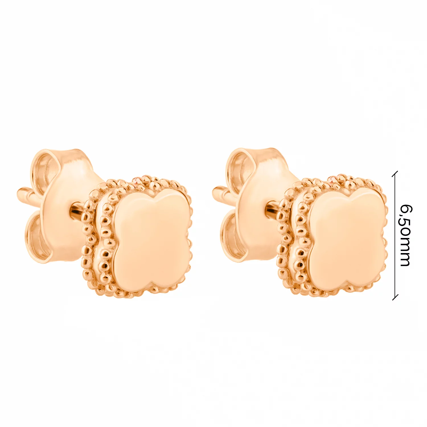 Стильні сережки-гвоздики у формі квітки в комбінованому золоті та алмазною гранню - 1870043