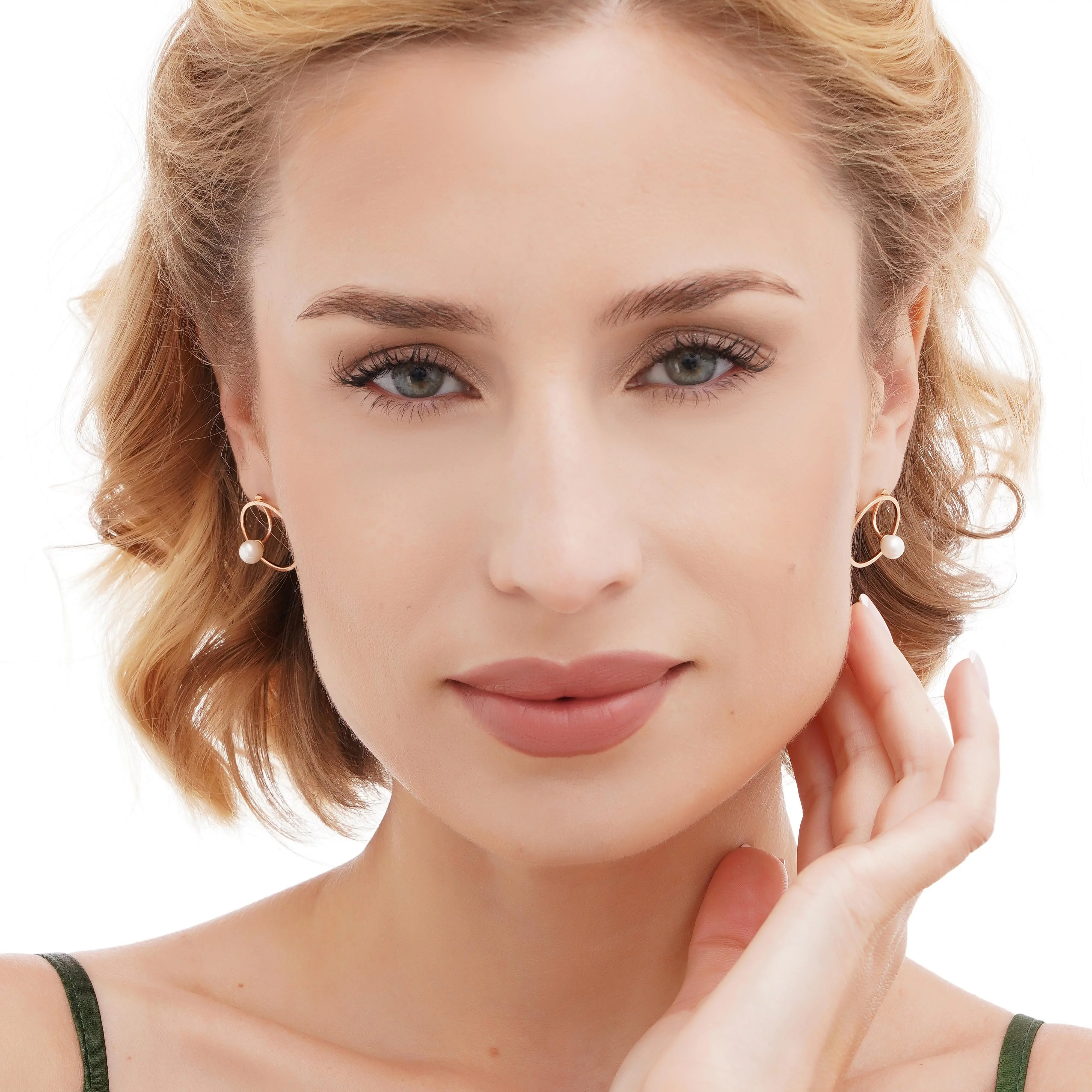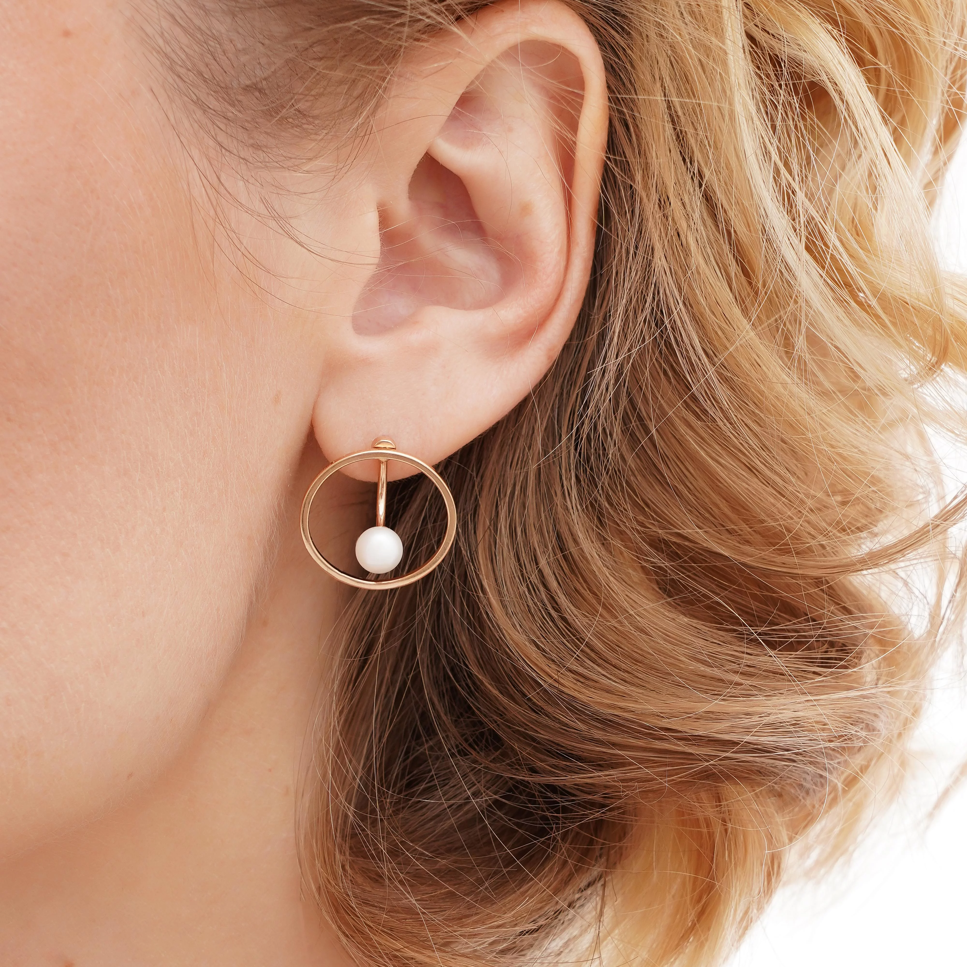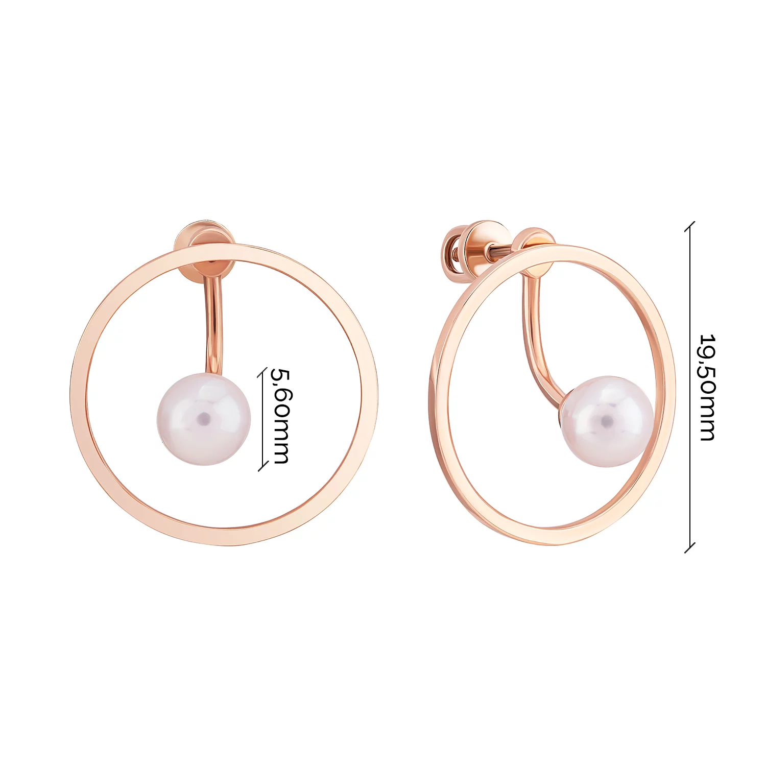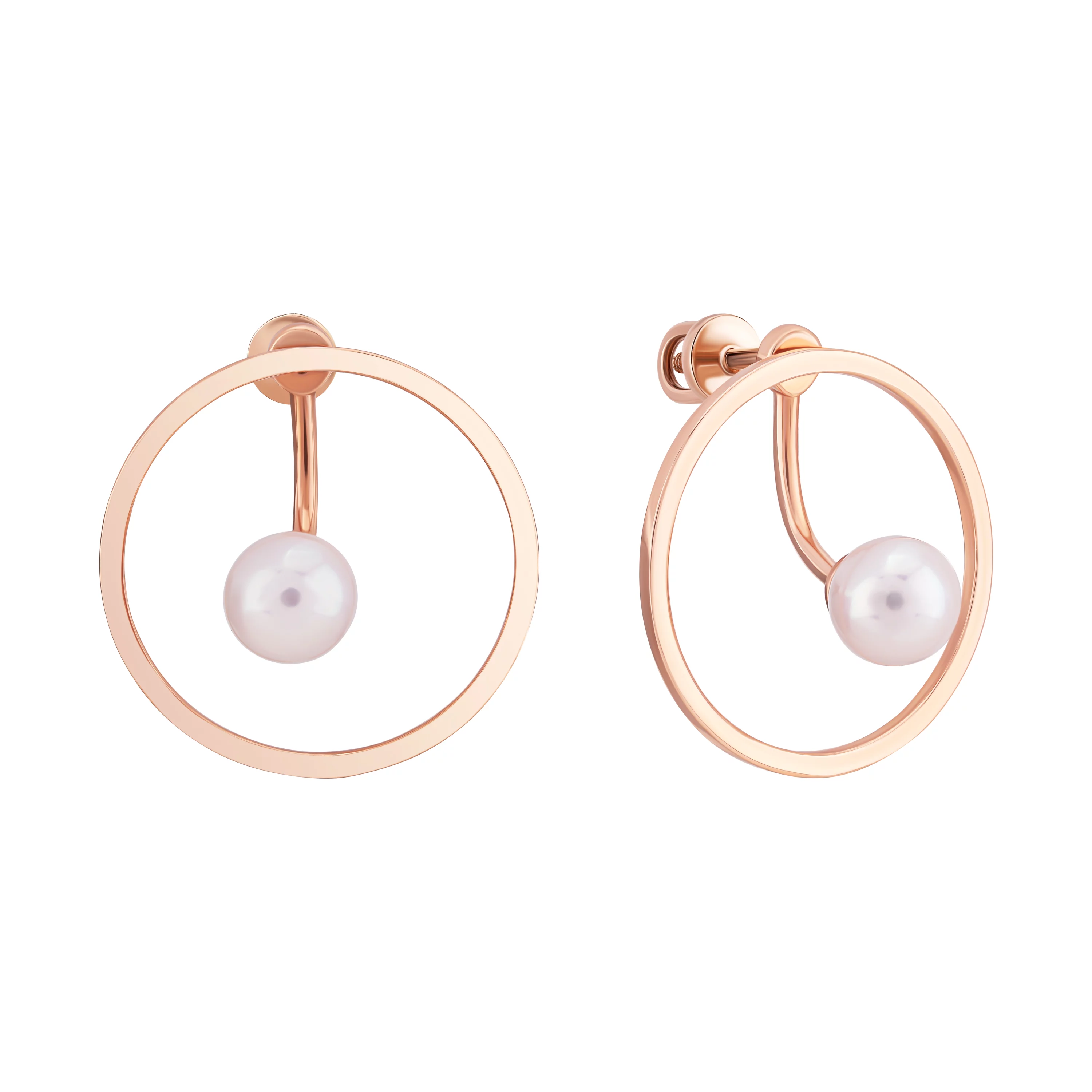 Елегантні сережки-гвоздики "Кулі" у червоному золоті з емаллю - 1926551