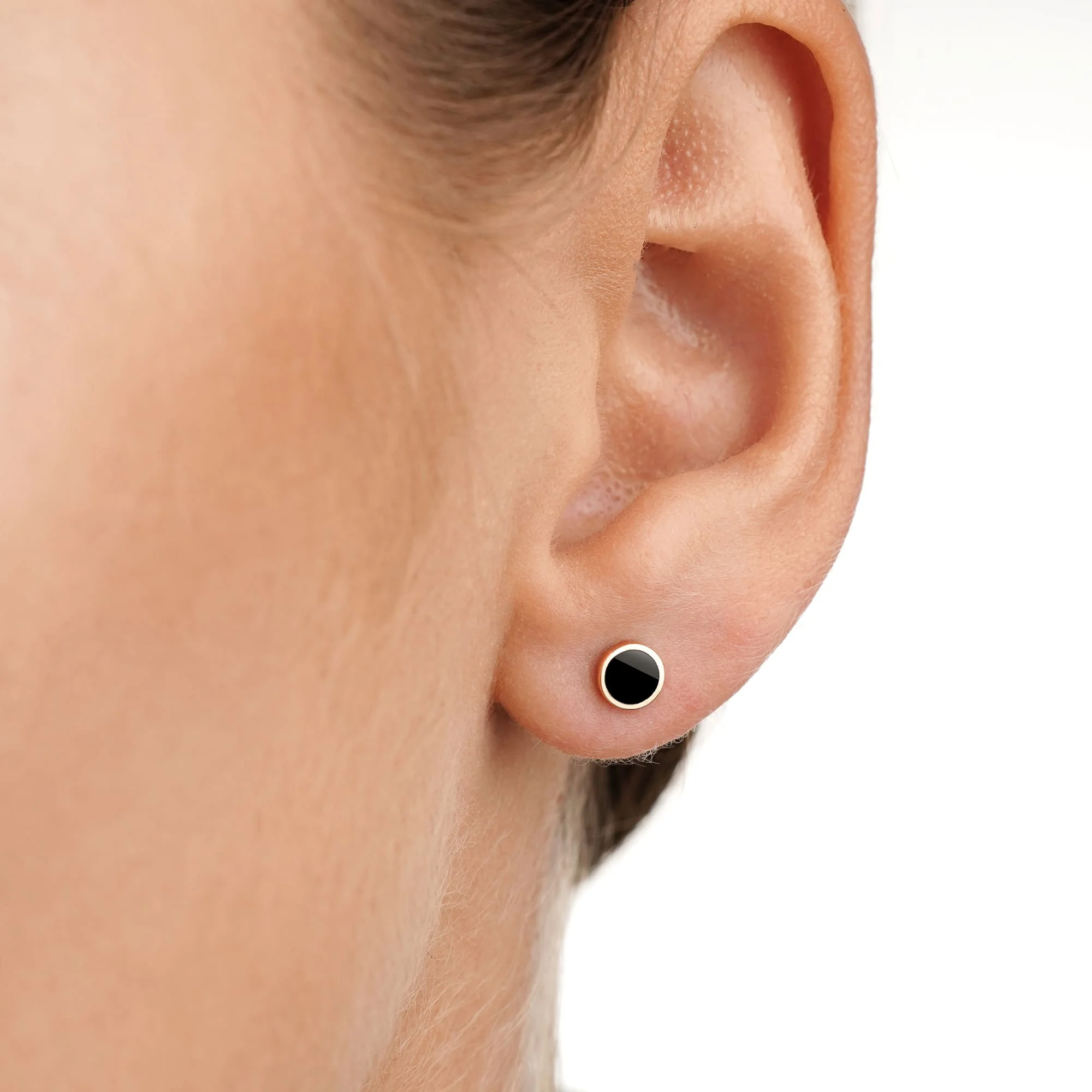 Елегантні сережки-гвоздики "Кулі" у червоному золоті з емаллю - 1926551