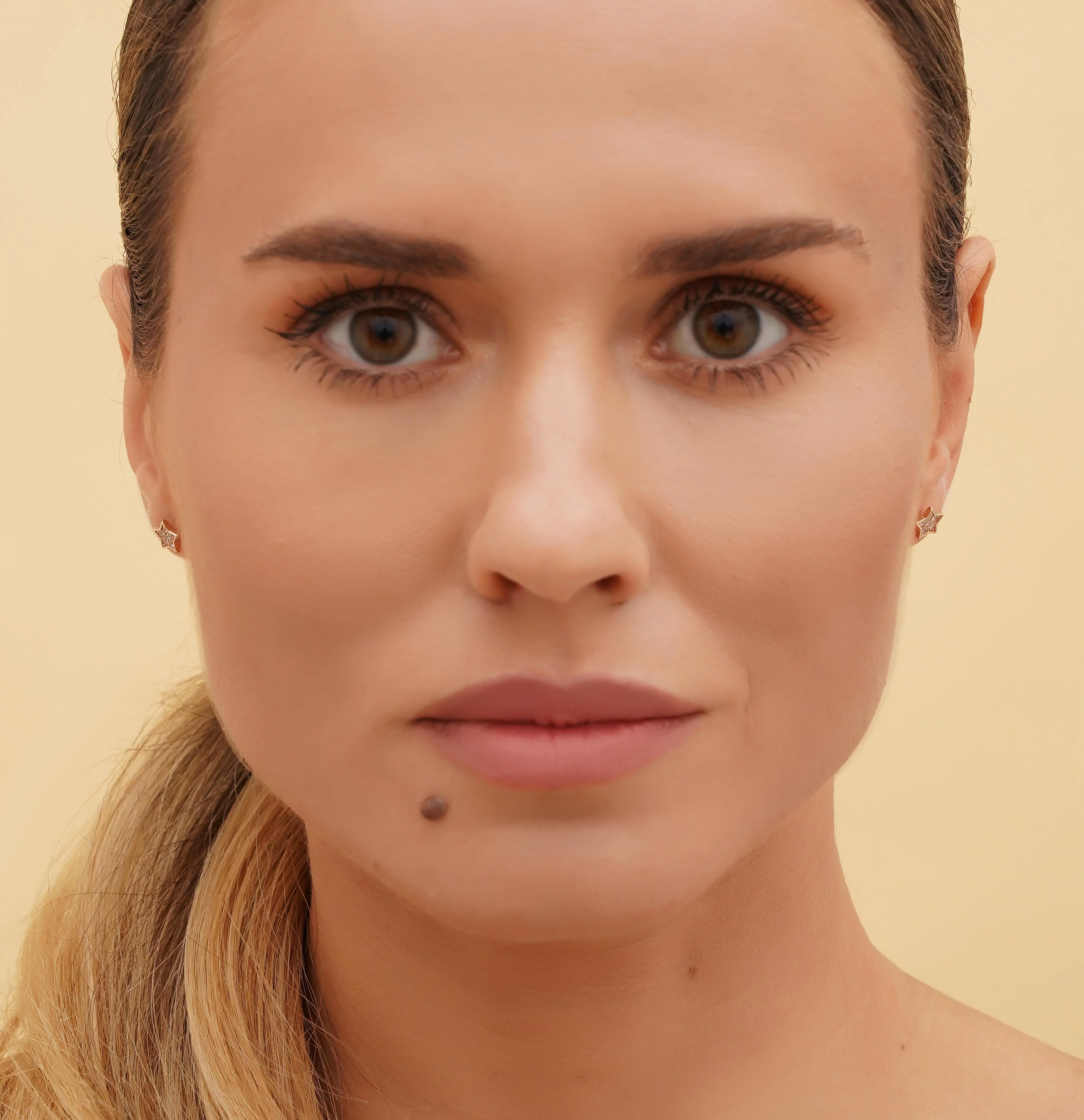 Сережки-гвоздки "Тризуб-Герб України" з червоного золота з фіанітами - 1922442