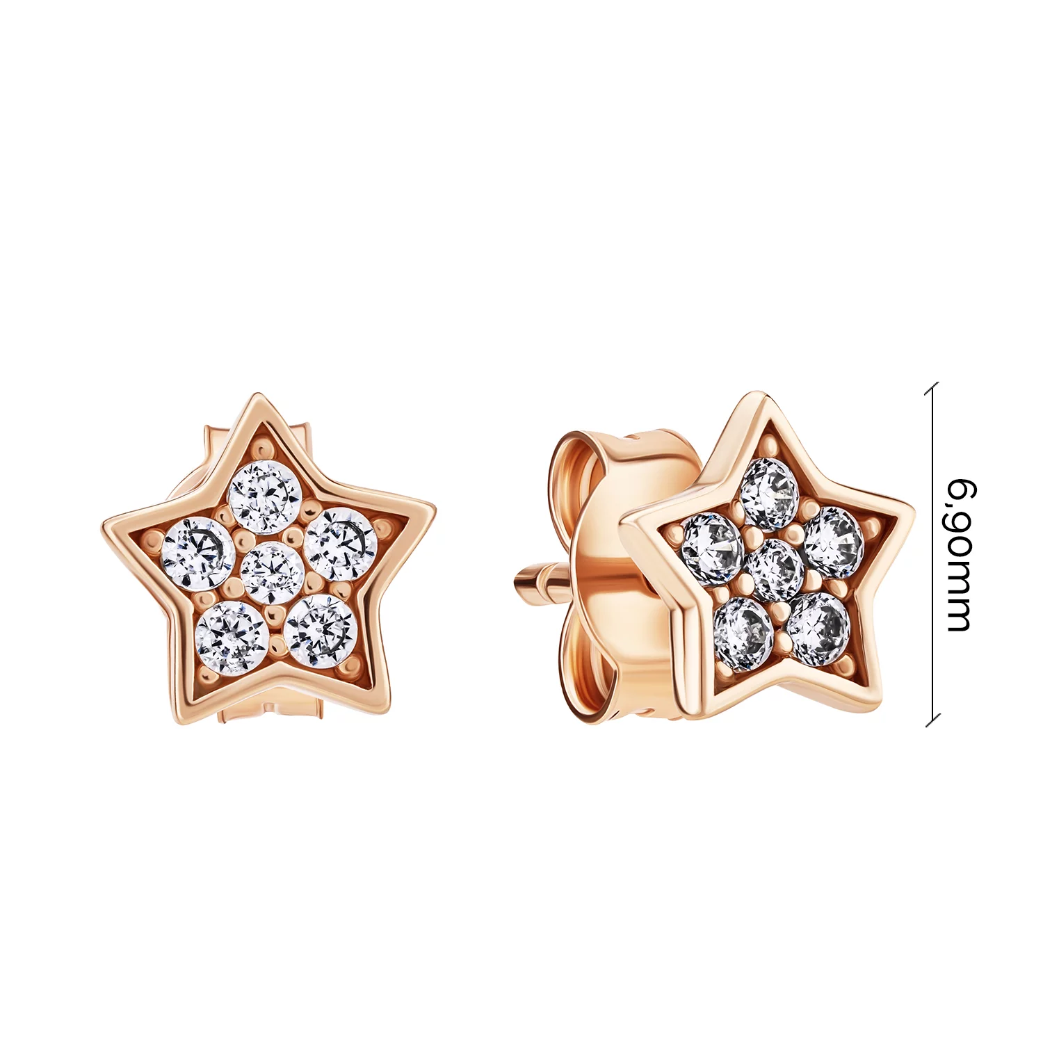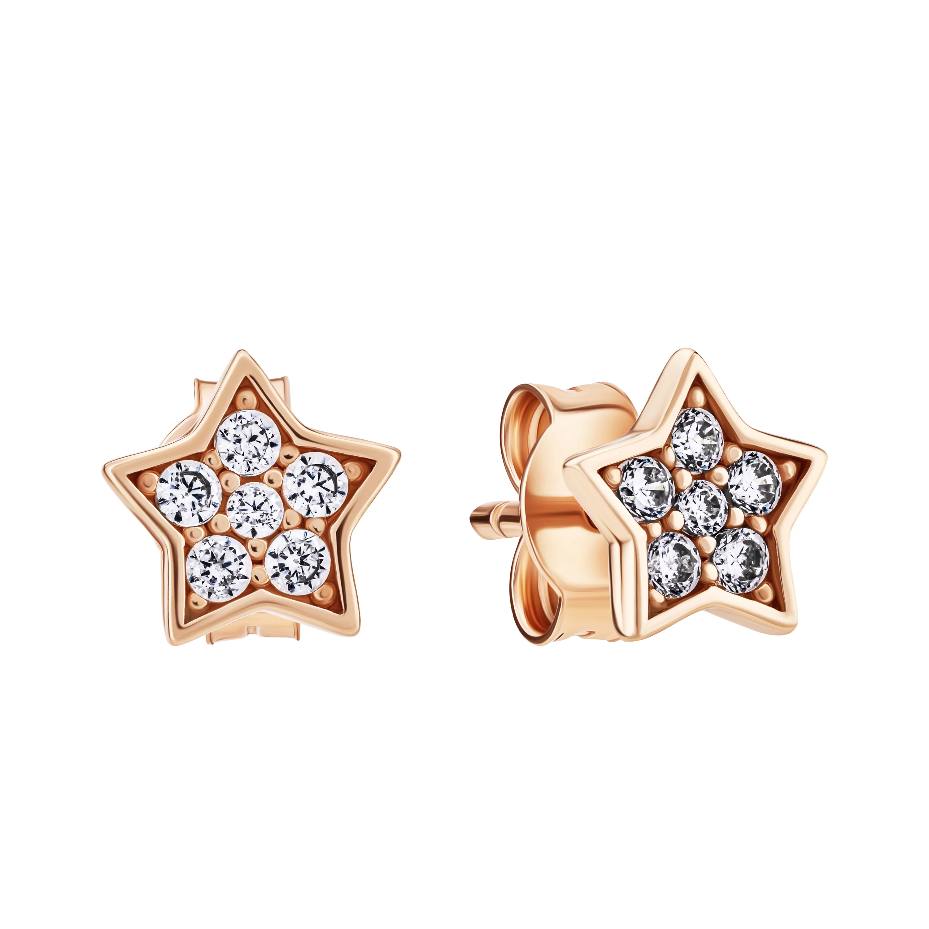 Сережки-гвоздики дитячі з червоного золота з фіанітом "Квіточки" - 1095080