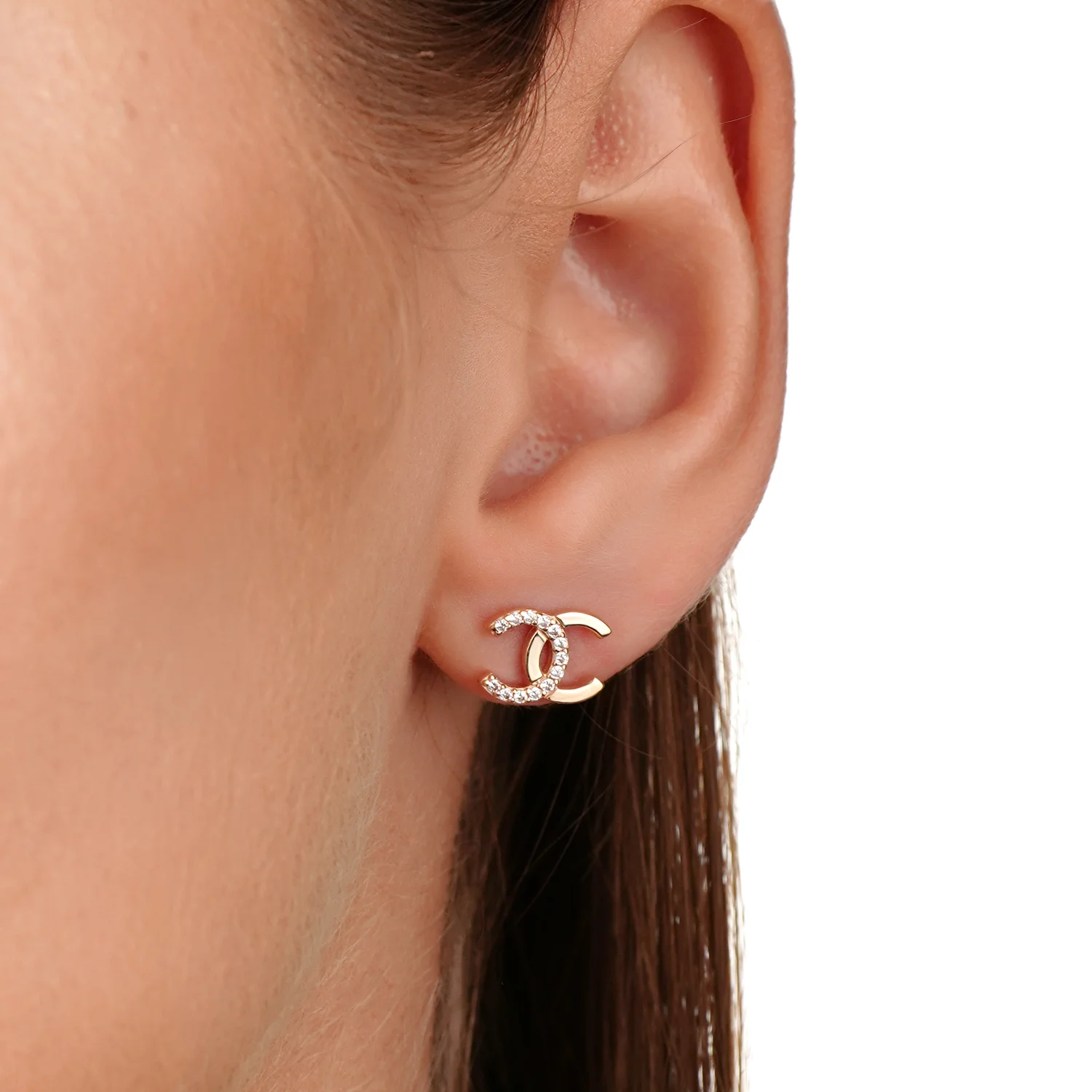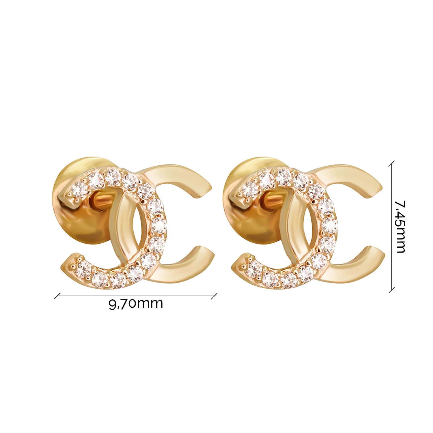 Сережки-гвоздки "Тризуб-Герб України" з червоного золота з фіанітами - 1922442