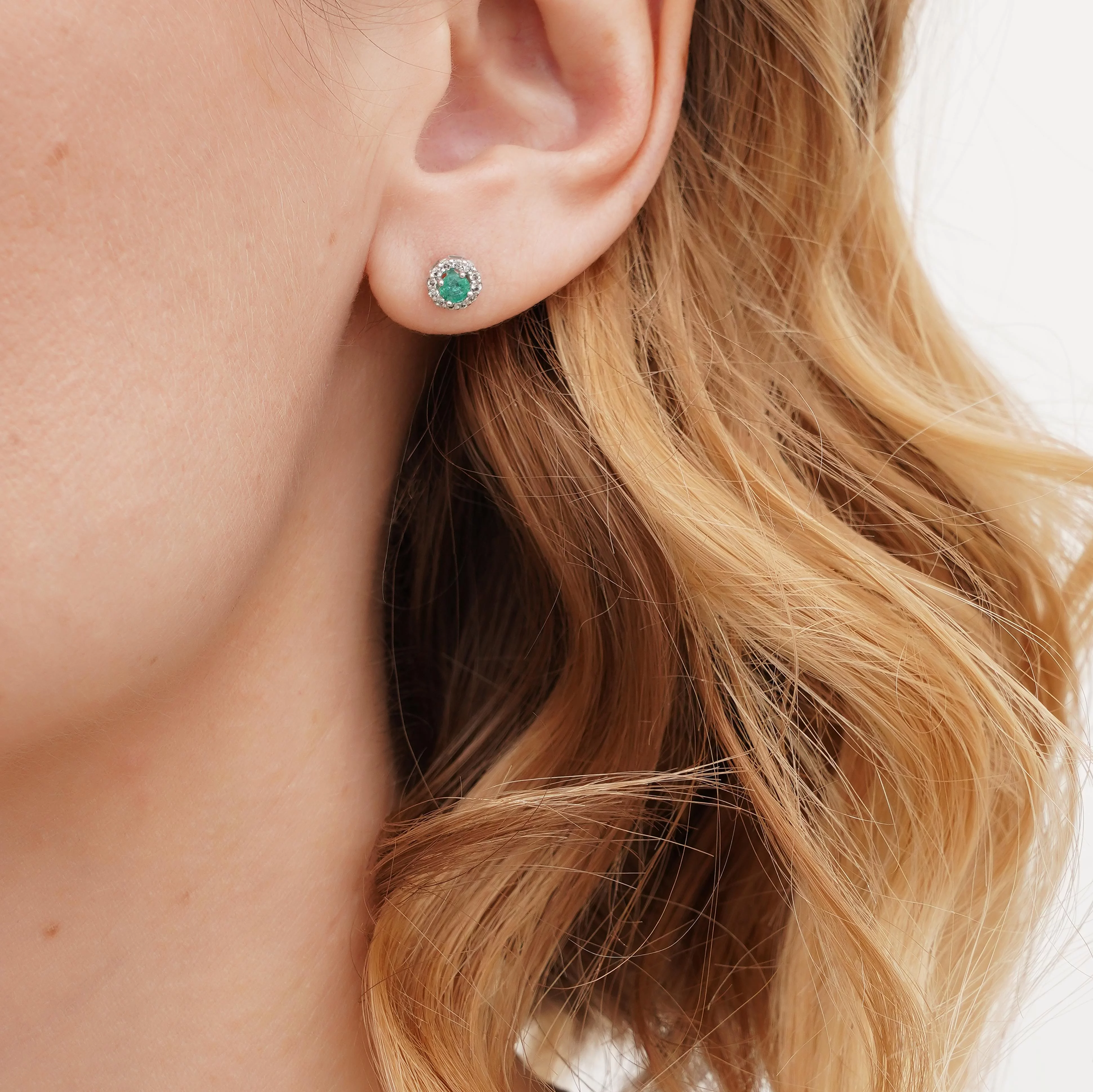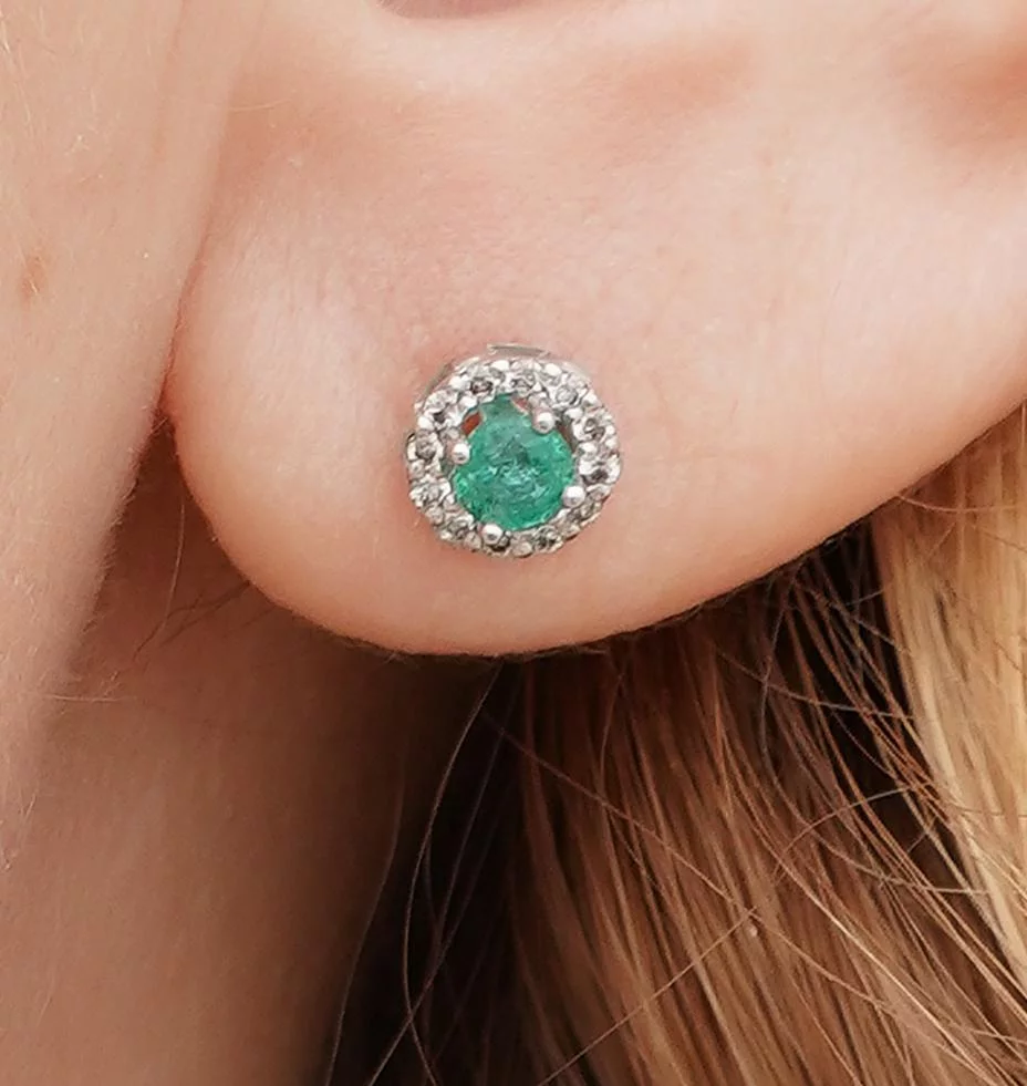 Сережки-гвоздики в білому золоті зі смарагдами та діамантами - 1610013