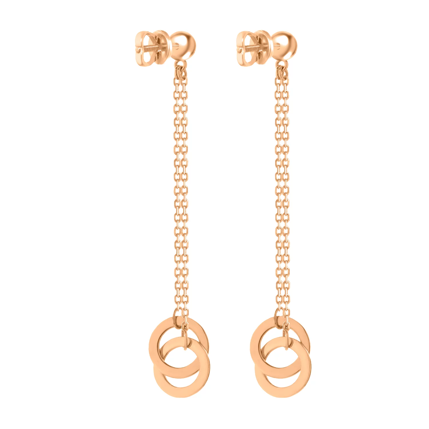 Сережки-гвоздики з червоного золота з підвісками - 971639