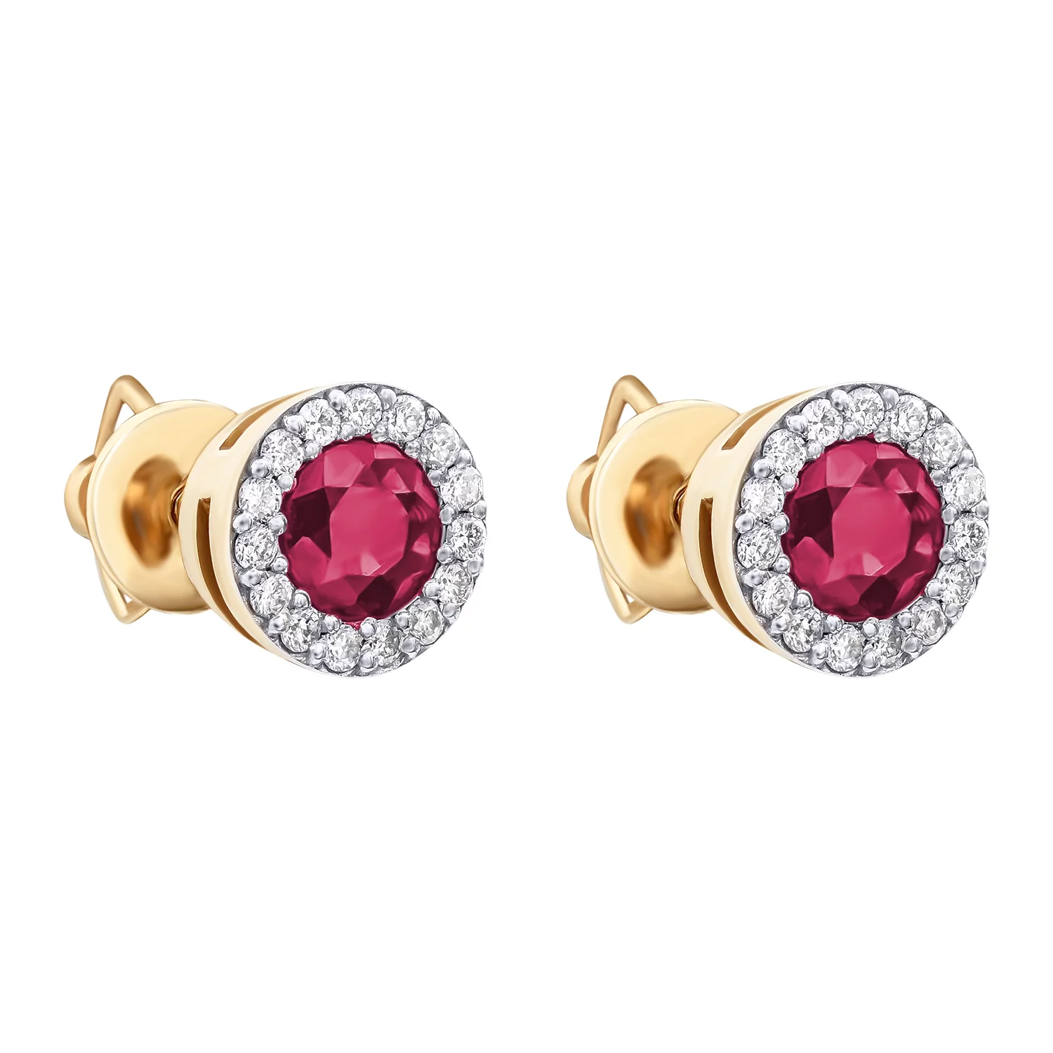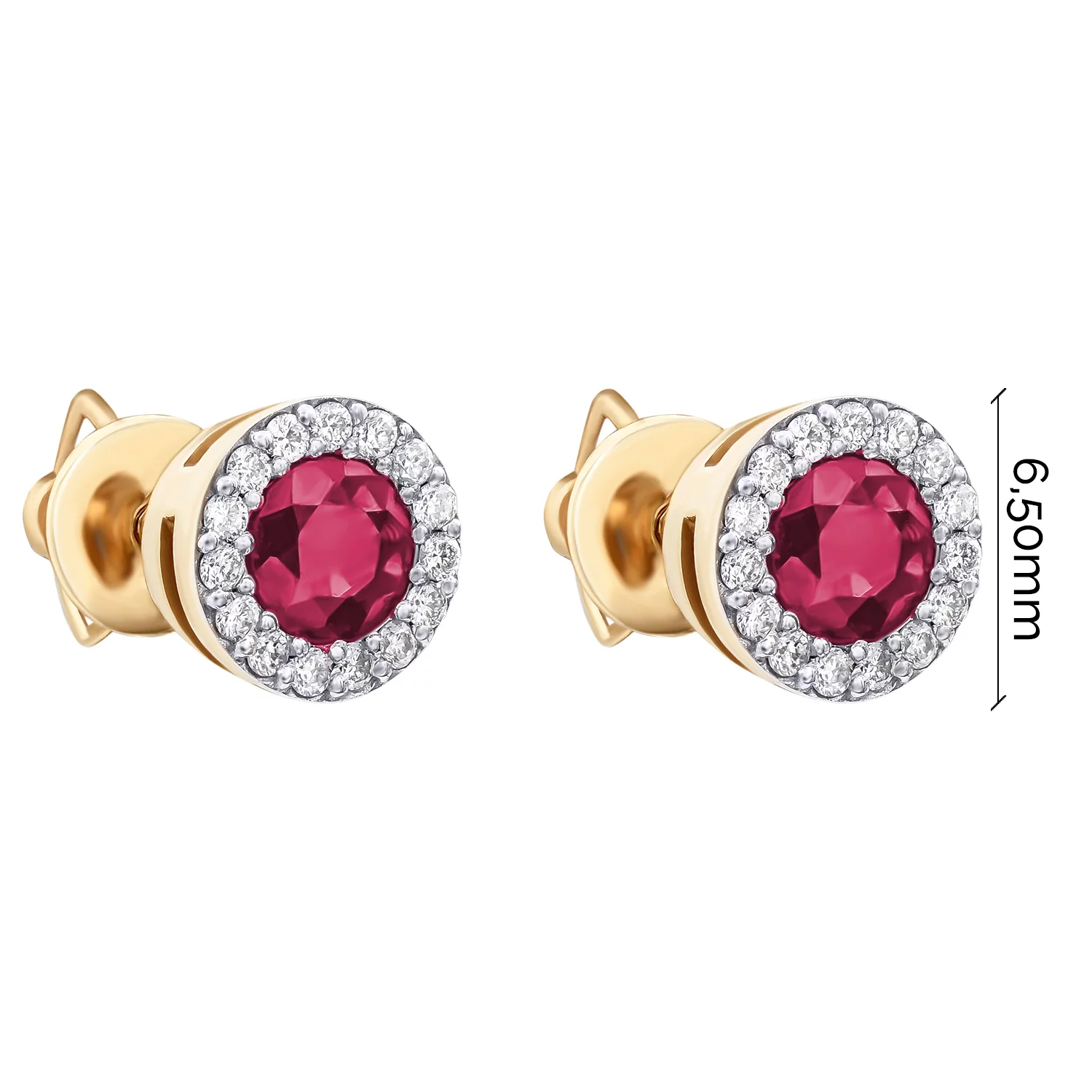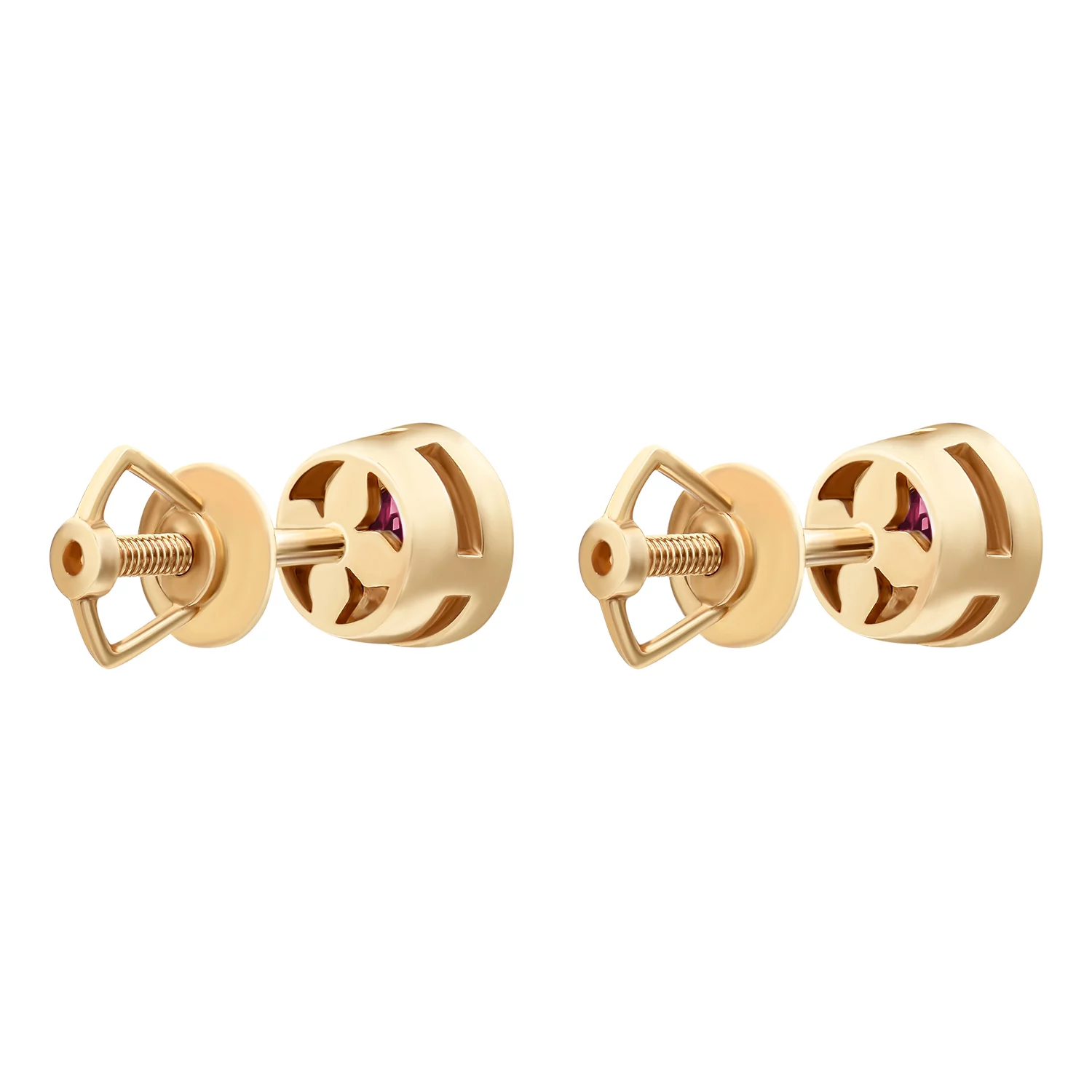 Сережки-гвоздики з червоного золота з діамантами "Прямокутник" - 908338