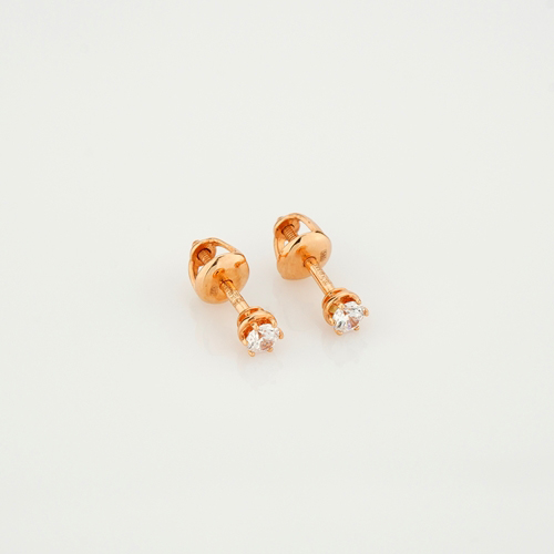 Сережки-гвоздики з червоного золота з фіанітом - 870404