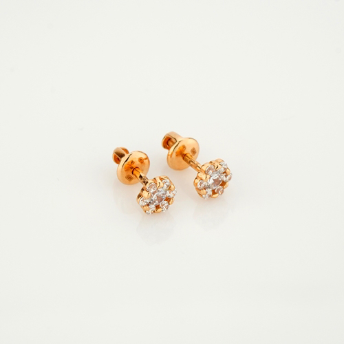 Сережки-гвоздики з червоного золота з фіанітами у формі квіточки - 1548867