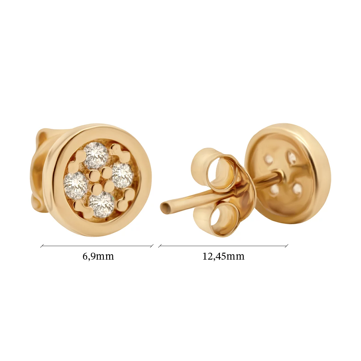 Елегантні сережки-гвоздики у формі квадрата в червоному золоті з фіанітами - 1876967