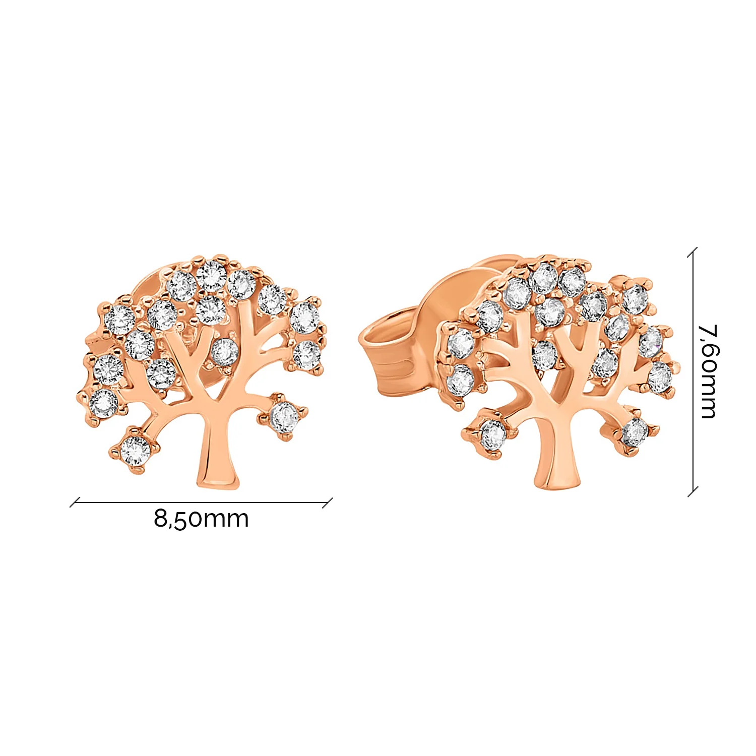 Сережки-гвоздики з червоного золота з фіанітом "Дерево життя" - 1095072