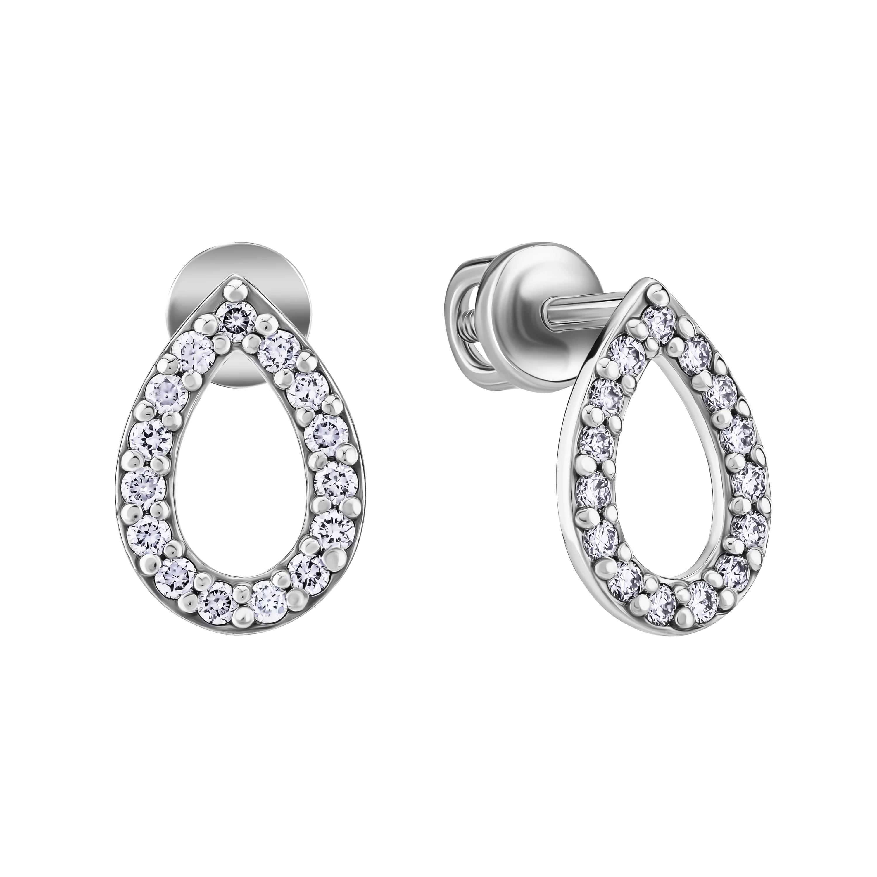 Сережки-гвоздики в білому золоті з діамантами і підвісними прямокутниками - 1704447