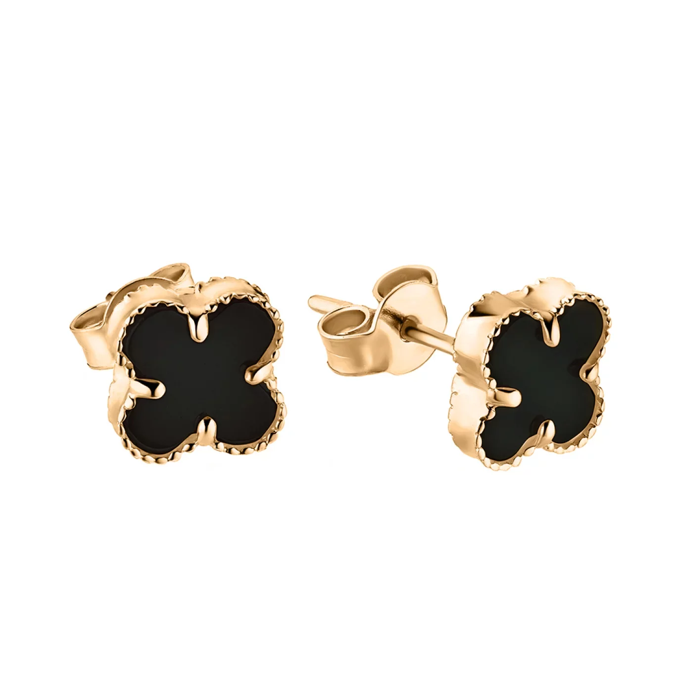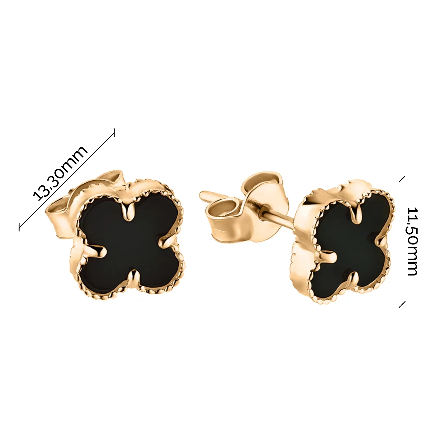 Сережки-гвоздики "Конюшина" з червоного золота з оніксом - 1813105