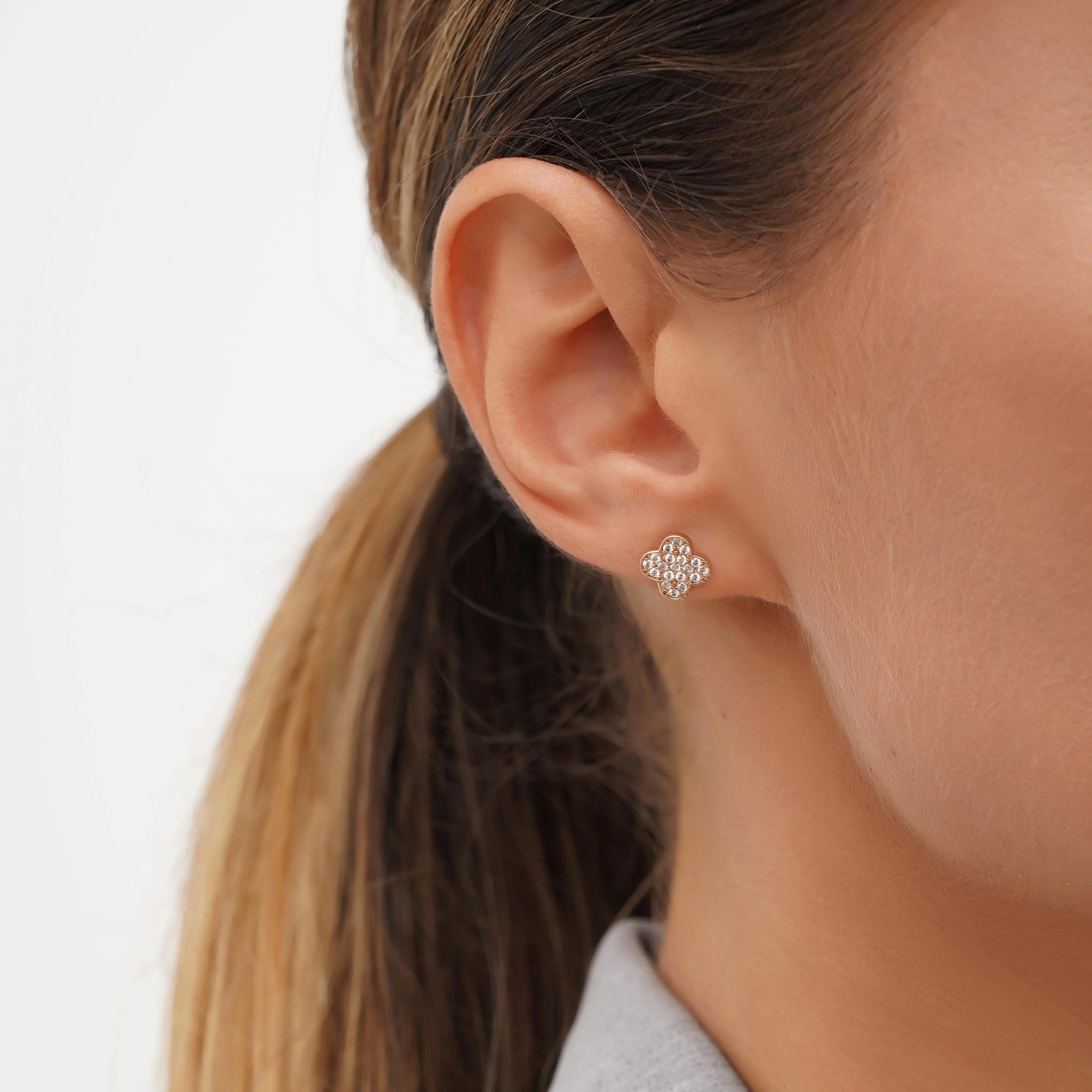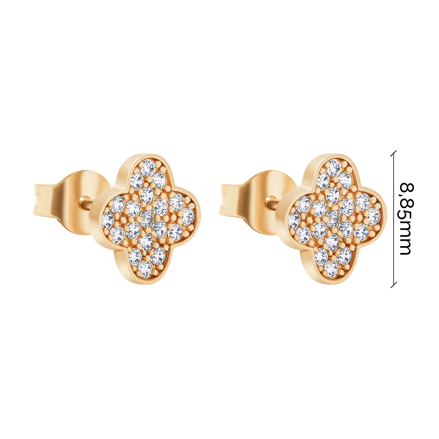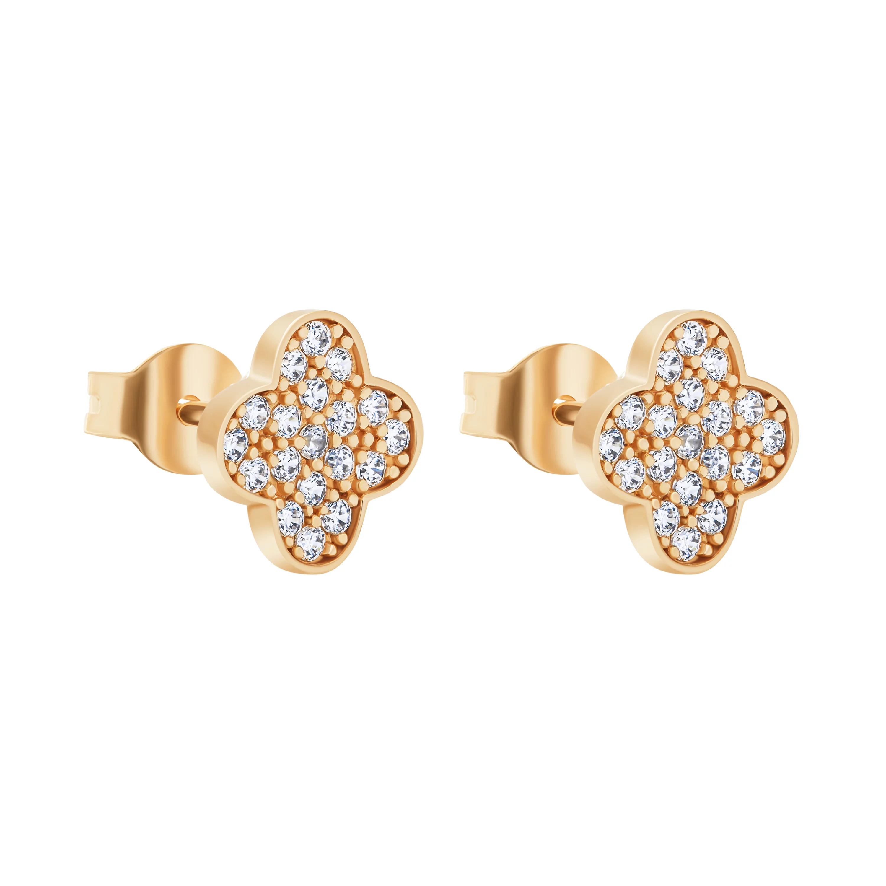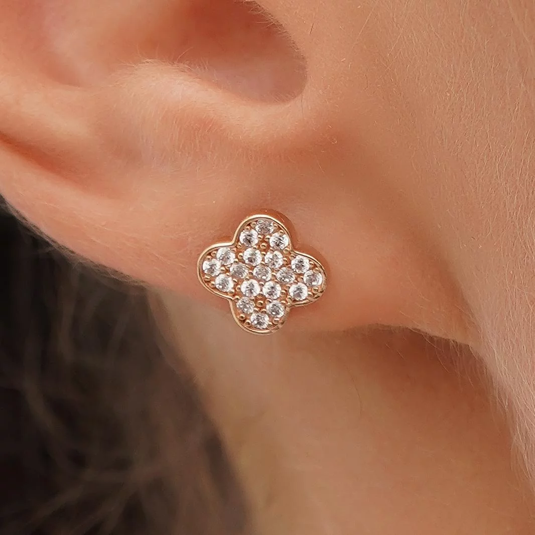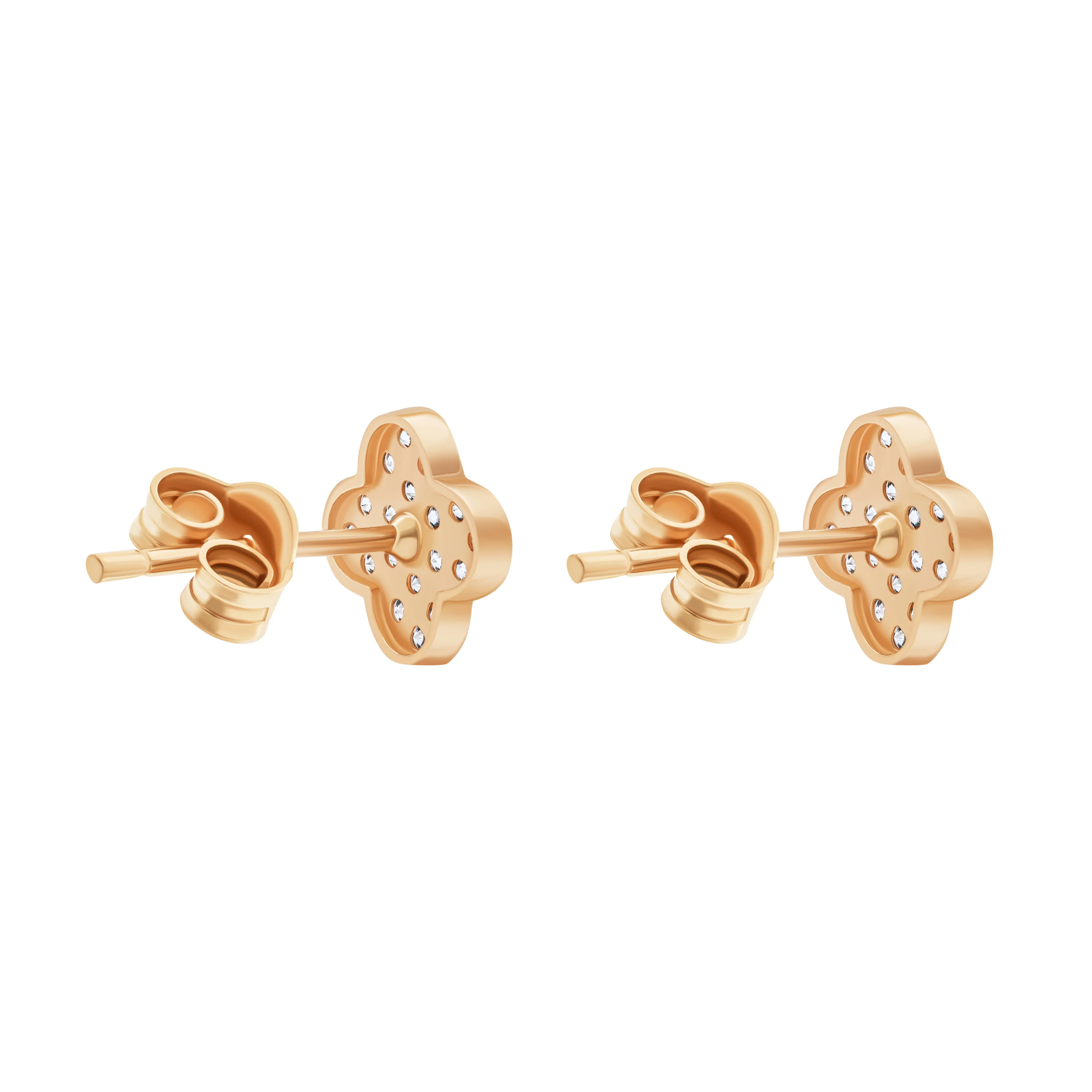 Стильні сережки-пусети "Конюшина" у червоному золоті з емаллю - 1938828