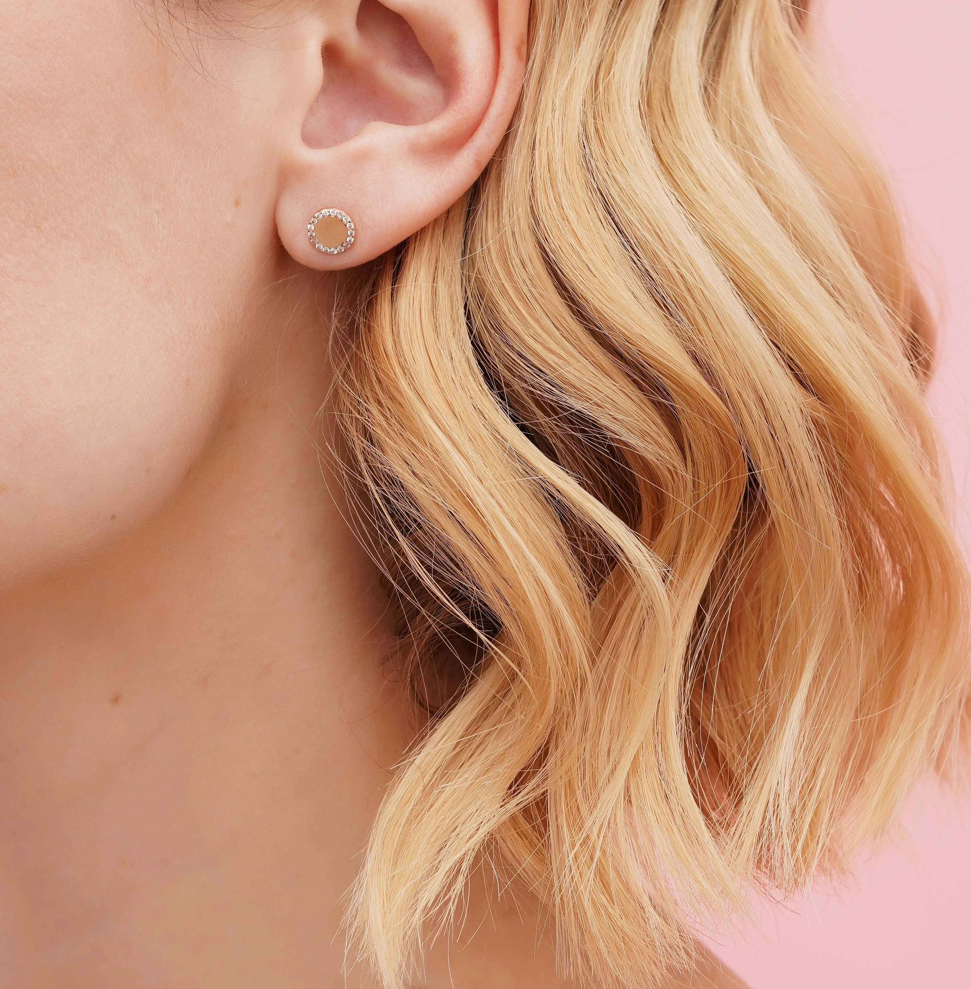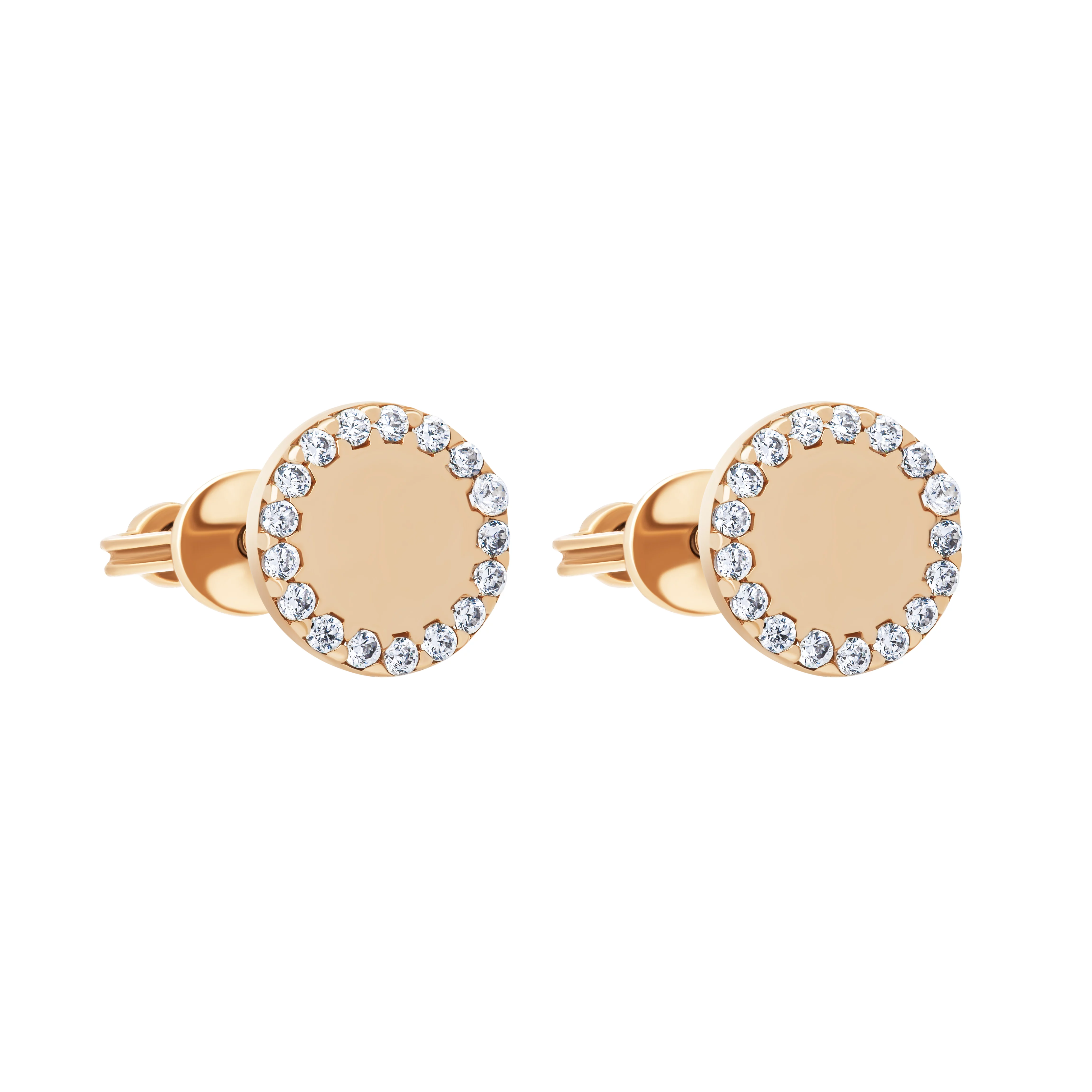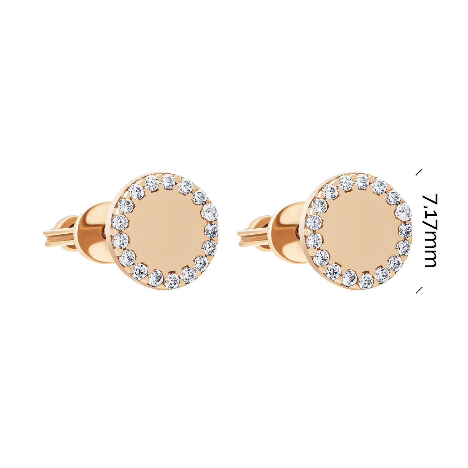 Стильні сережки-пусети "Коло" у червоному золоті з емаллю та фіанітами - 1958570