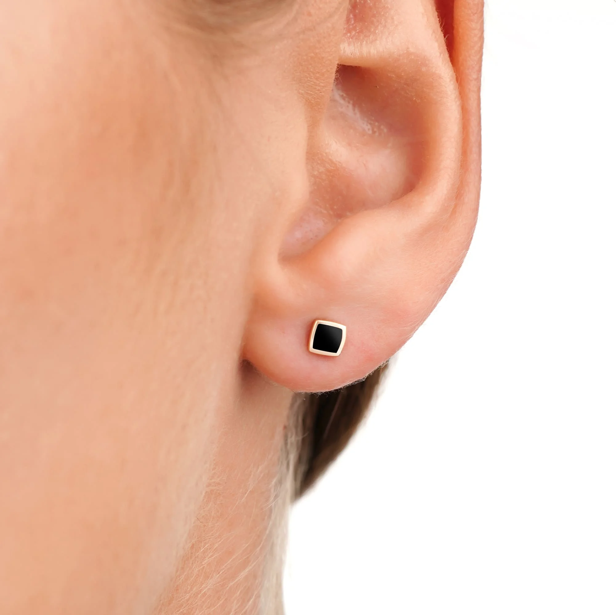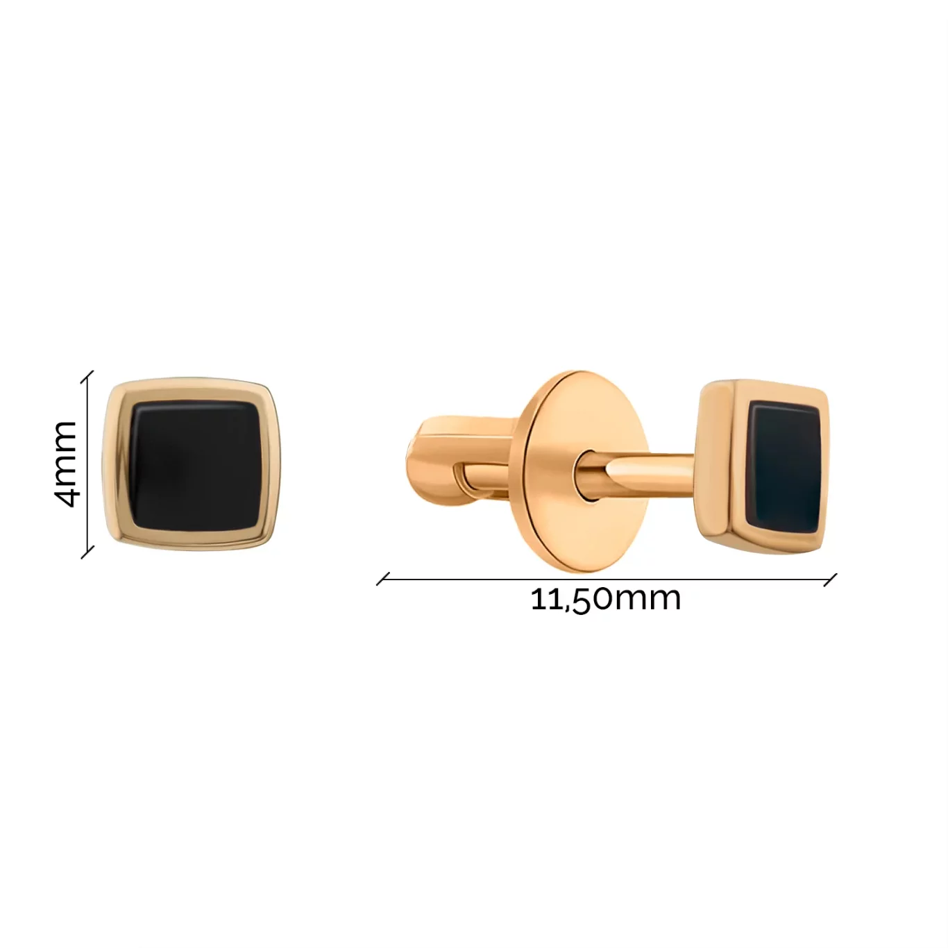 Сережки-гвоздики "Геометричні фігури" з червоного золота з емаллю - 1614827
