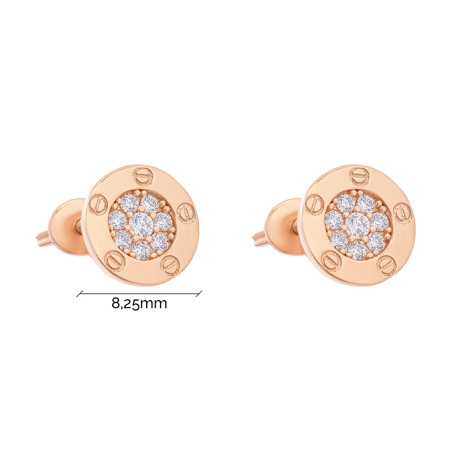 Елегантні сережки-гвоздики у червоному золоті з турмаліном та фіанітами - 1939009