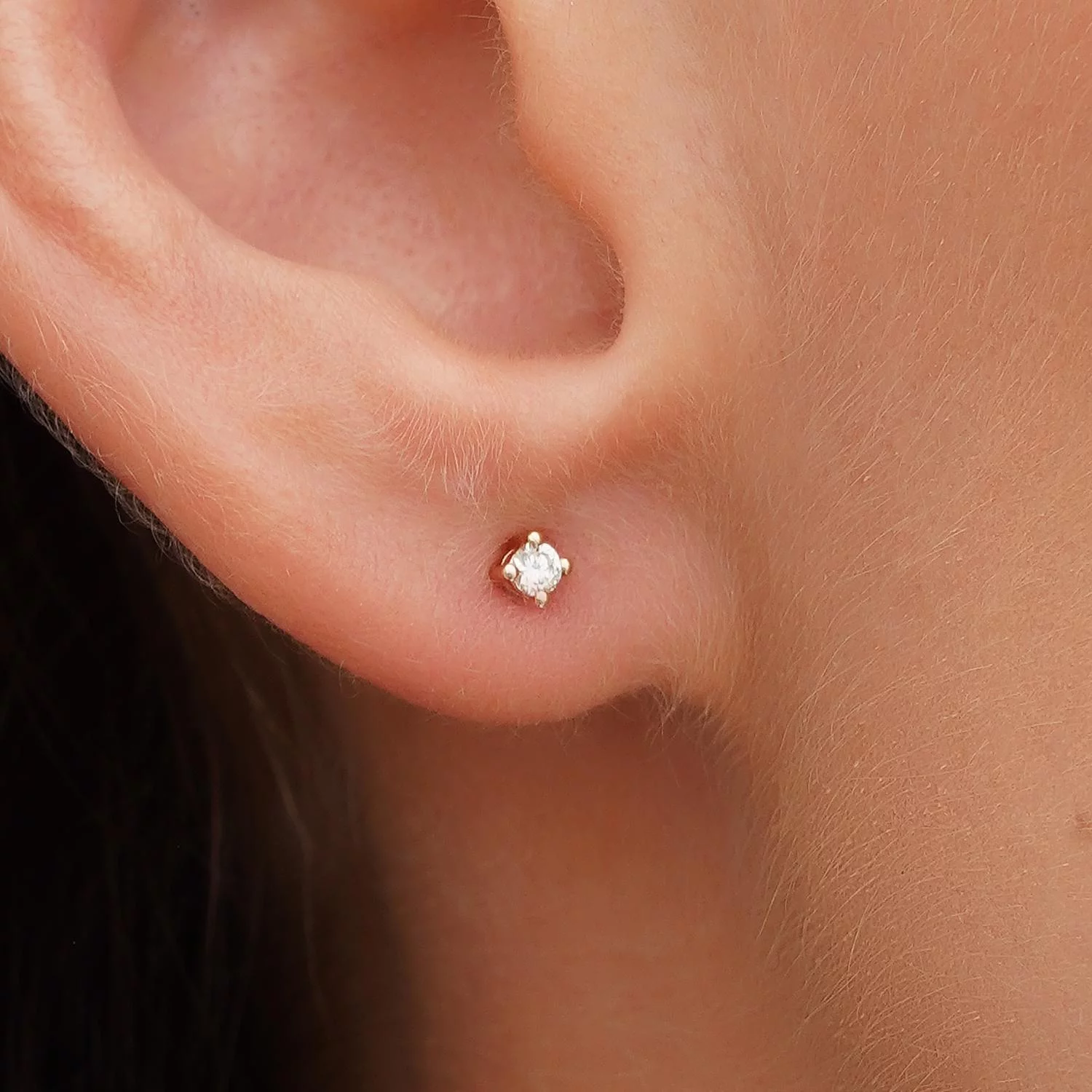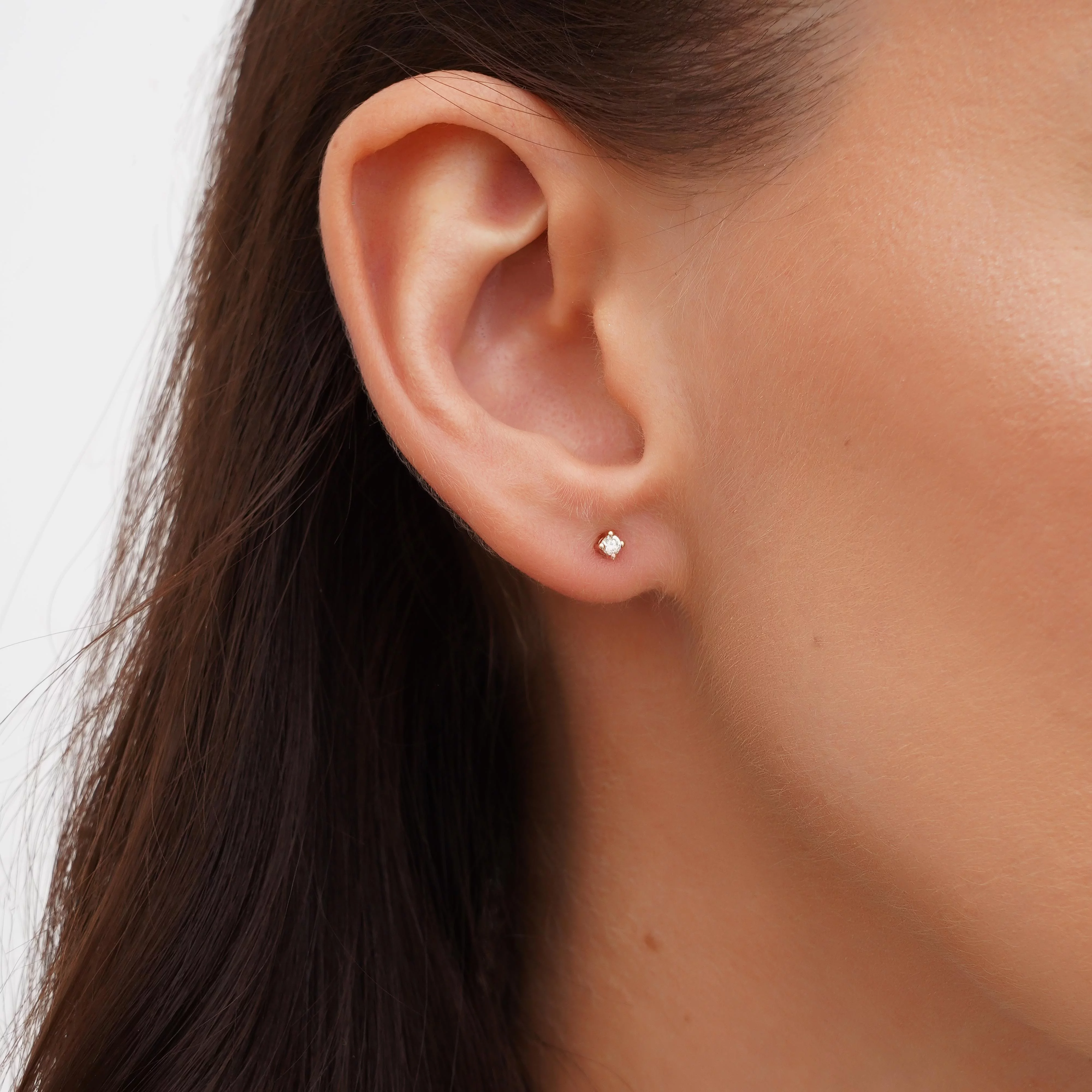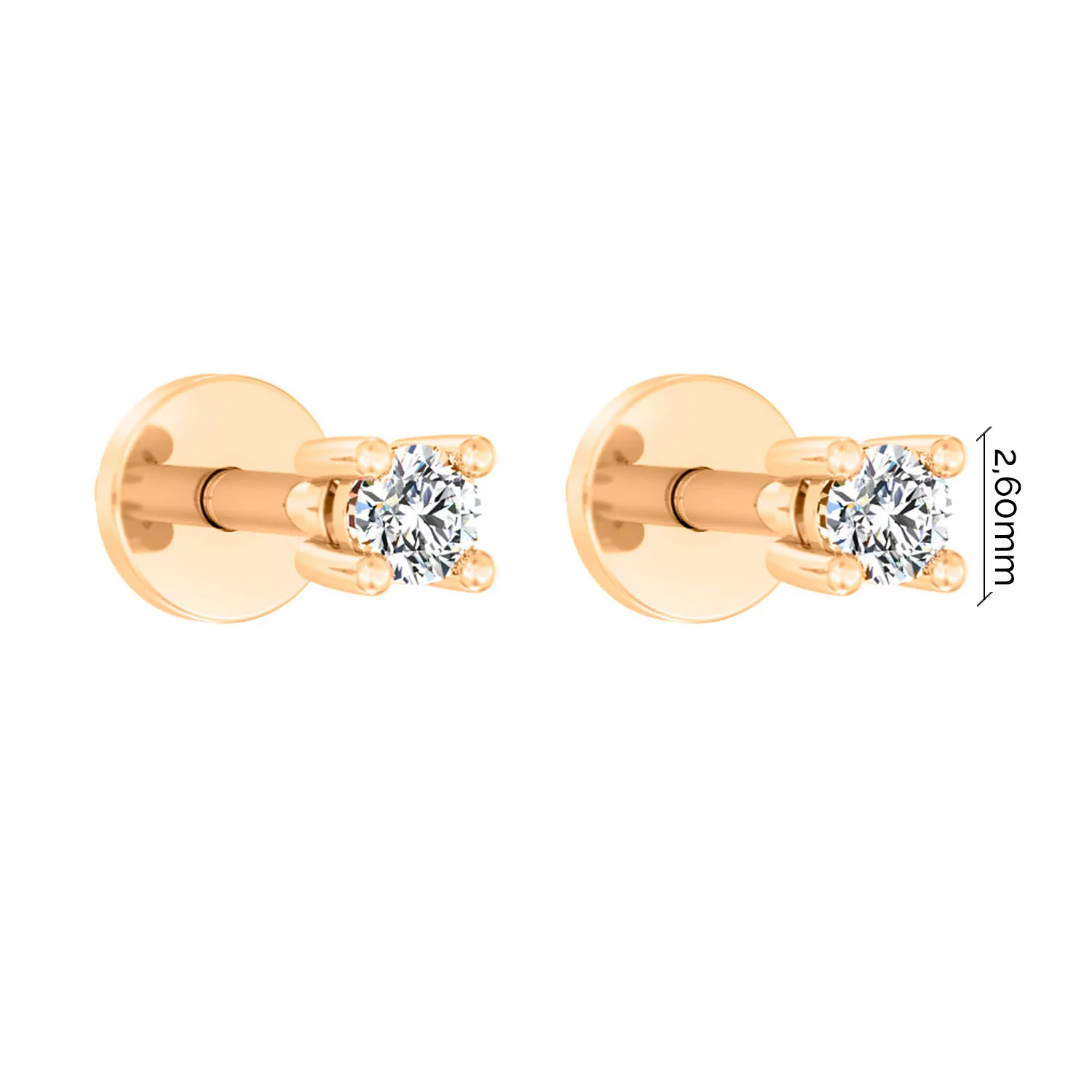 Сережки-гвоздики з діамантом у стилі мінімалізм у червоному золоті - 1801732