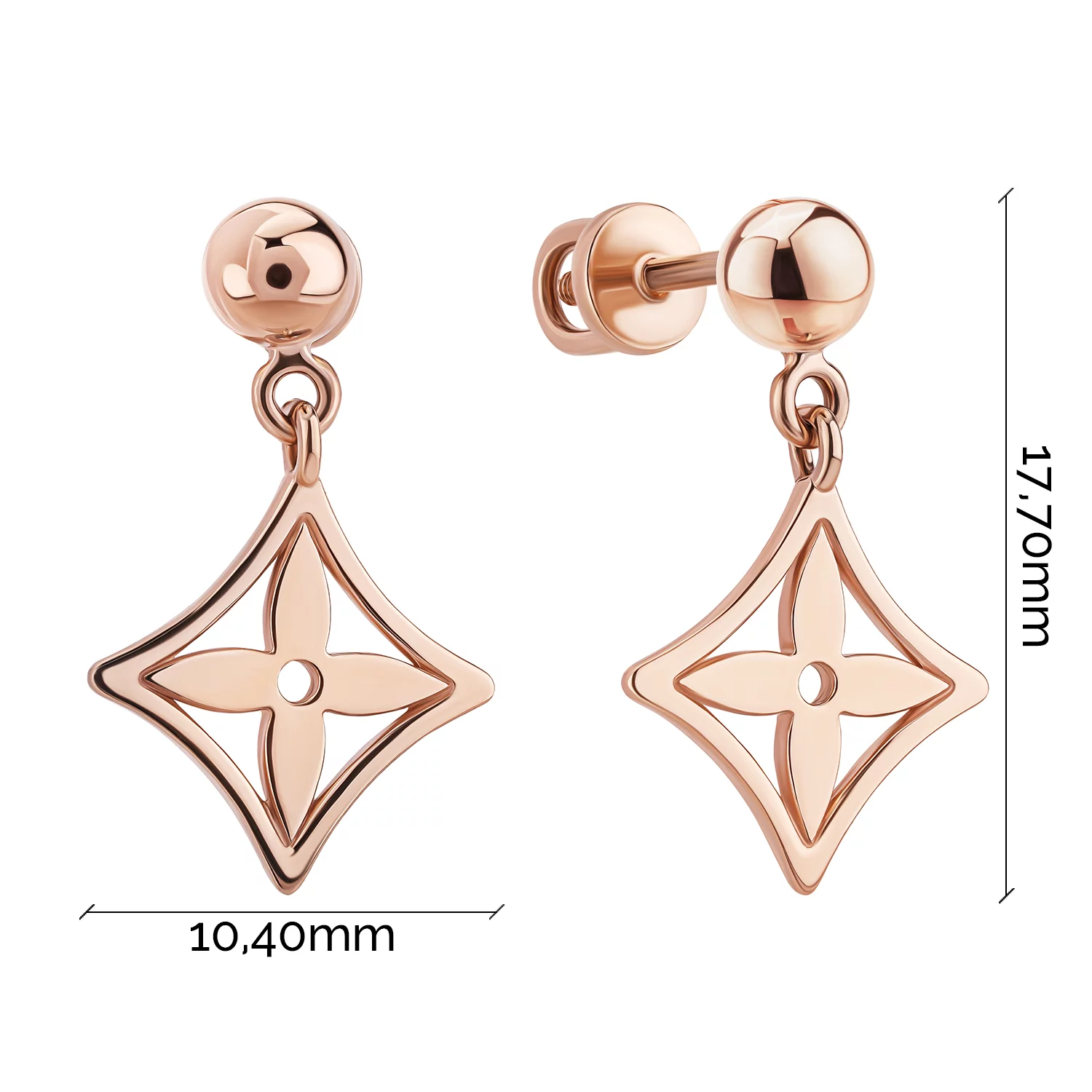 Елегантні сережки у геометричному стилі з підвісами з червоного золота - 1951622