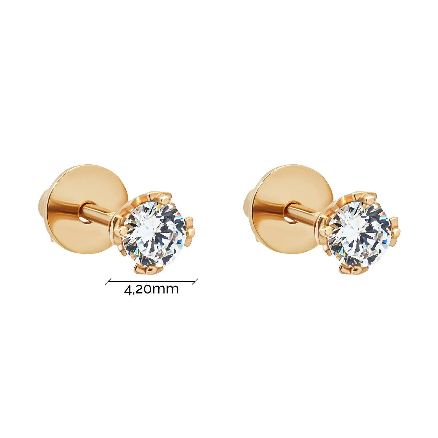 Сережки-гвоздики з червоного золота з фіанітом у вигляді квіточки - 1445201