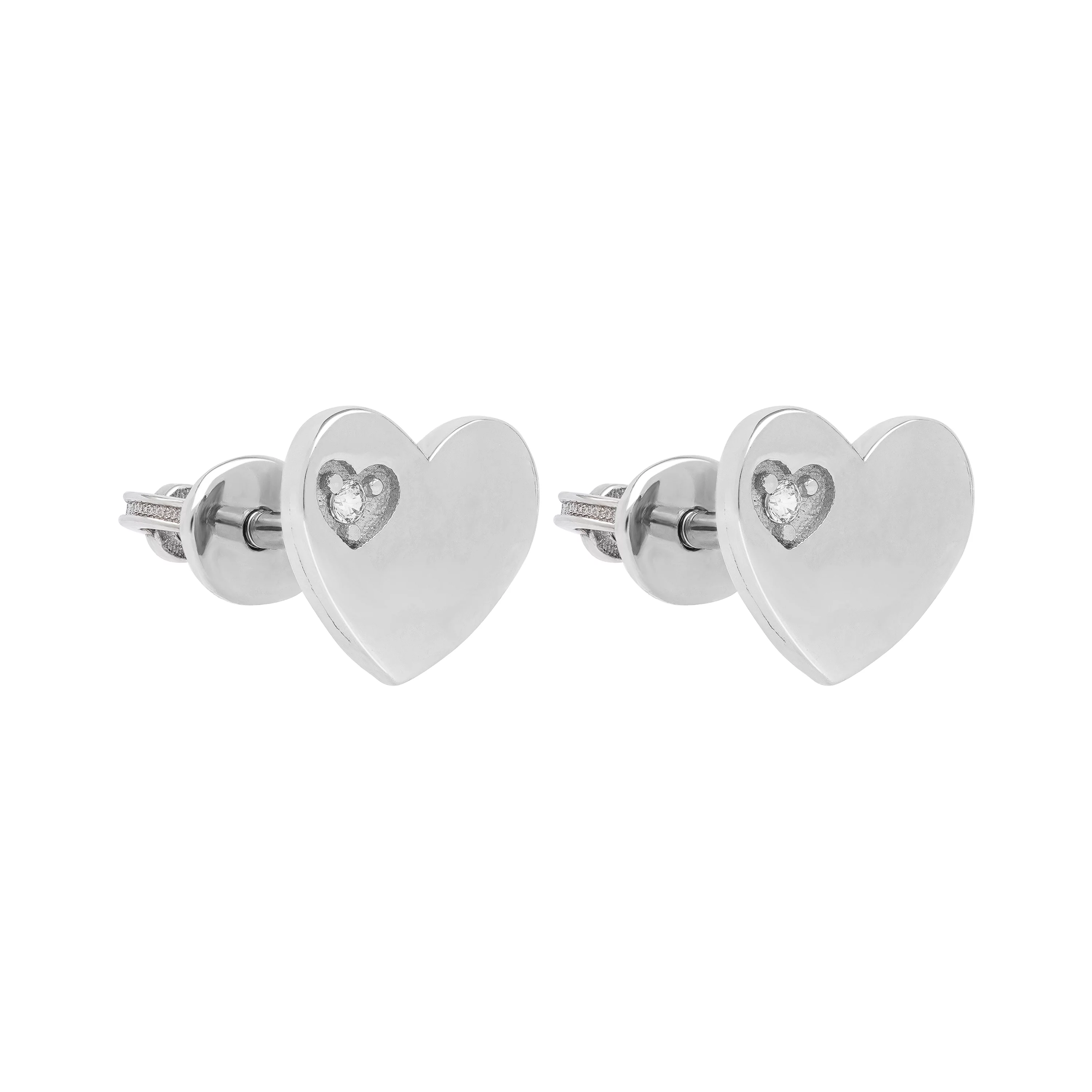 Сережки-гвоздики у червоному золоті золоті "Серце" з фіанітами - 1589229