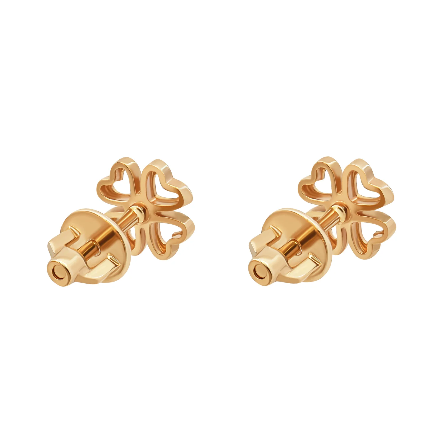 Сережки-гвоздики у формі конюшини з червоного золота з фіанітами - 1748321