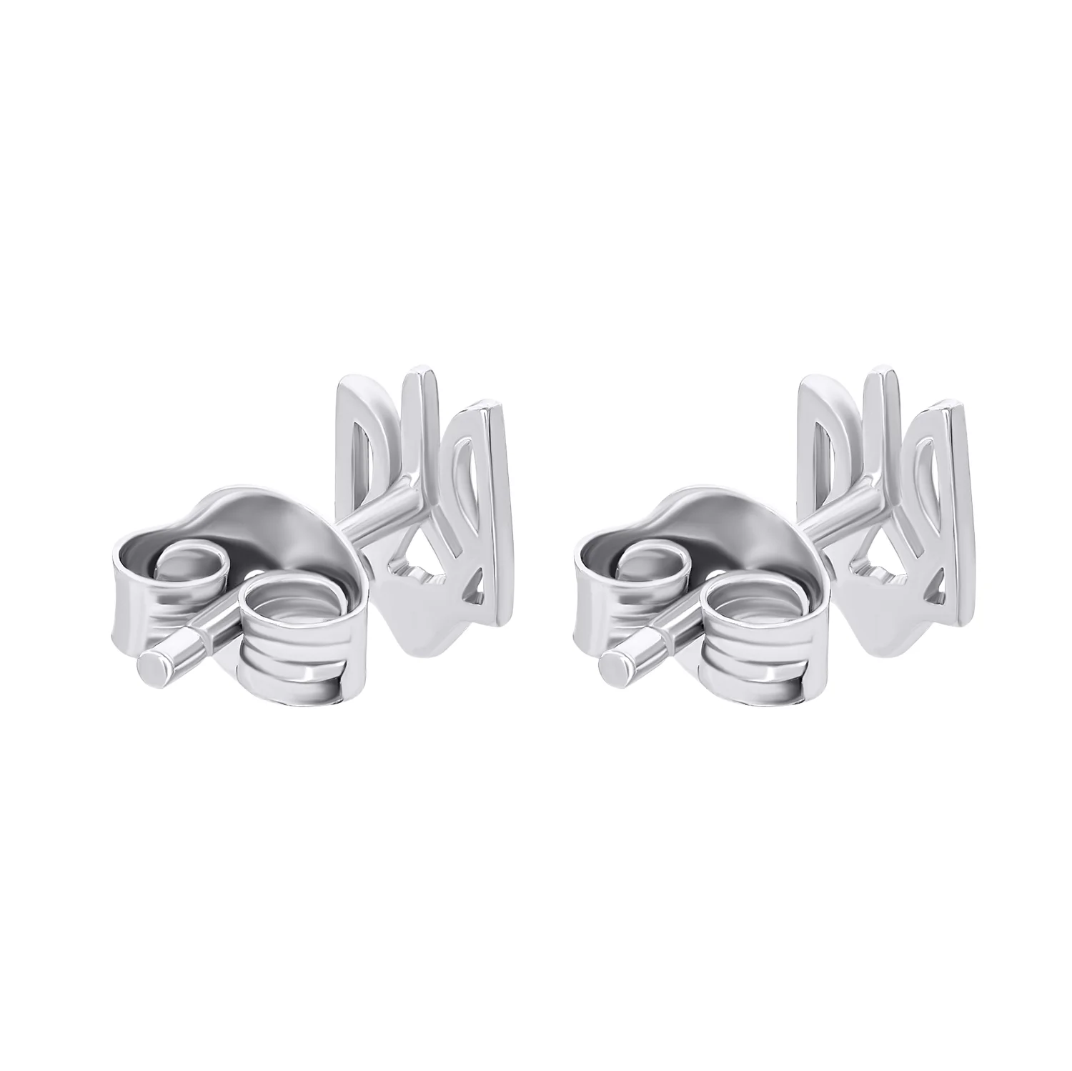 Сережки-пусети у вигляді Герба України привертають увагу незвичайним дизайном. Ювелірна прикраса виконана в патріотичному стилі. Виготовлена зі срібла 925 проби, його склад забезпечує гарний холодний блиск виробу. Лаконічні сережки добре комбінуються з іншими прикрасами такого ж металу. Стануть завершальним елементом повсякденного образу та додадуть йому оригінальності. Завдяки універсальному стилю поєднуються з різними вбраннями. Сережки застібаються на надійний та комфортний замок пусет. Підходять як подарунок для дівчинки чи жінки.