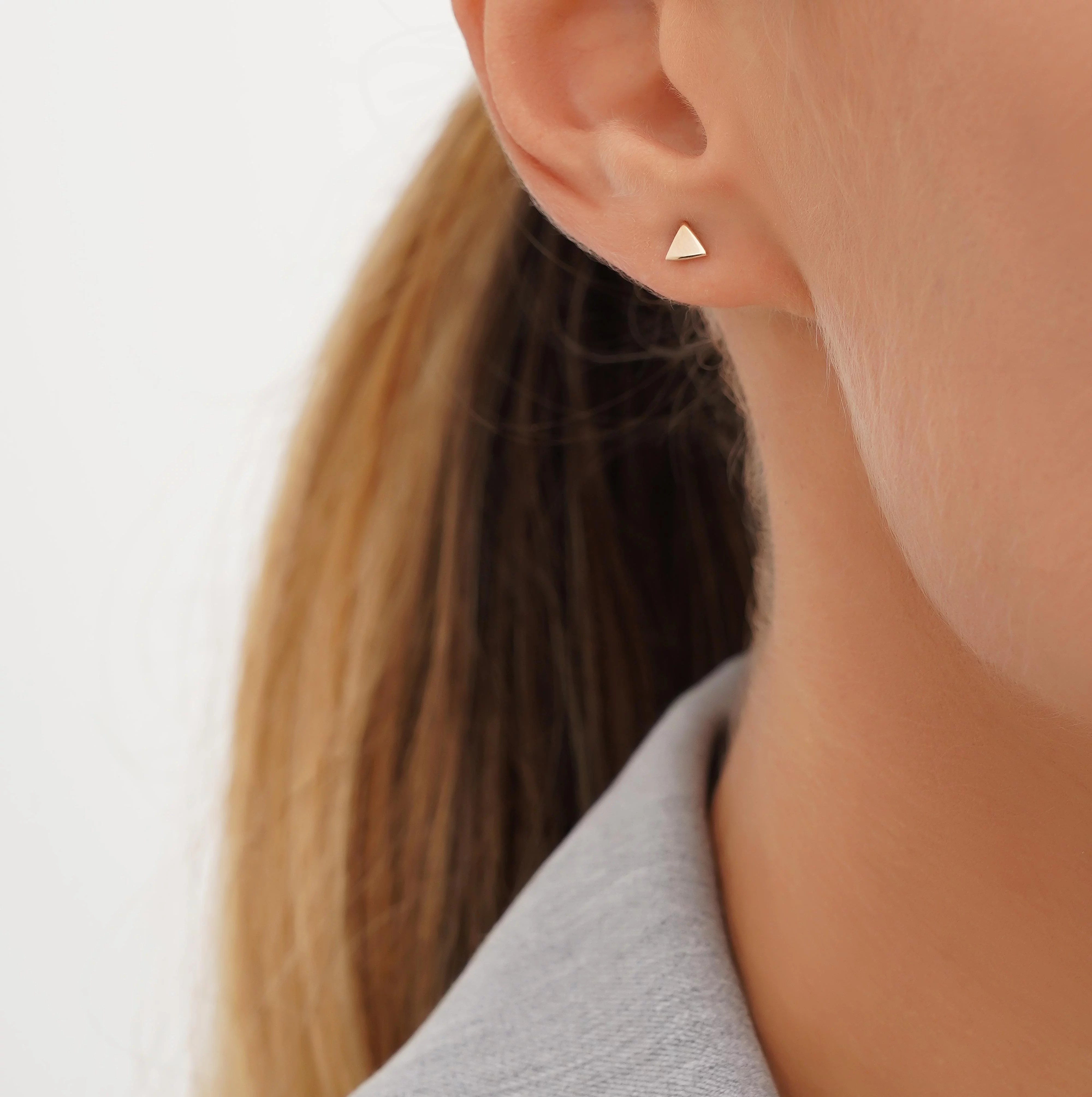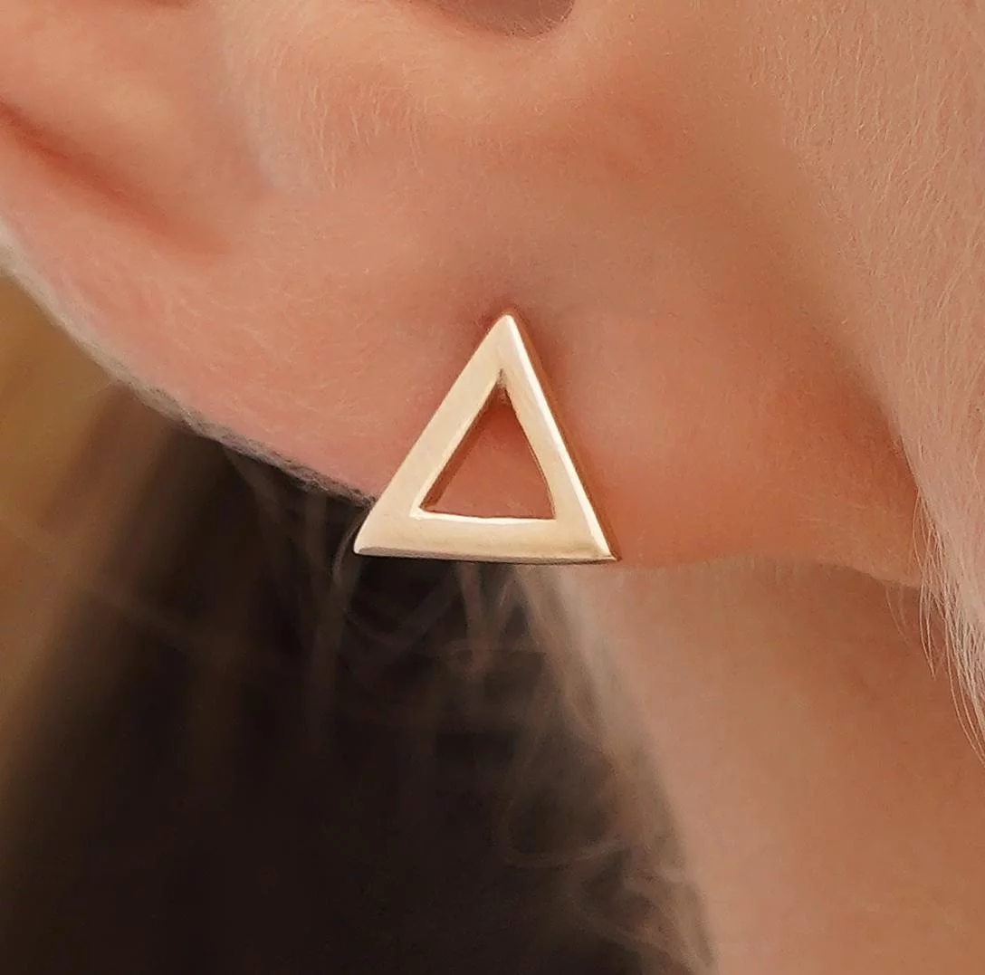 Сережки-гвоздики "Трикутники" з червоного золота - 1748483