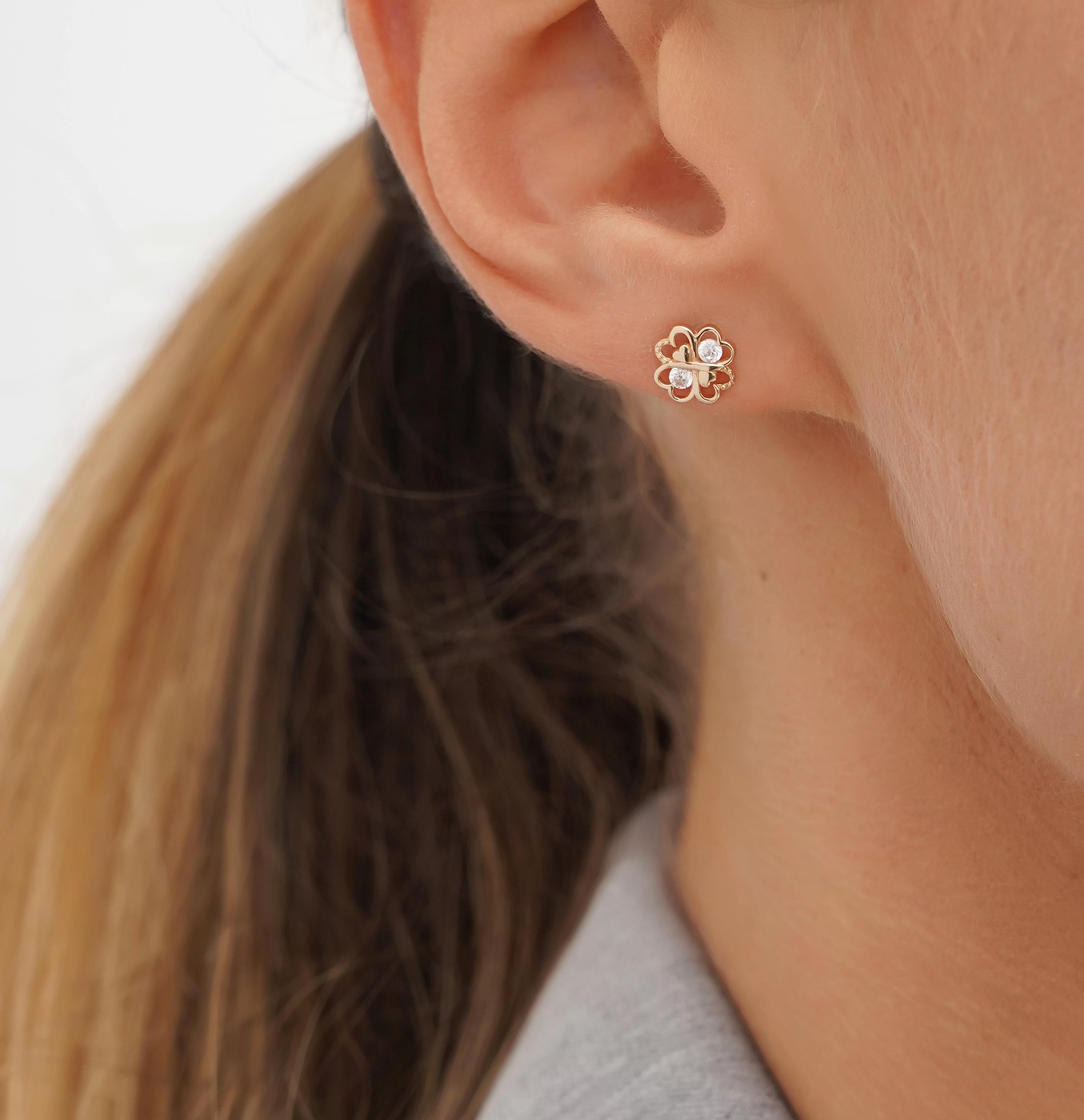 Елегантні сережки-гвоздики у формі серця з червоного золота з фіанітами - 1877491