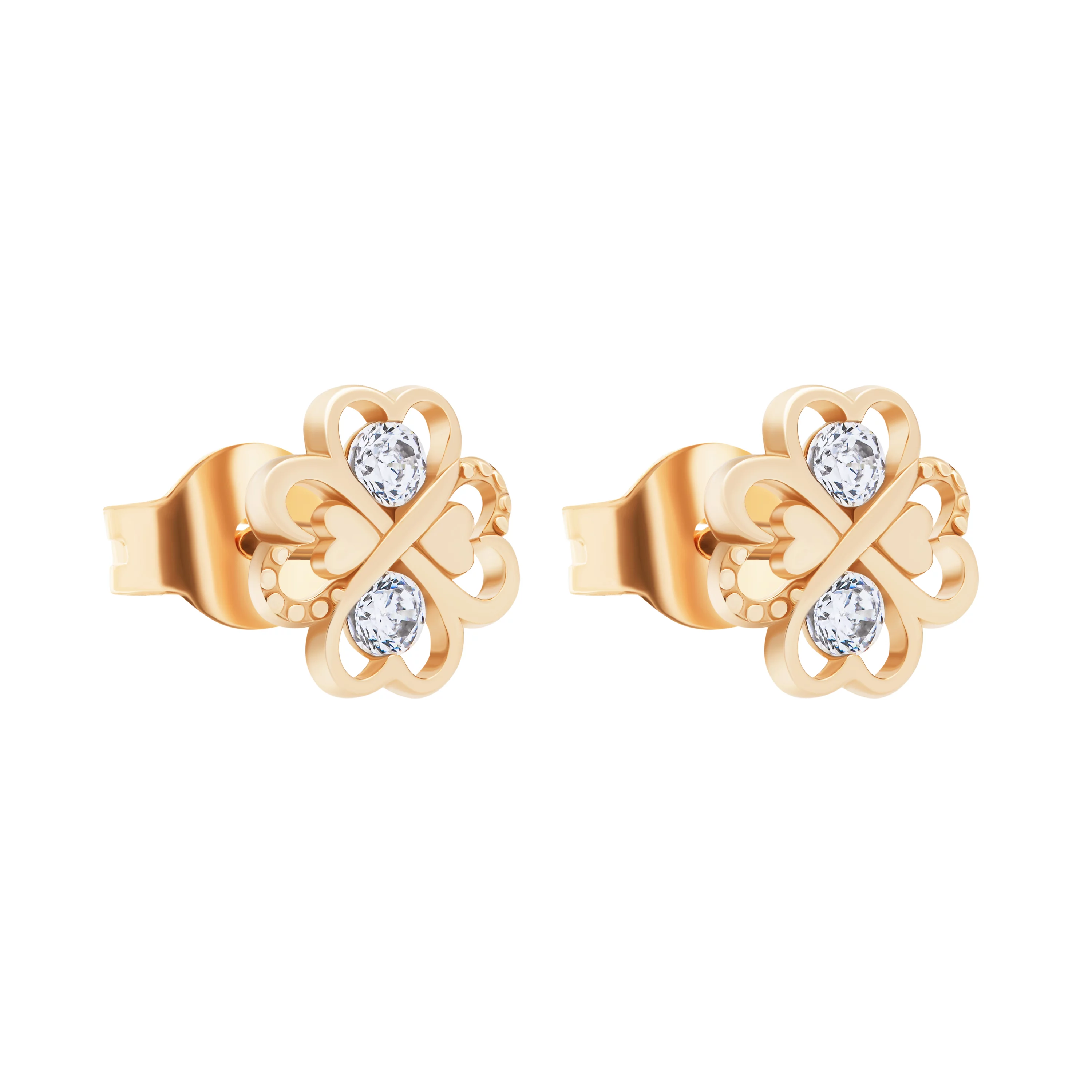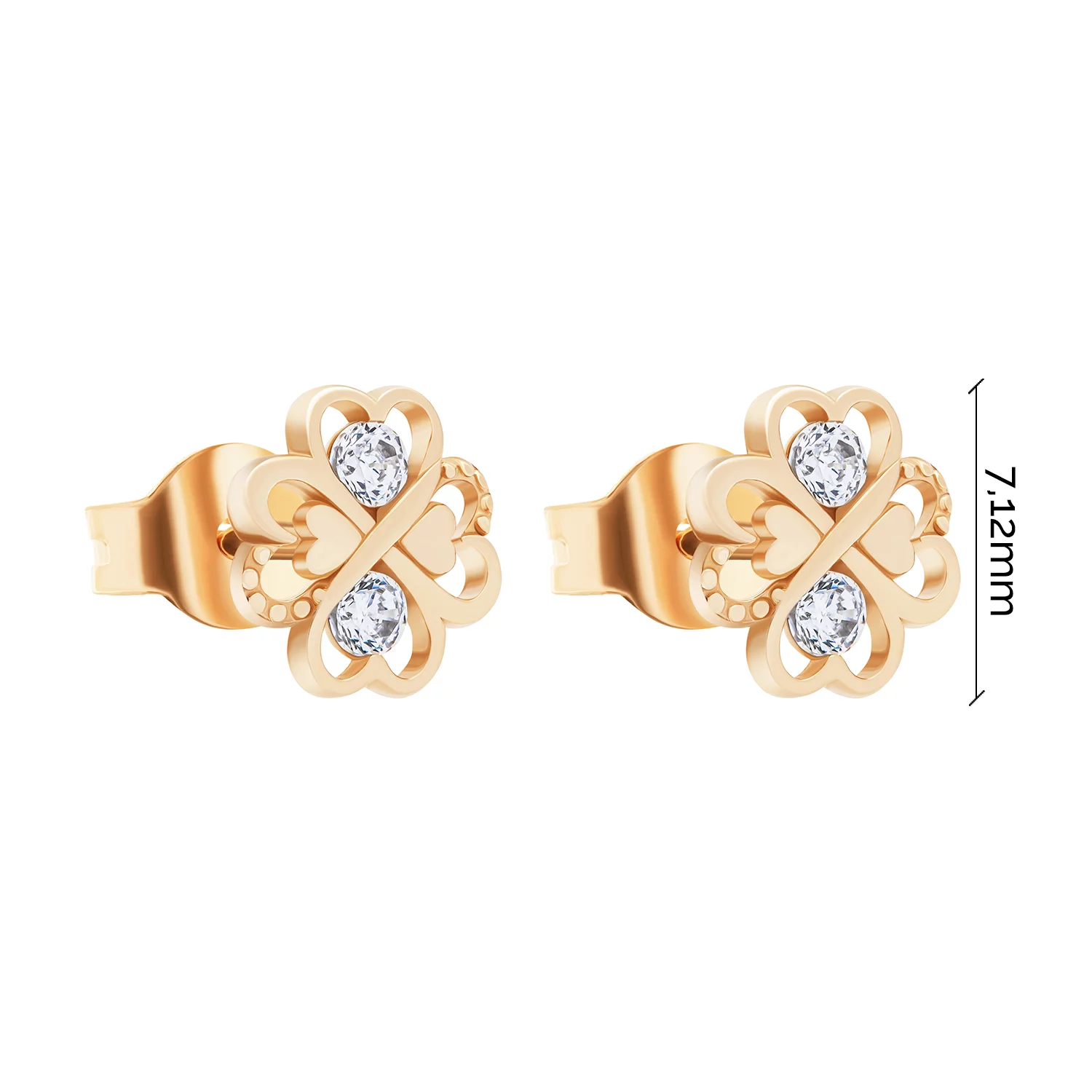 Сережки-гвоздики у червоному золоті золоті "Серце" з фіанітами - 1589229