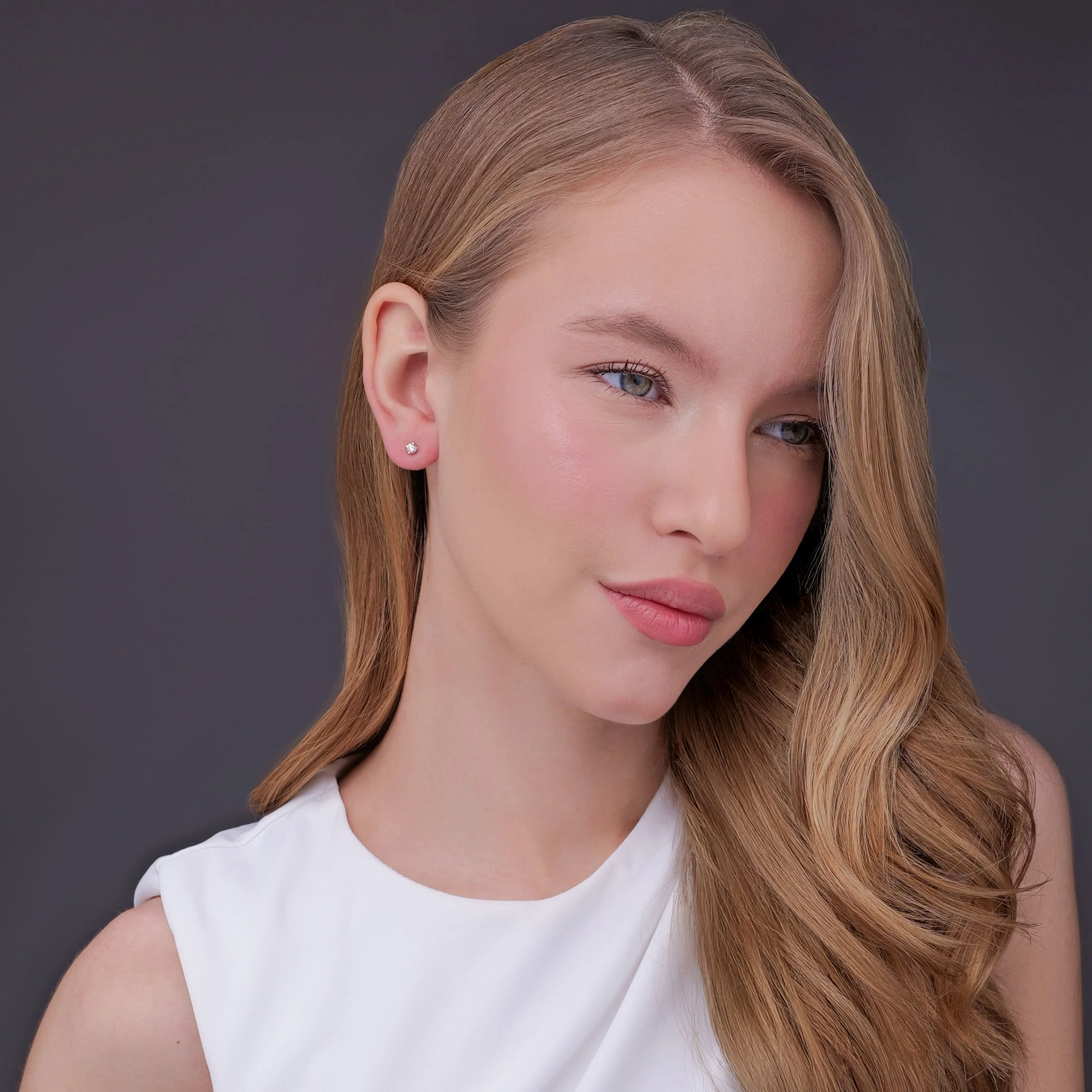 Сережки-гвоздики з білого золота з діамантами - 1987296