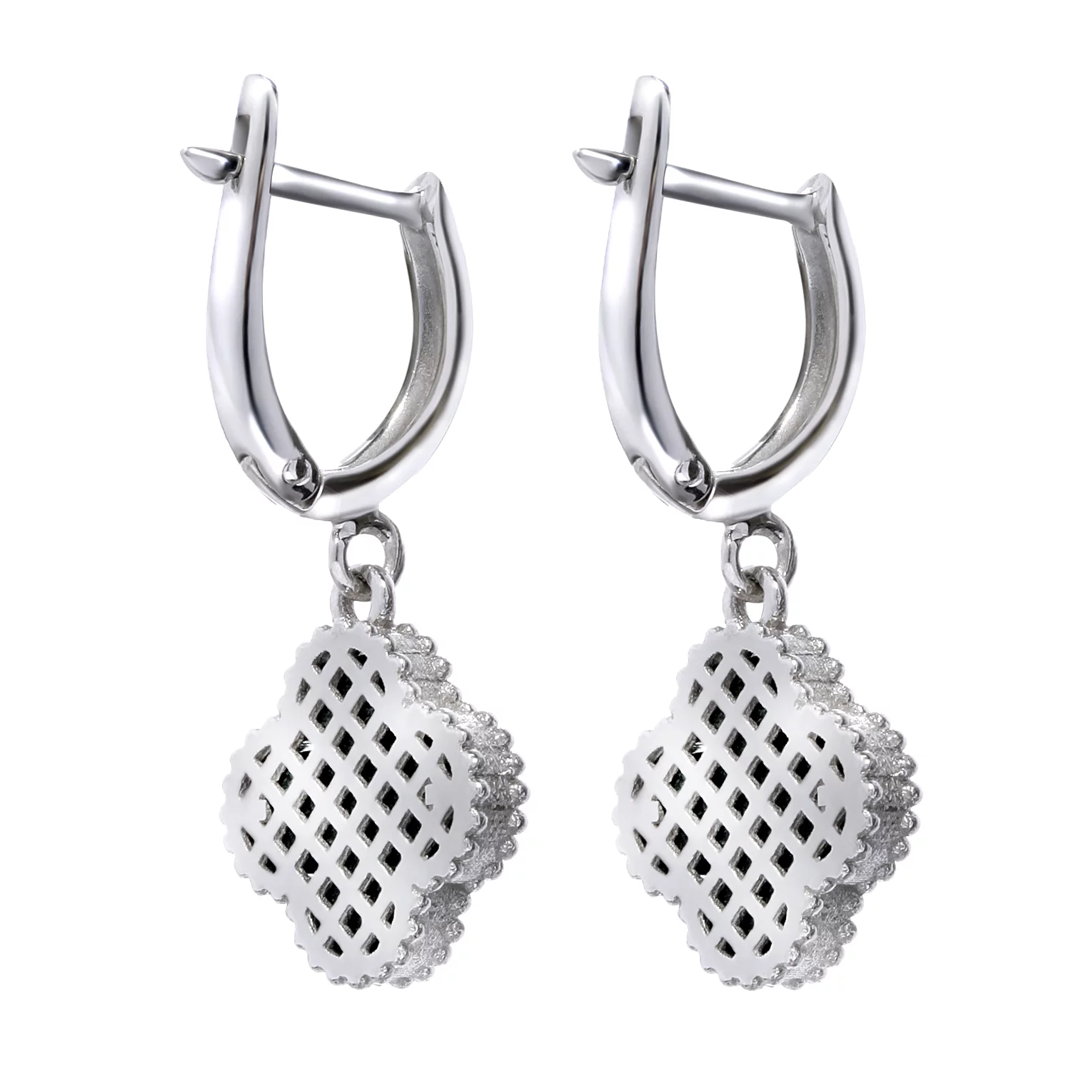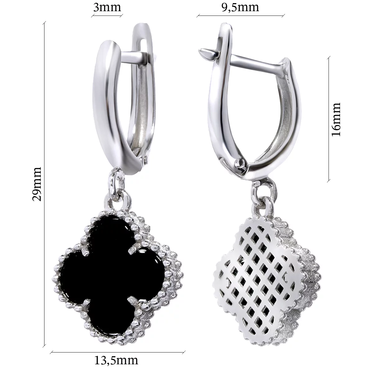 Сережки з білого золота з підвісами Конюшина з агатом - 967543