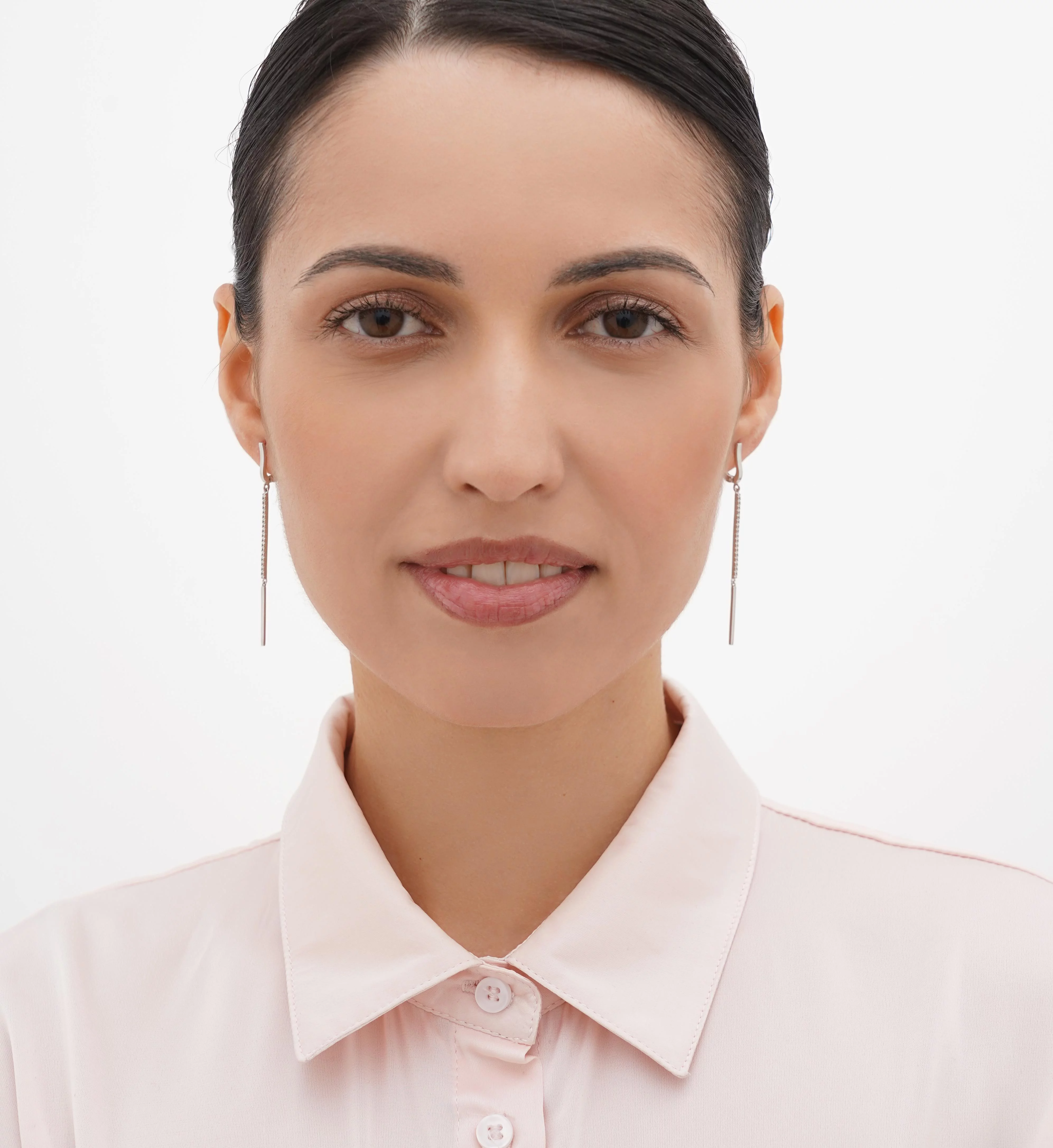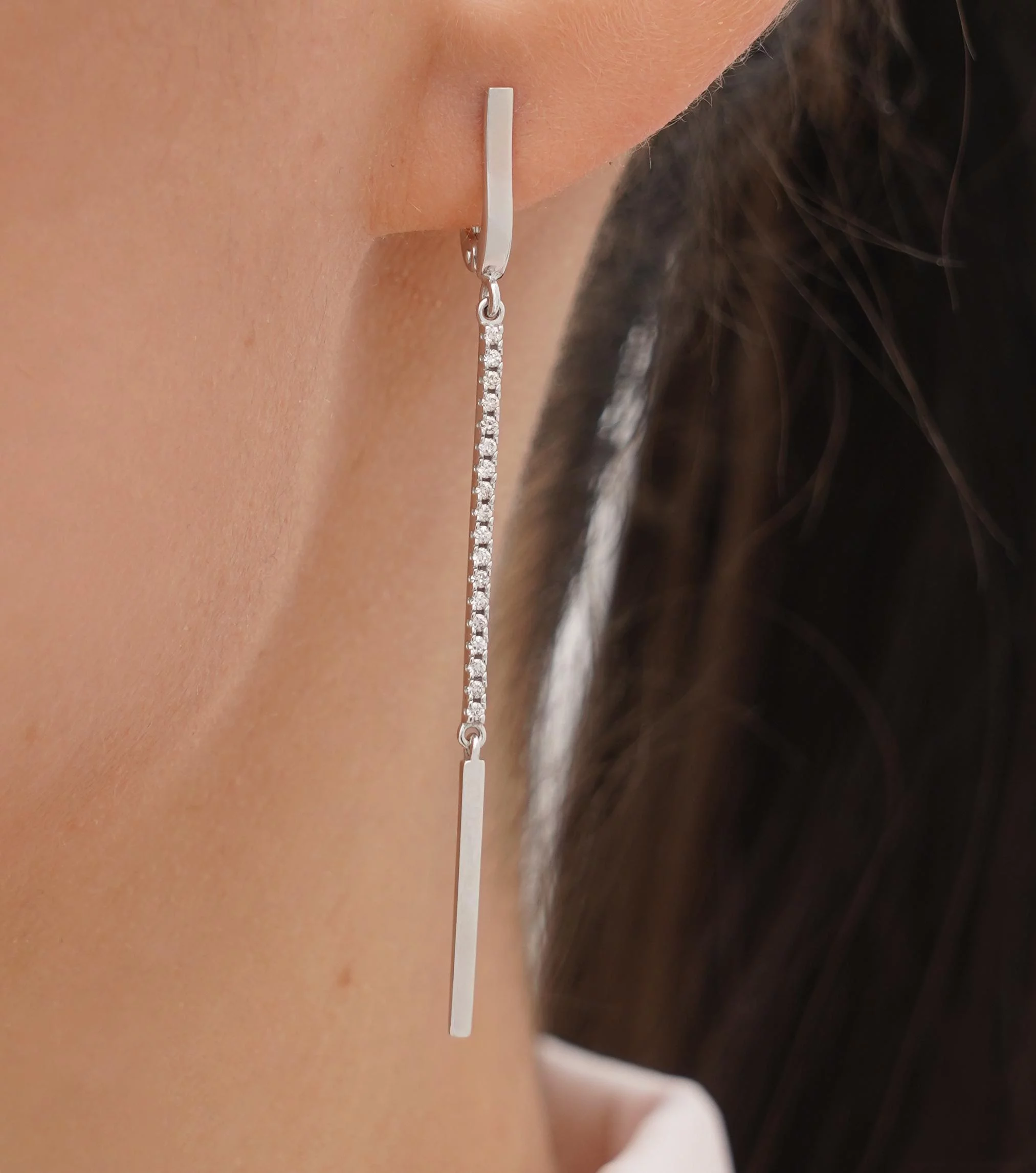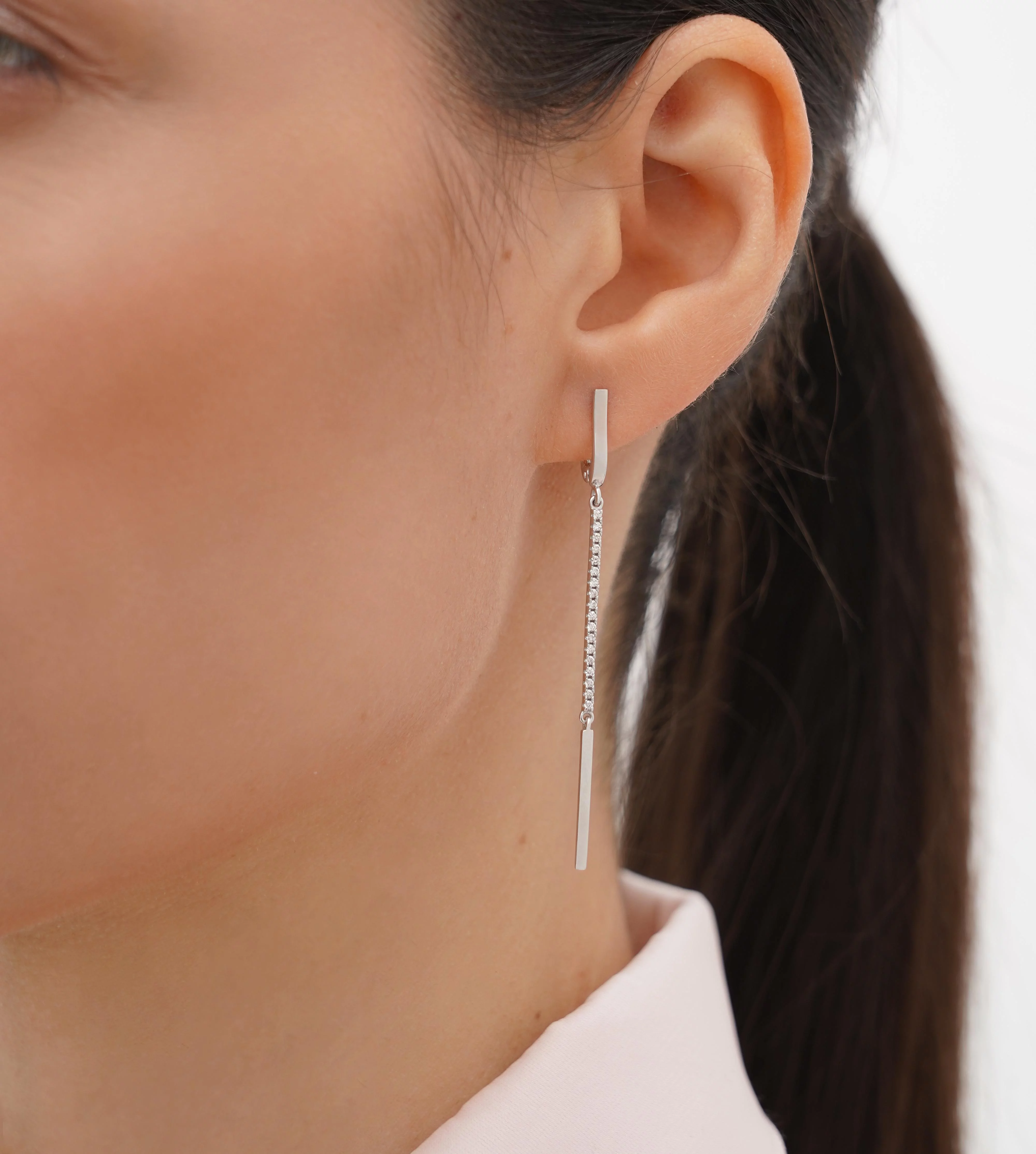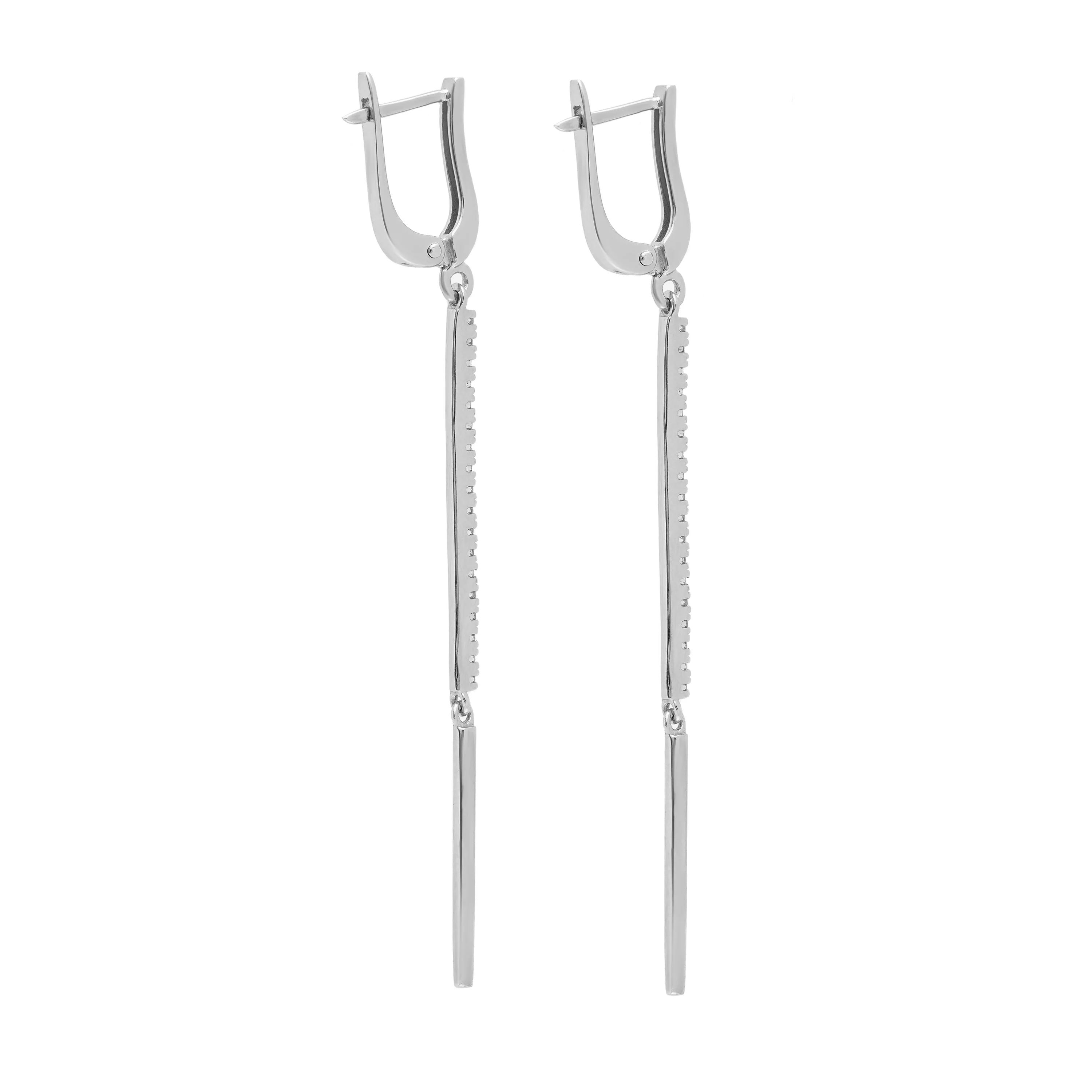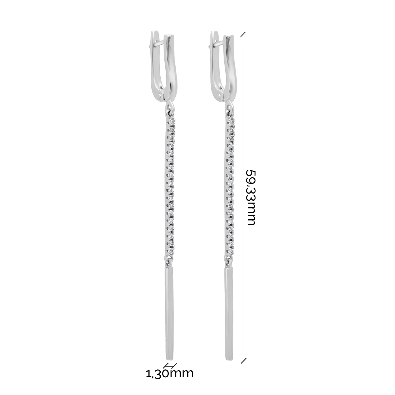 Елегантні сережки-протяжки в мінімалістичному дизайні з білого золота та фіанітами - 1870345