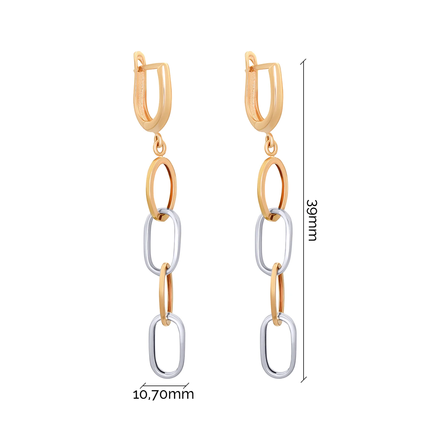 Елегантні сережки-гвоздики з підвісом в геометричному стилі з комбінованого золота - 1918777