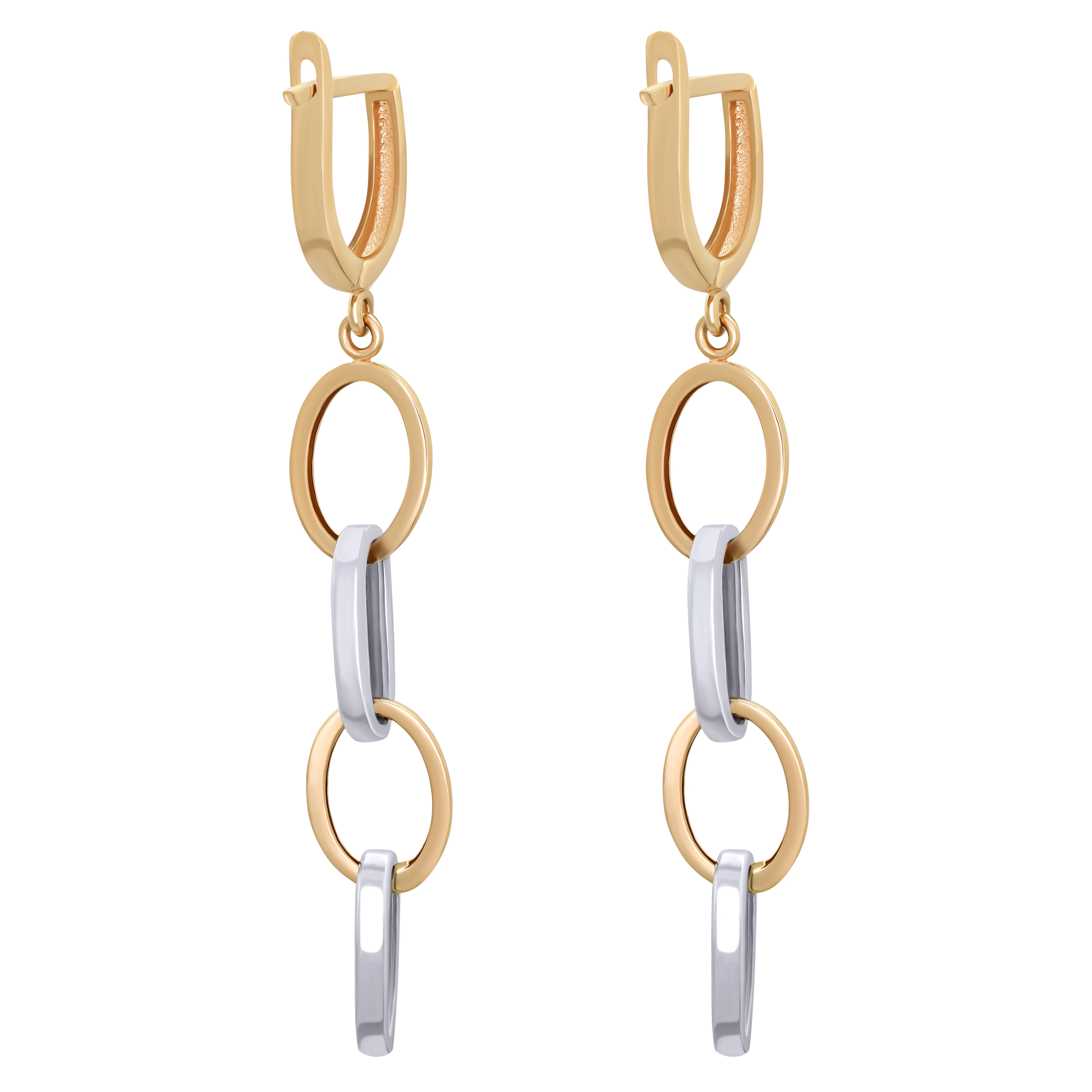 Сережки з червоного золота з підвісами "Кільця" з алмазною гранню - 1562490