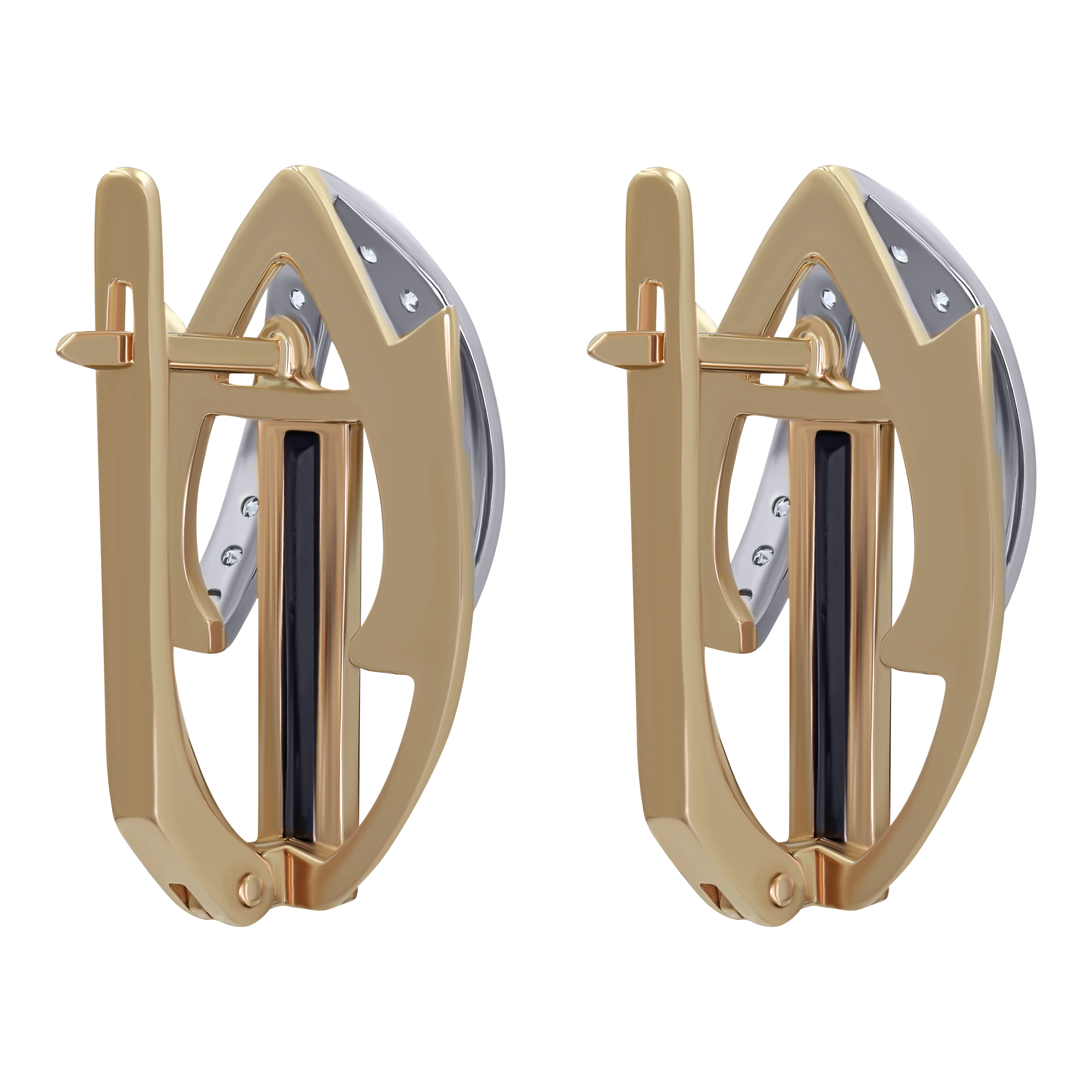 Сережки з комбінованого золота з фіанітом і агатом - 407659