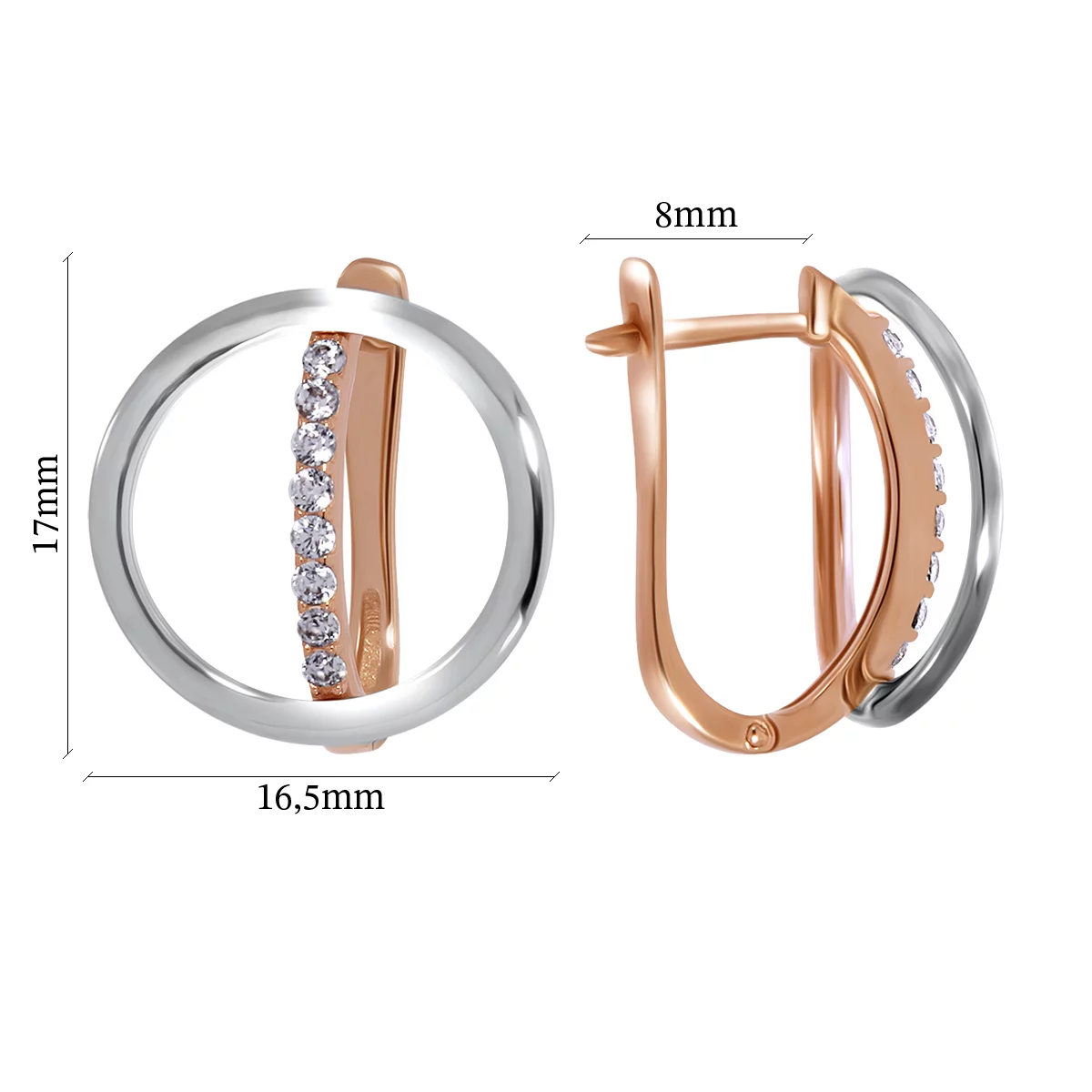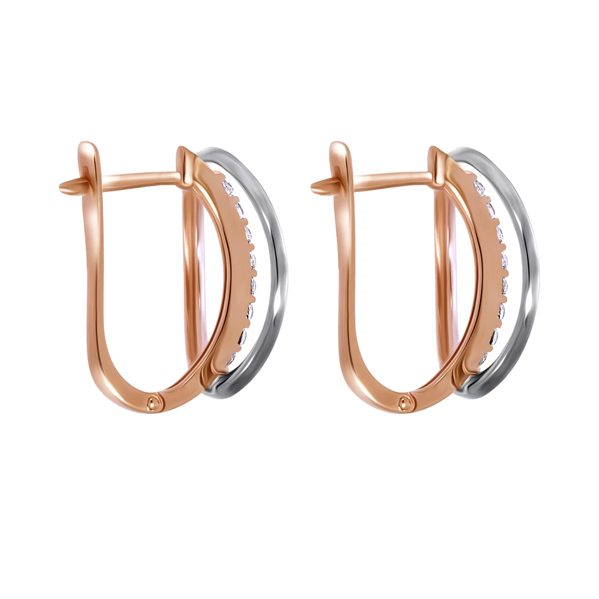 Сережки "Кола" з комбінованого золота з фіанітом - 964518
