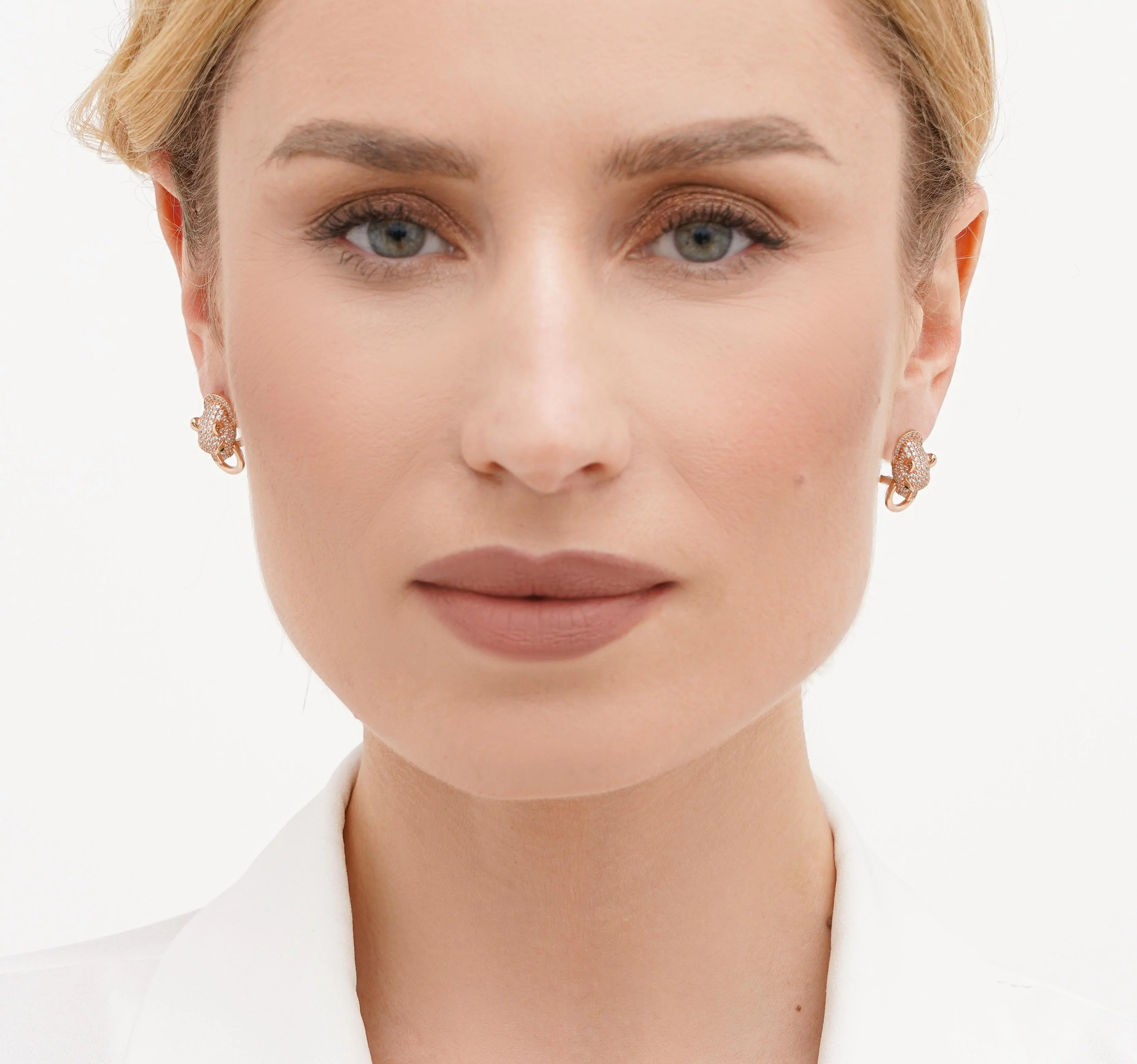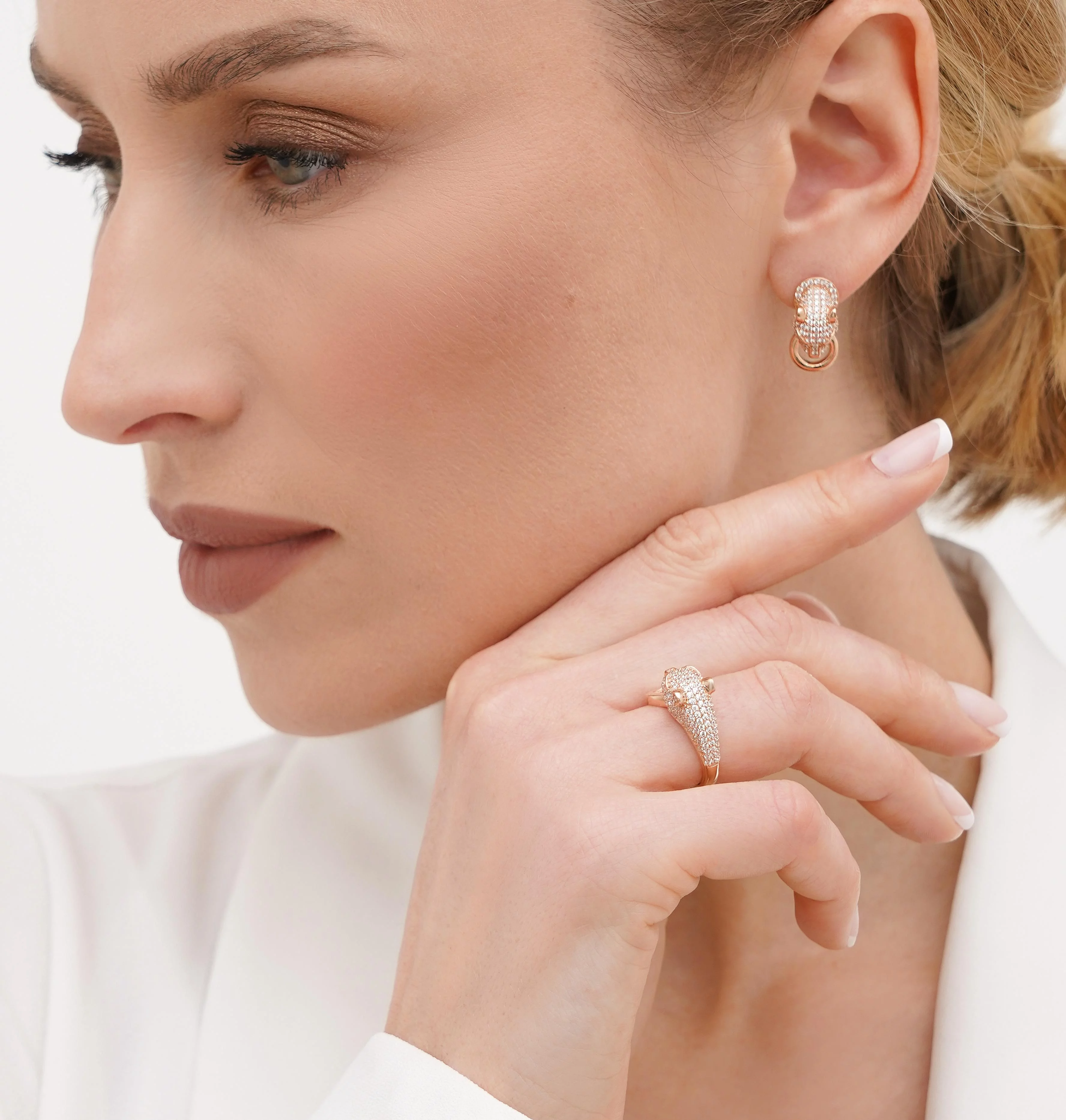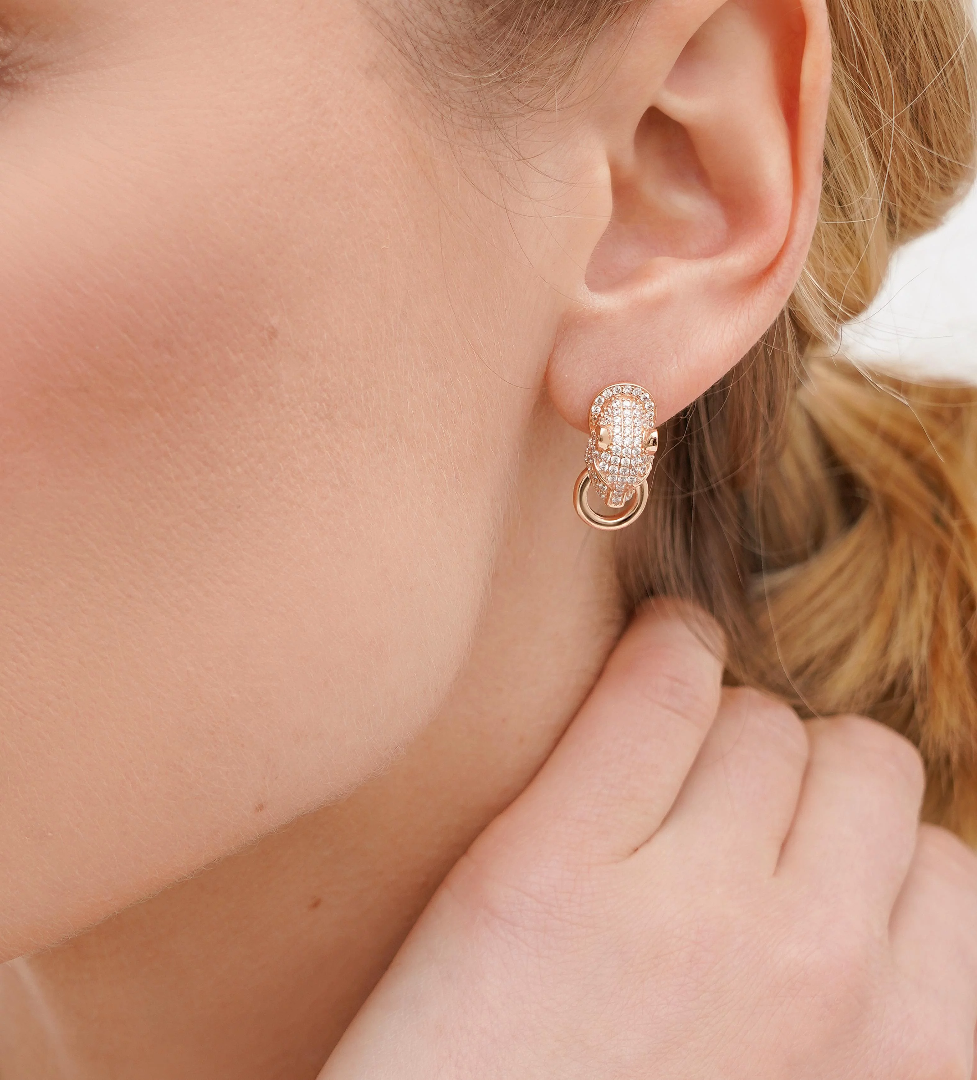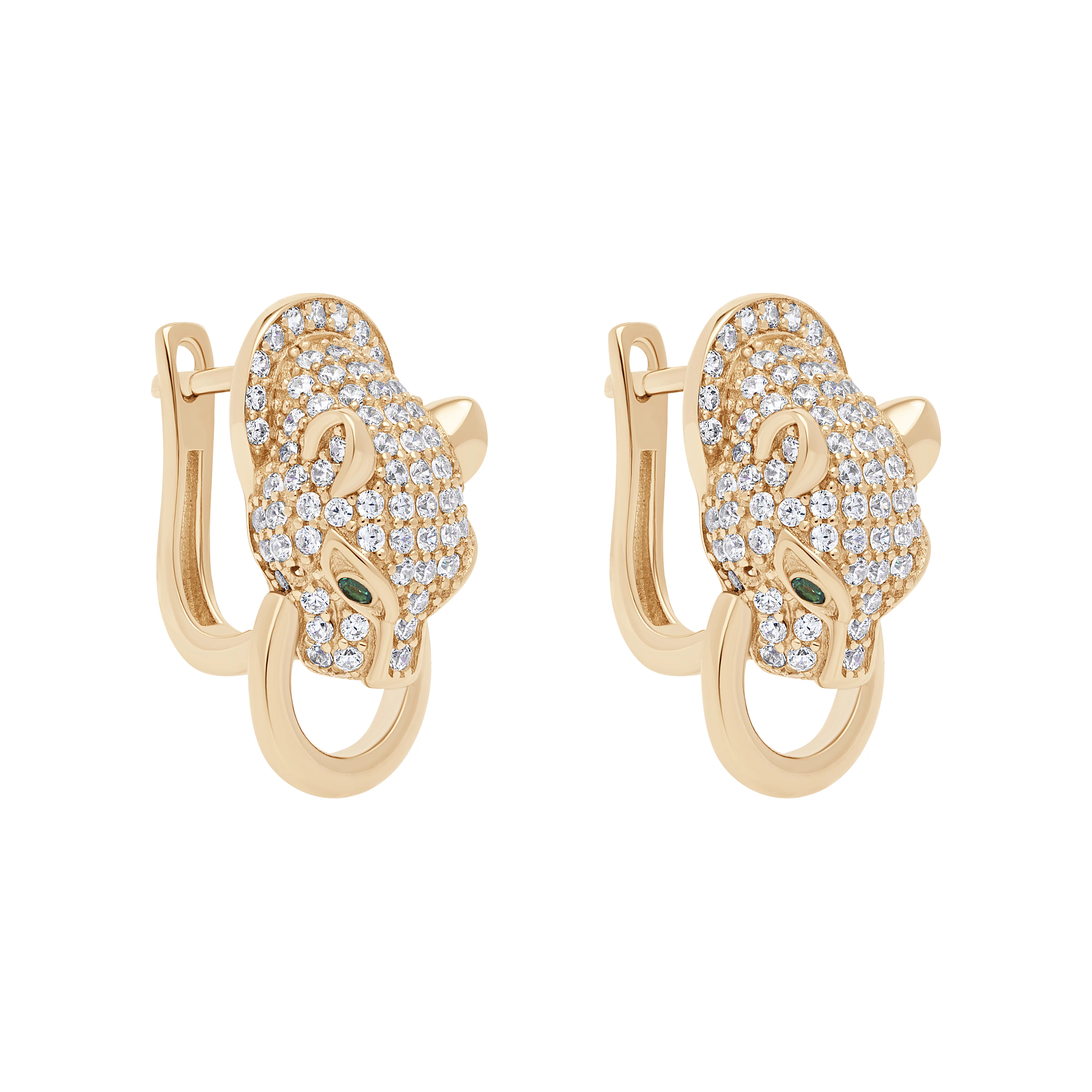 Сережки-кільця з червоного золота з підвісами "Пантера" з фіанітом - 1476753