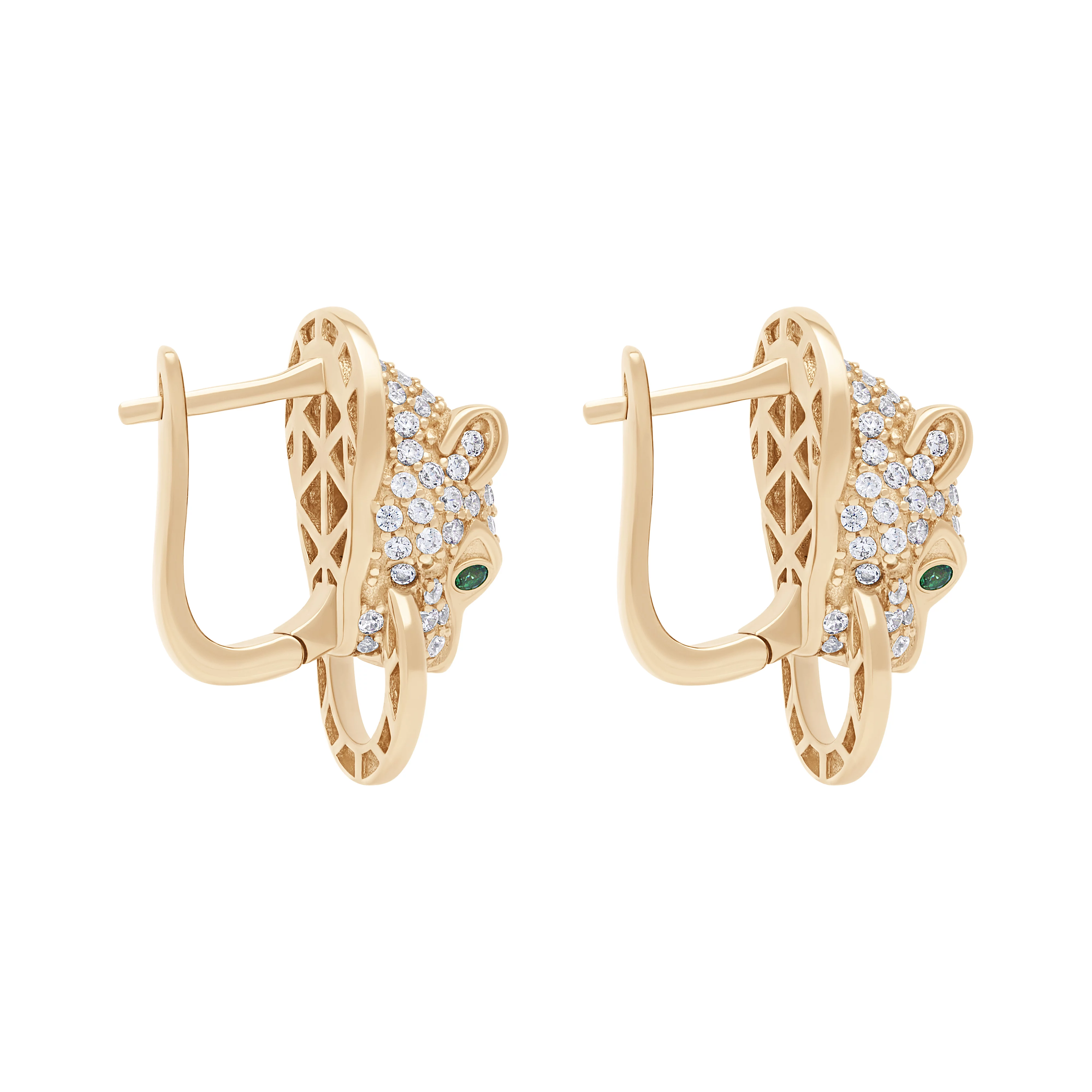 Сережки-кільця з червоного золота з підвісами з білими і зеленими фіанітами "Пантера" - 1485621