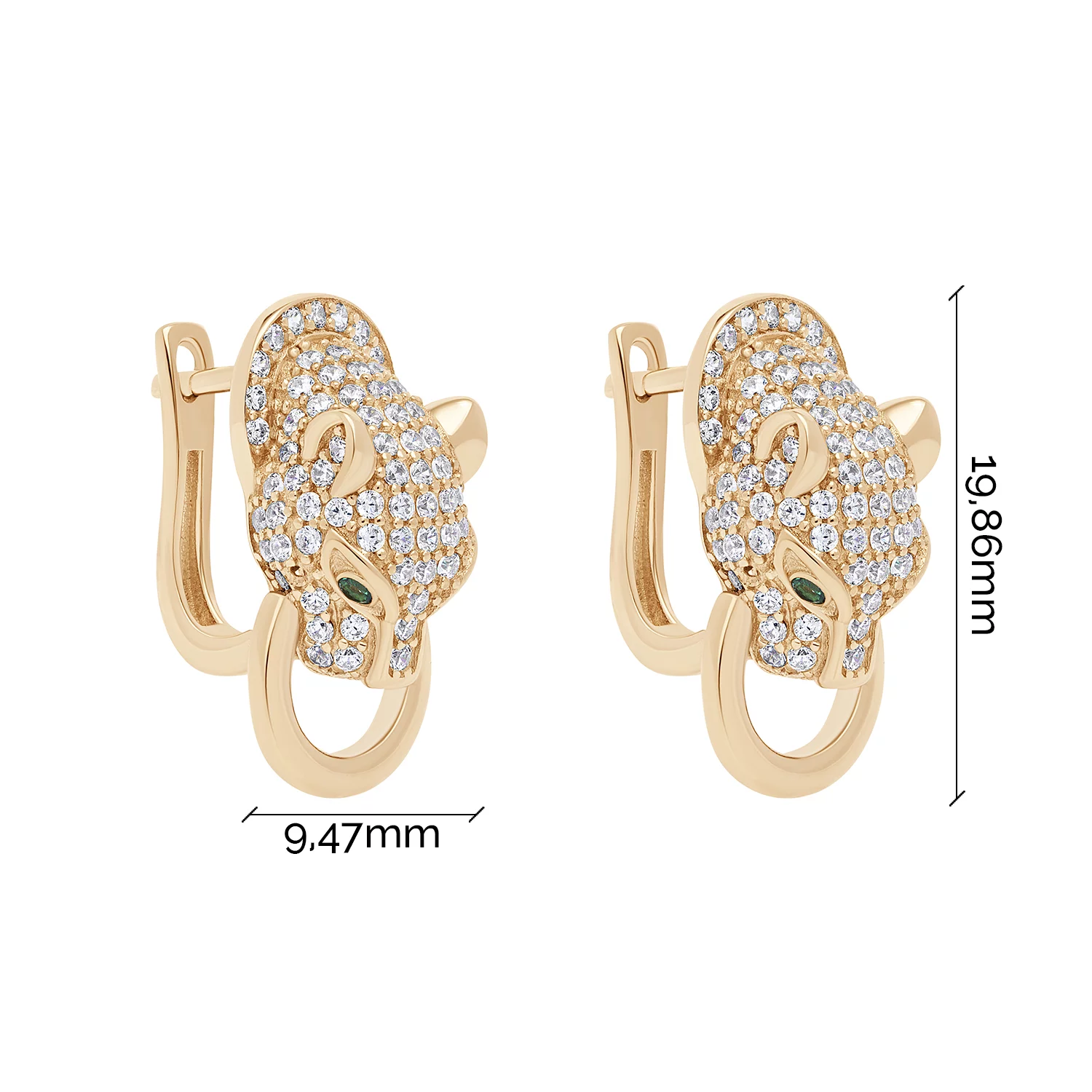 Сережки зі срібла з підвісом "Пантера" з альпінітами та фіанітами - 1809813