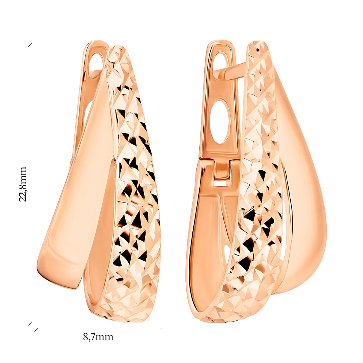 Сережки з червоного золота з алмазною гранню - 1071149