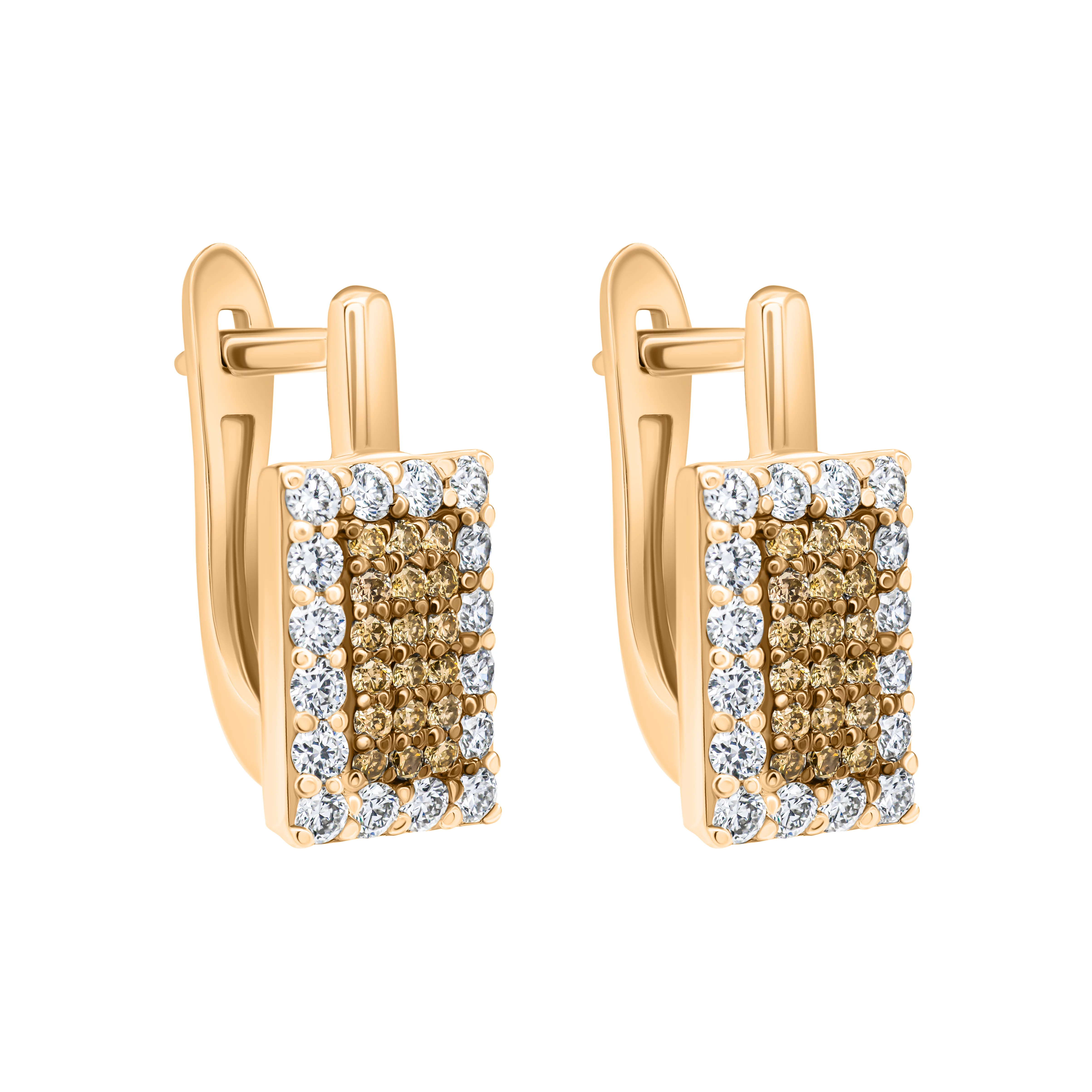 Сережки-протяжки в класичному стилі з червоного золота з діамантами - 1873989