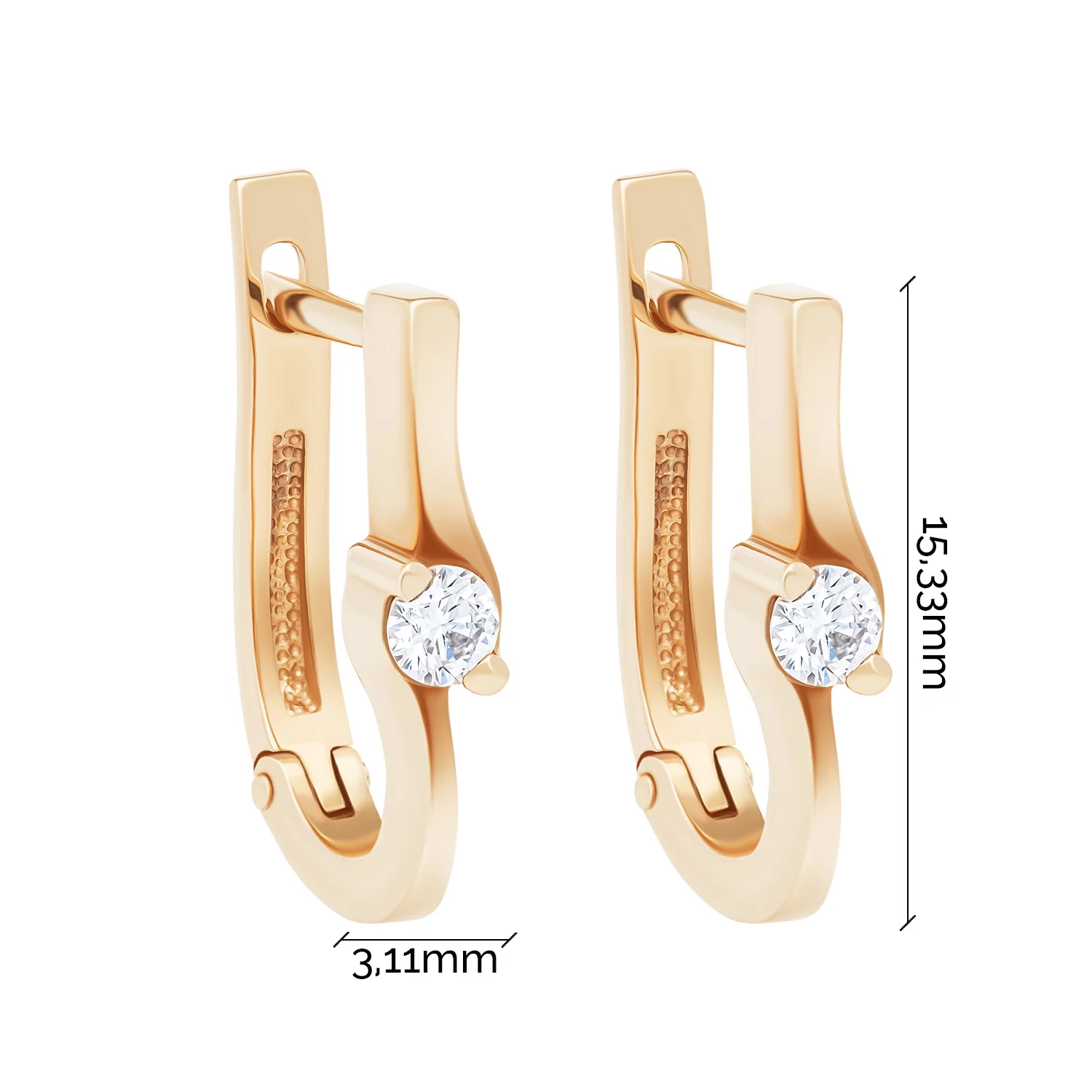 Елегантні сережки-кільця в мінімалістичному стилі з червоного золота з діамантом - 1866990