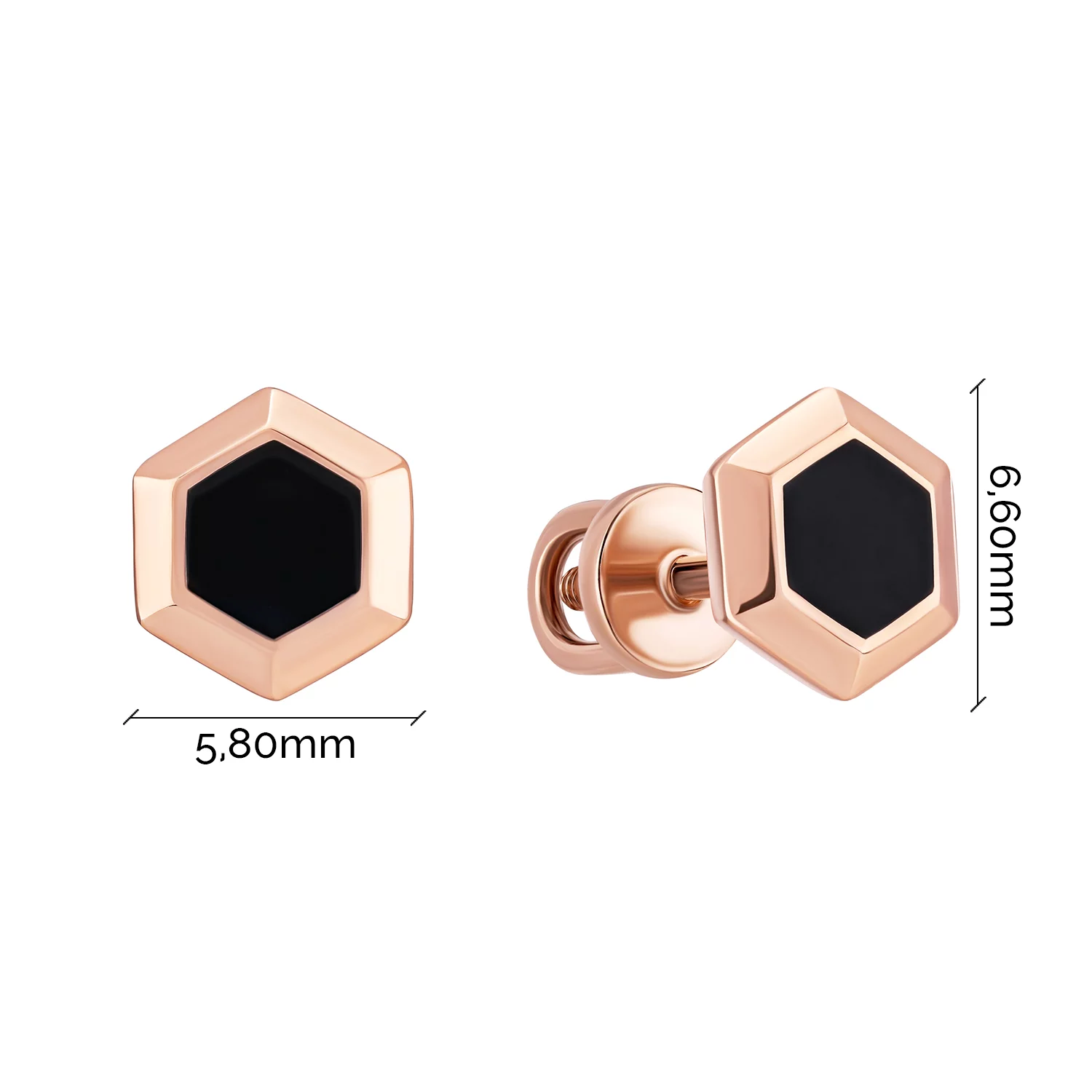 Елегантні сережки-гвоздики "Кулі" у червоному золоті з емаллю - 1926551