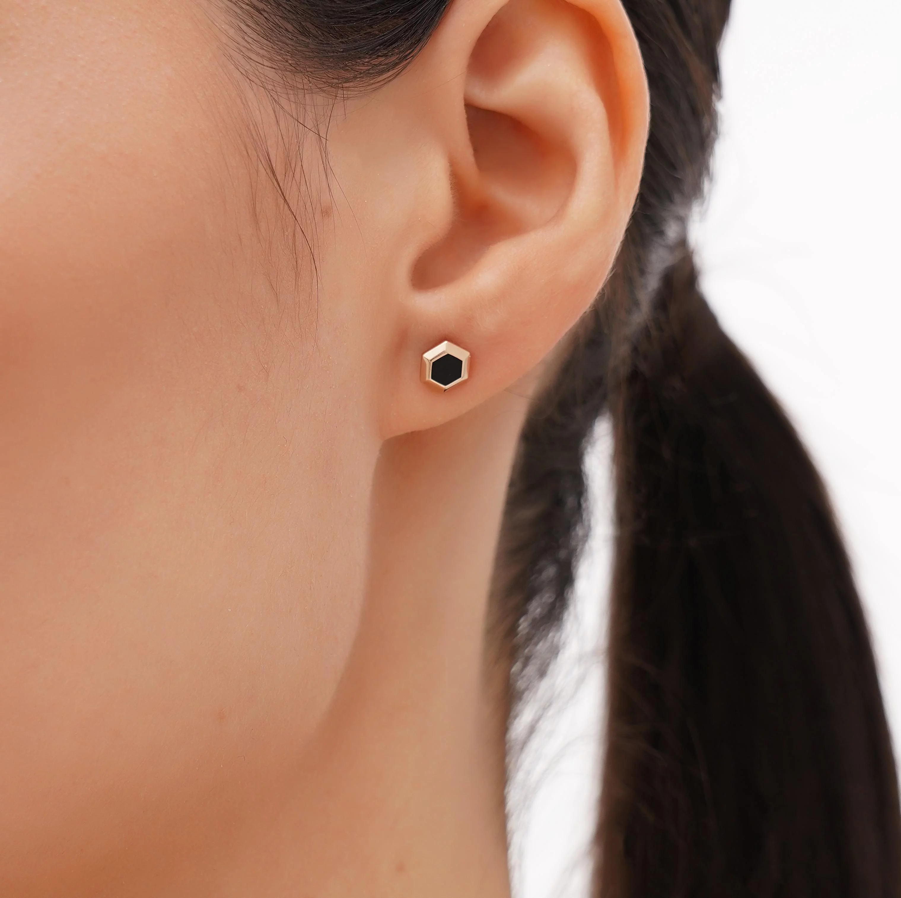Сережки-гвоздики "Геометричні фігури" з червоного золота з емаллю - 1614827